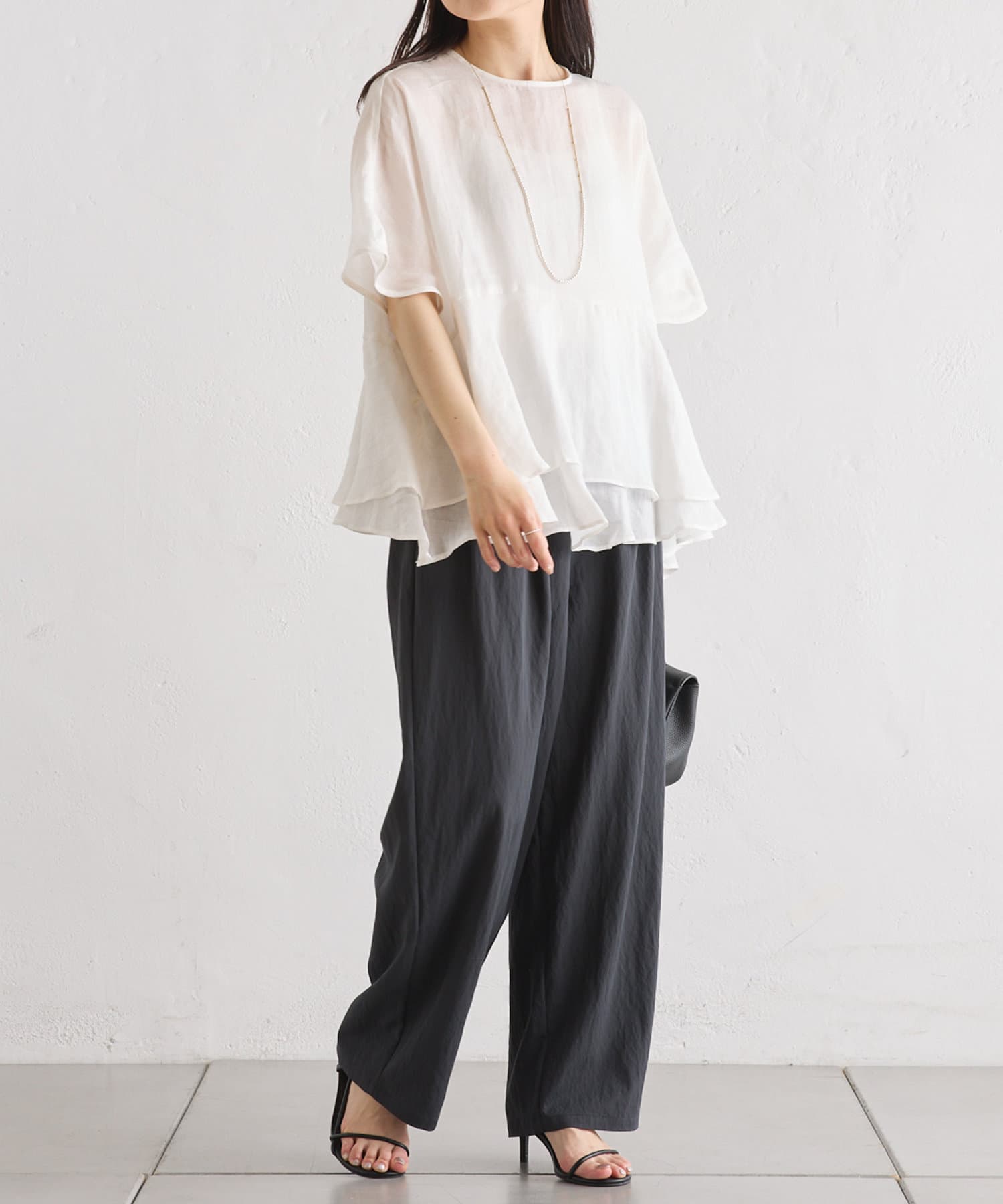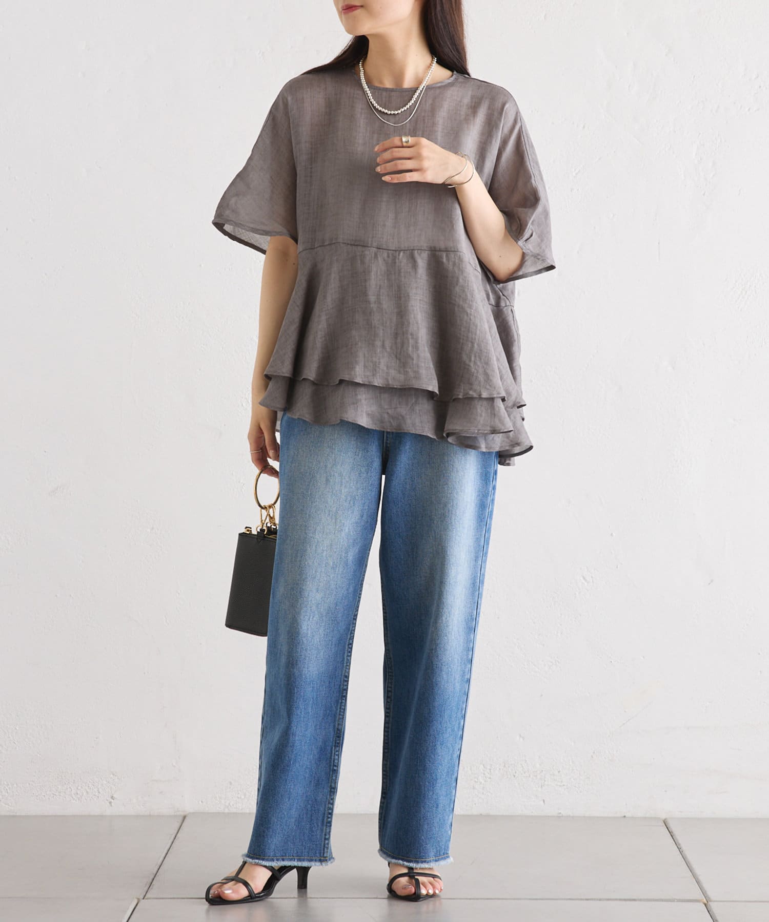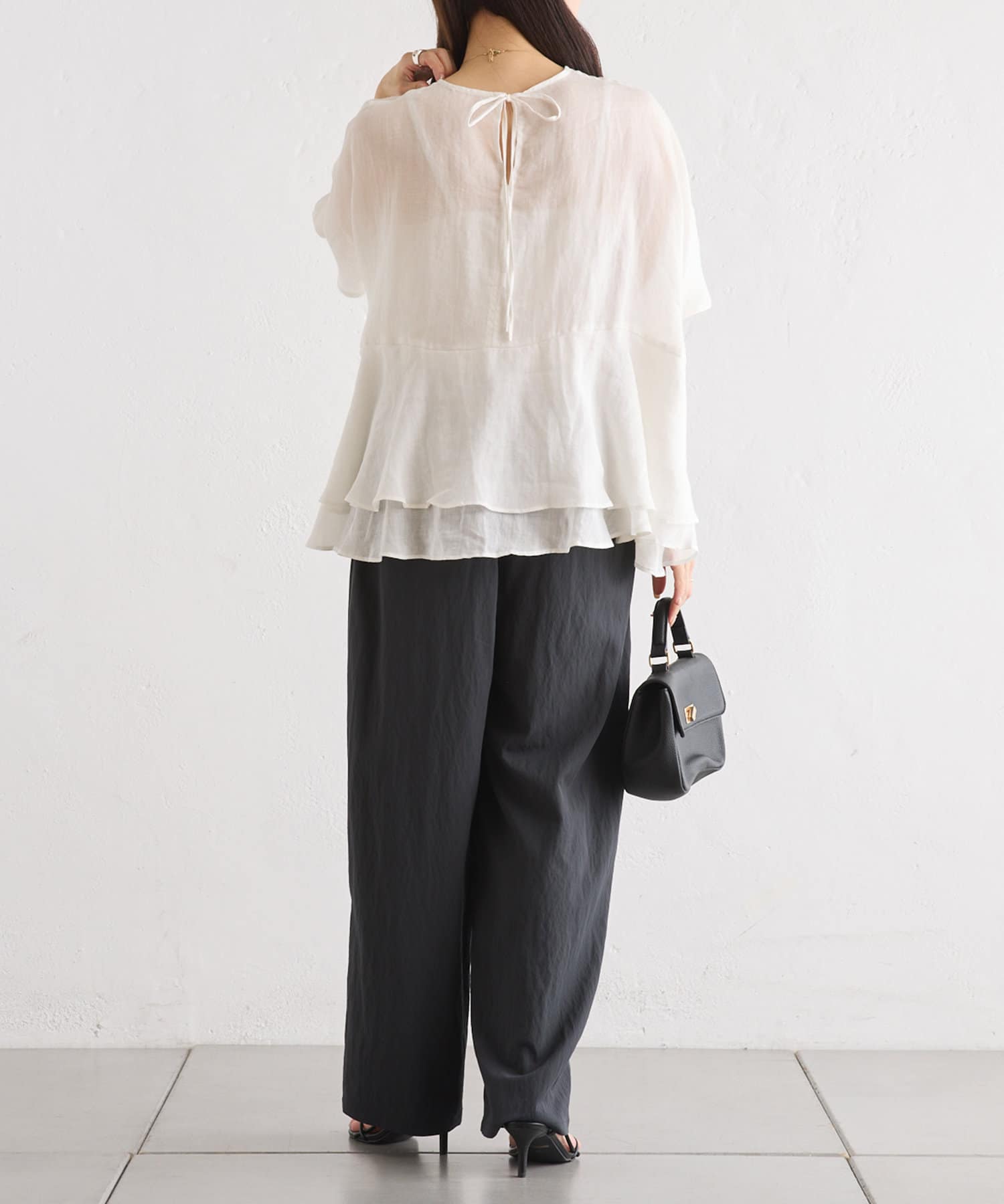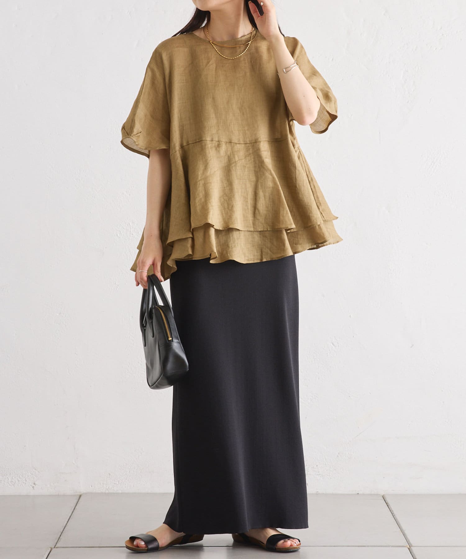 軽やかなリネンの素材に、切り替えから2段のフリルを付けることで