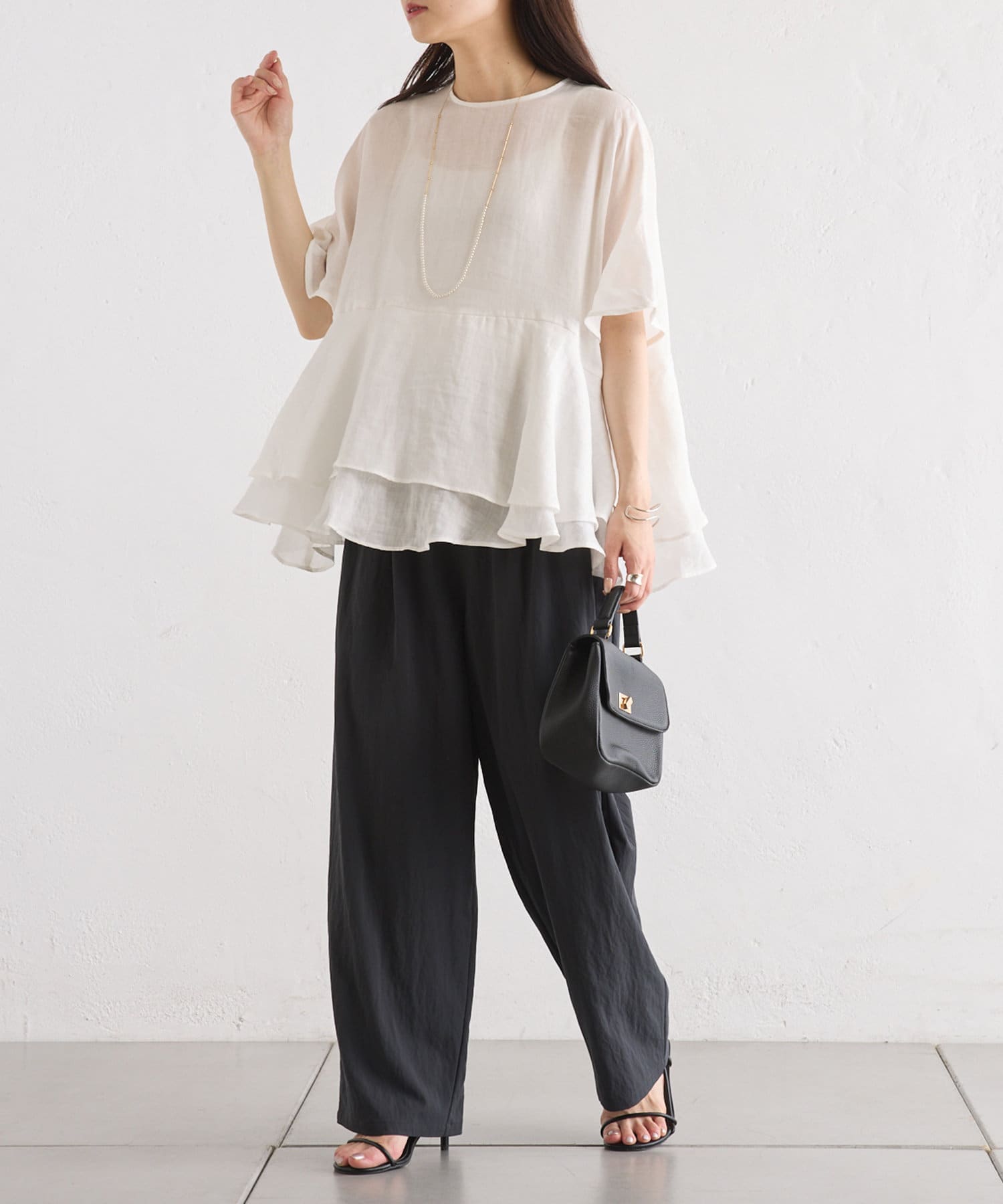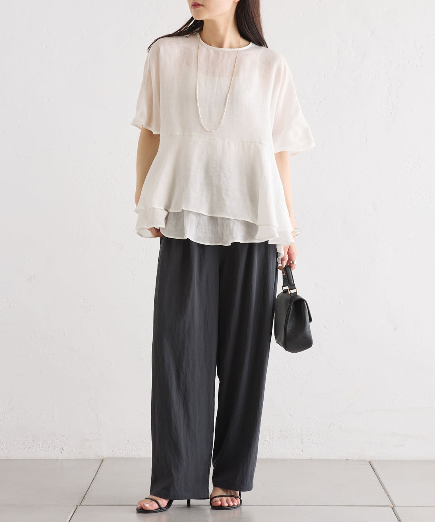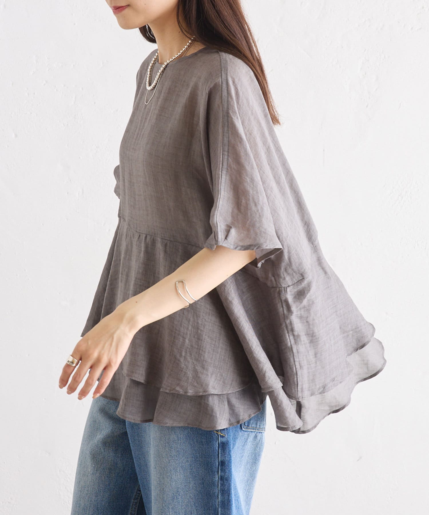 ◇裾の揺れるリネンの軽さとシアー感がリラクシーな大人ブラウス◇