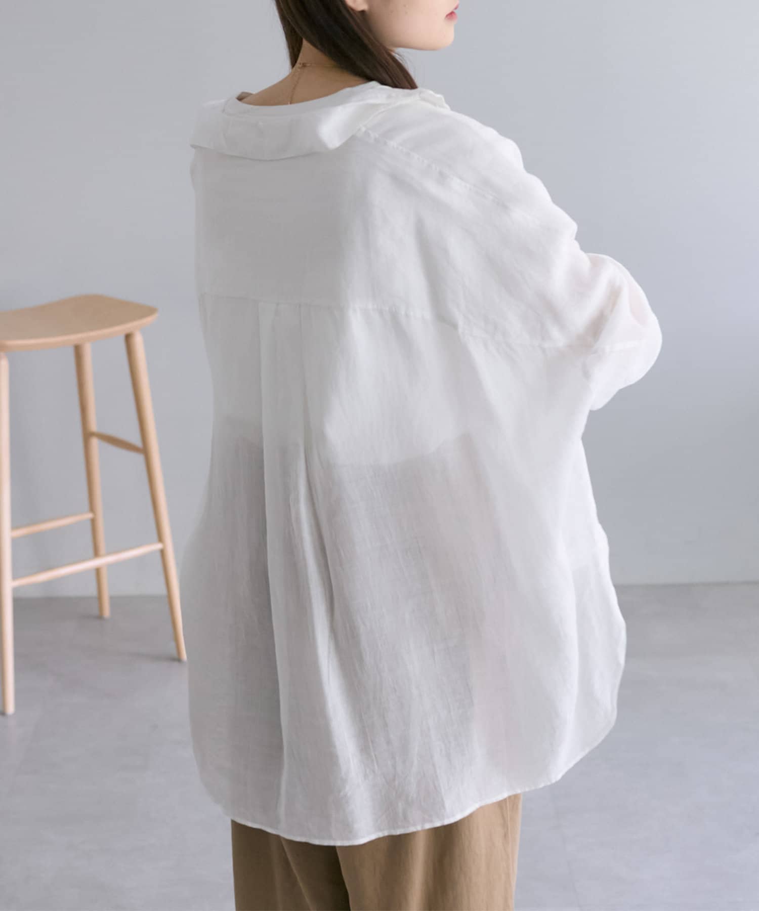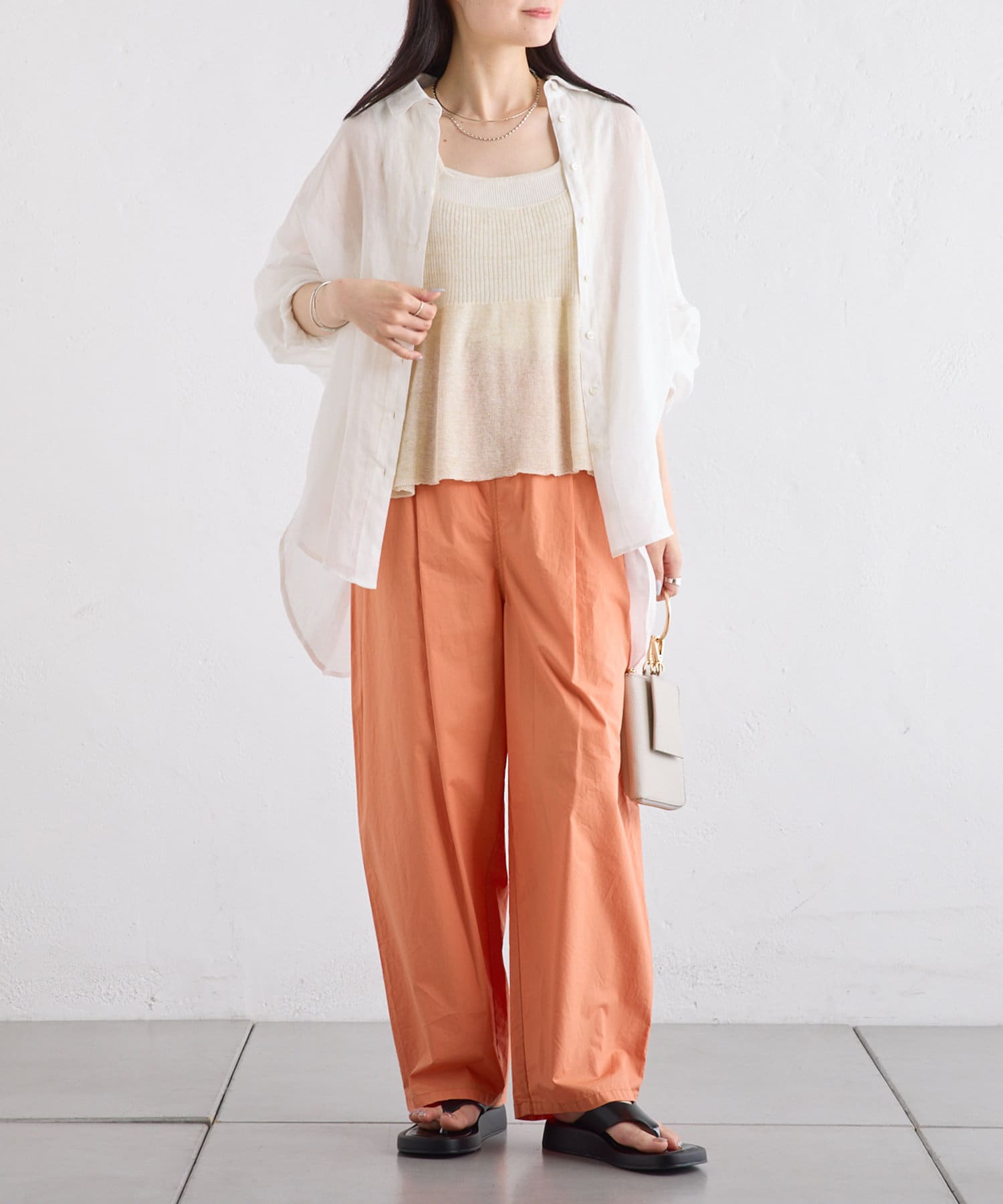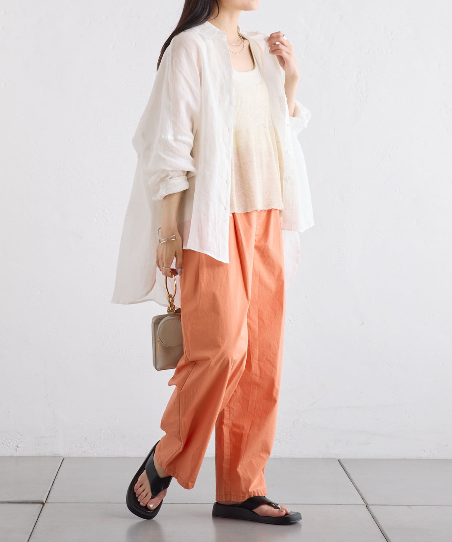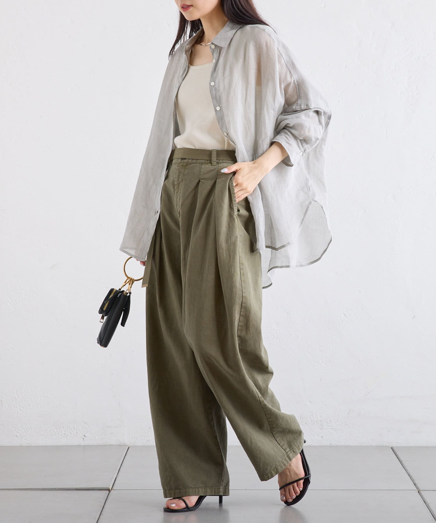 ラミー素材ならではの、透け感がコーデに抜けを出してくれます。
