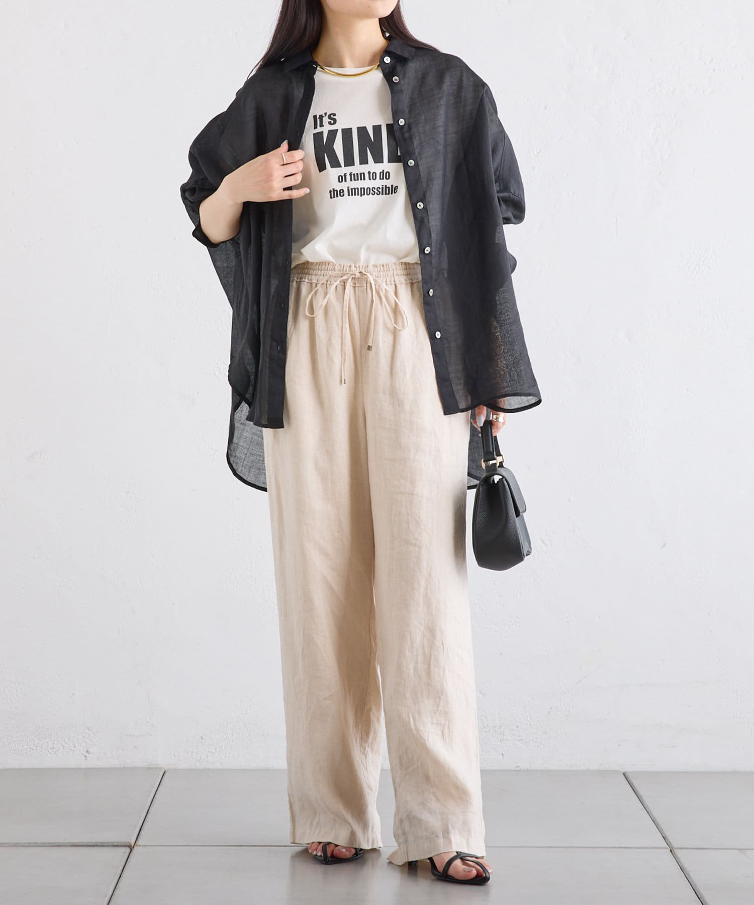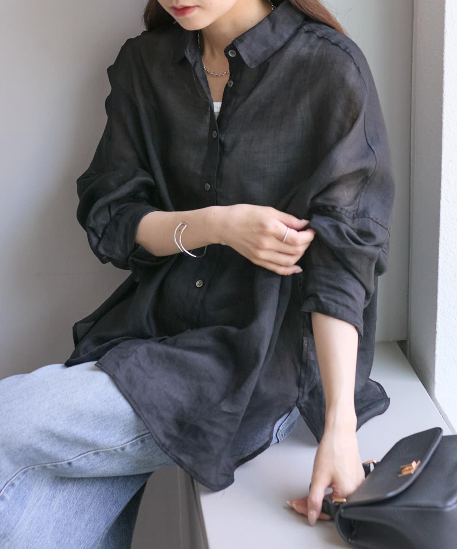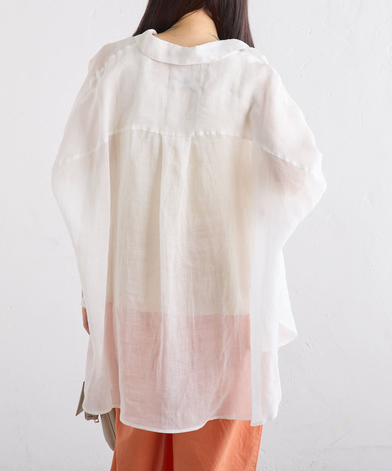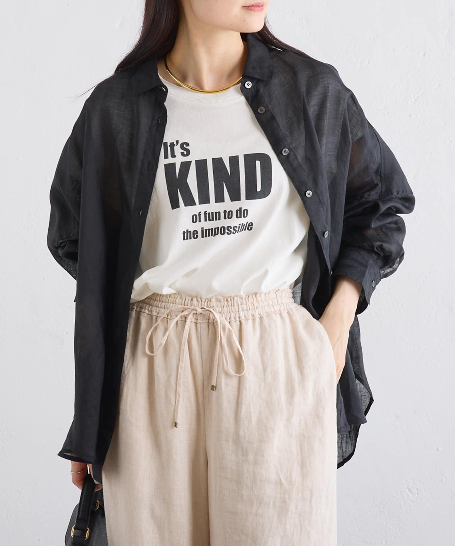 ラミー素材ならではの、透け感がコーデに抜けを出してくれます。