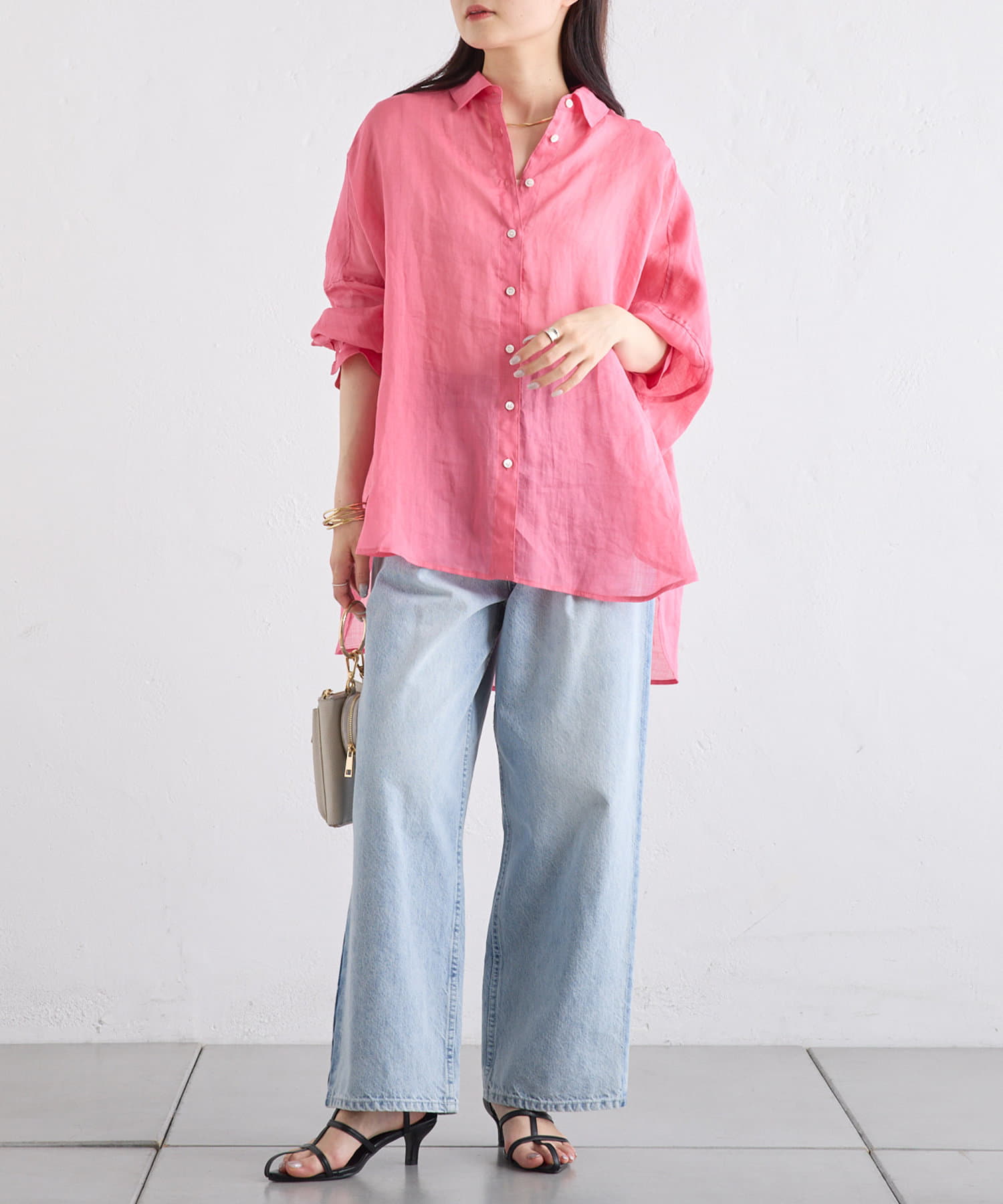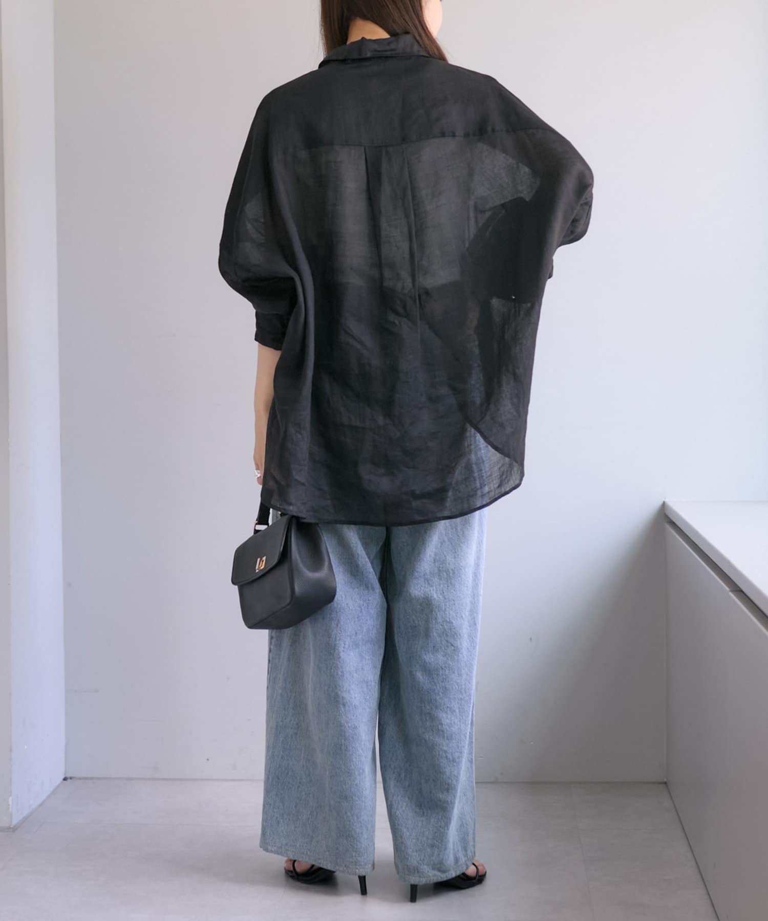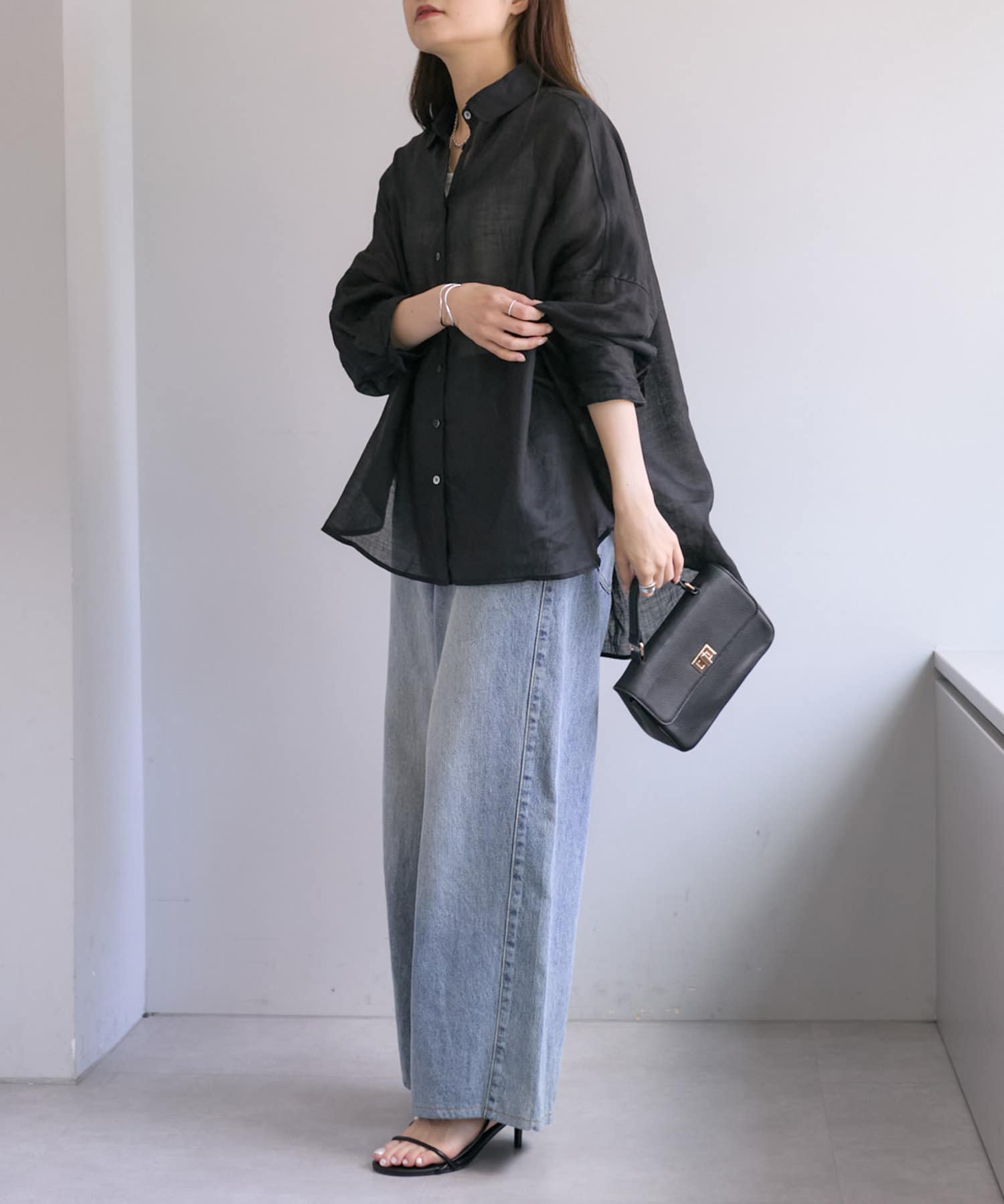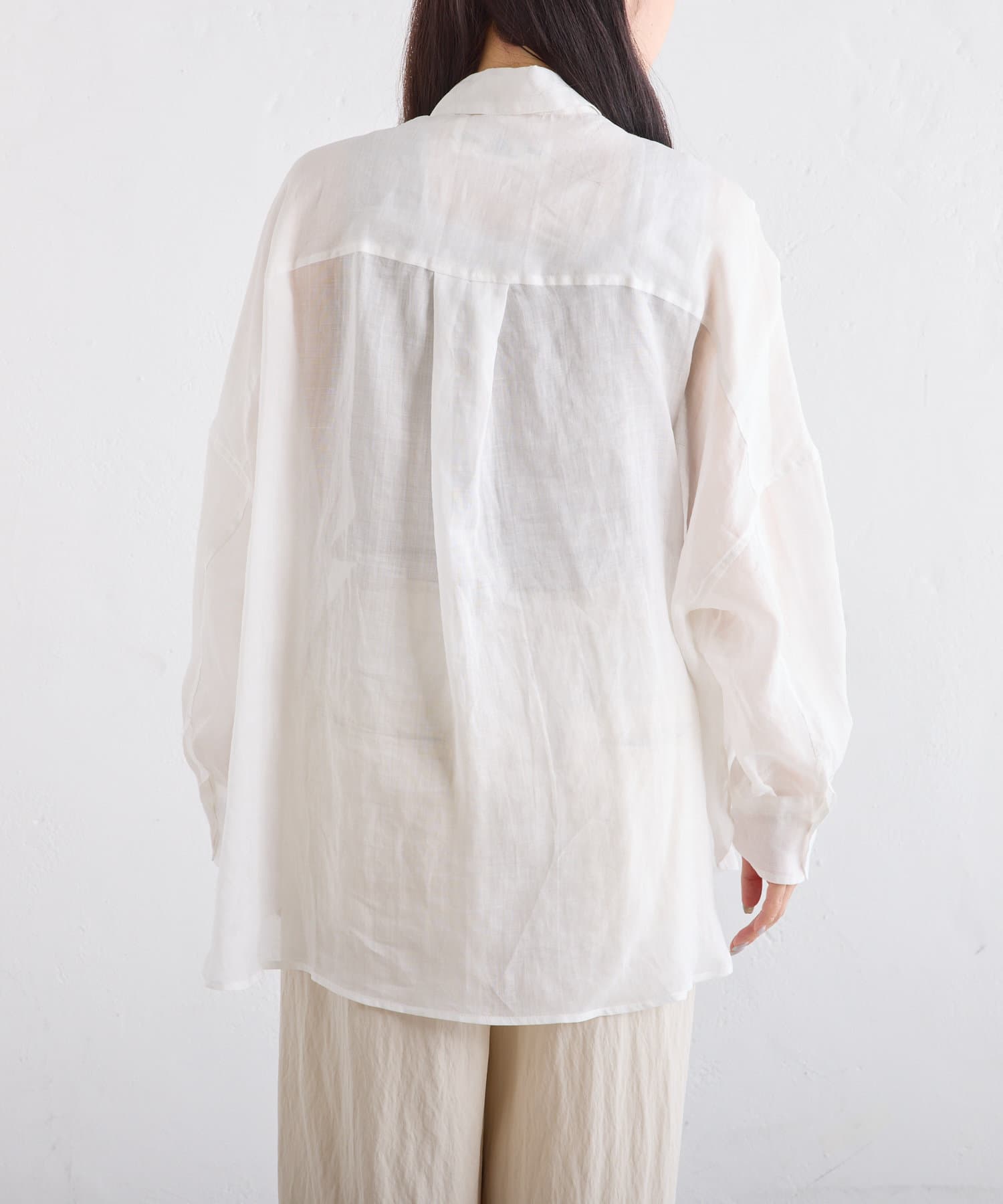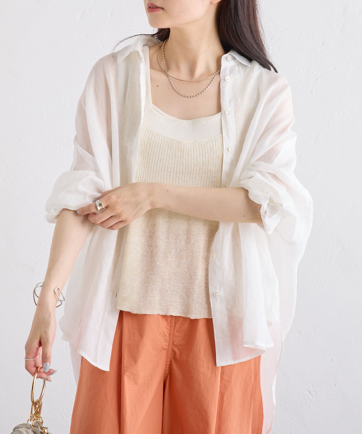 ラミー素材ならではの、透け感がコーデに抜けを出してくれます。
