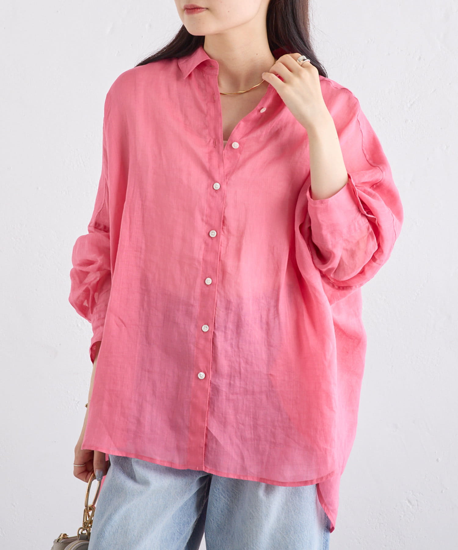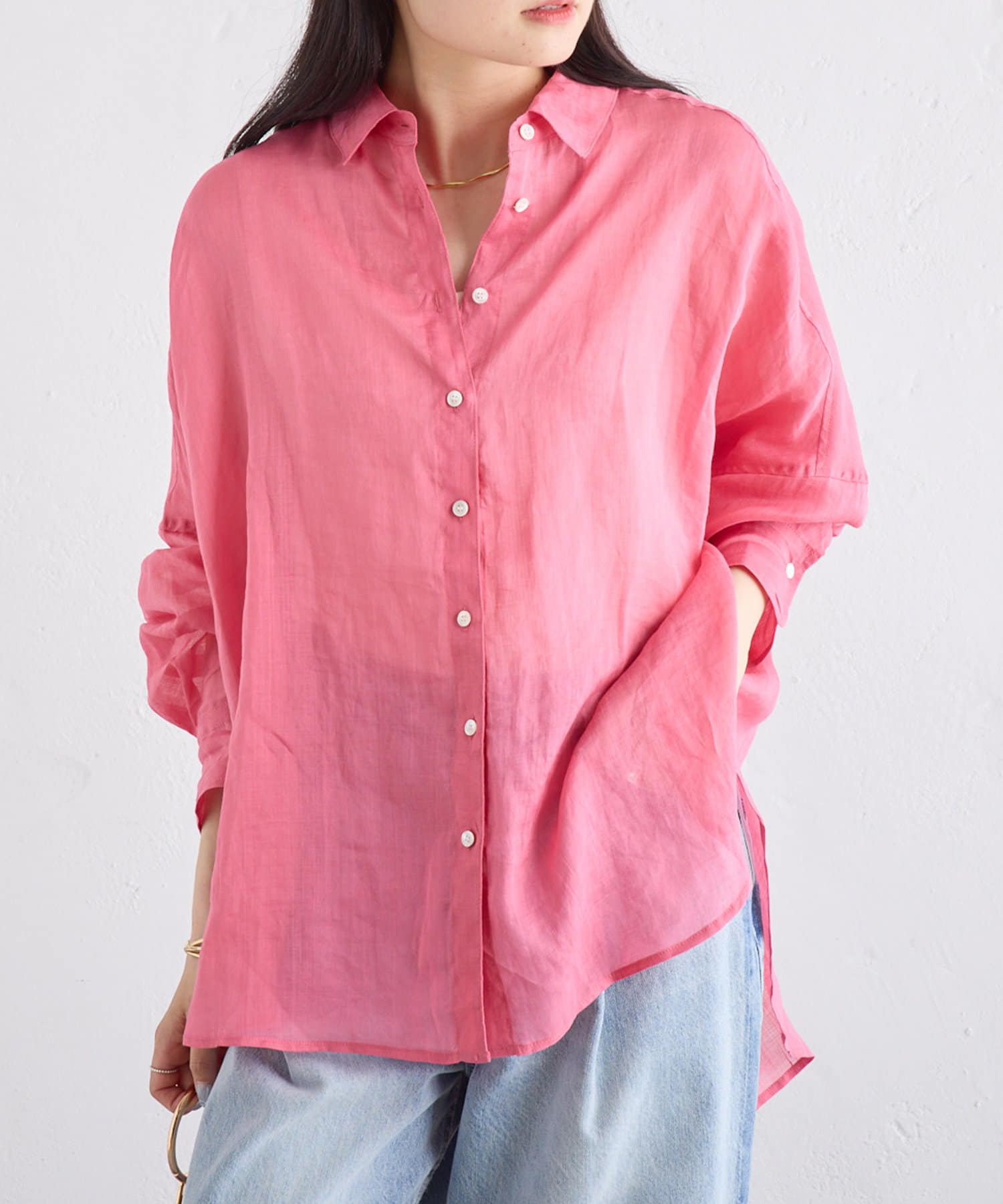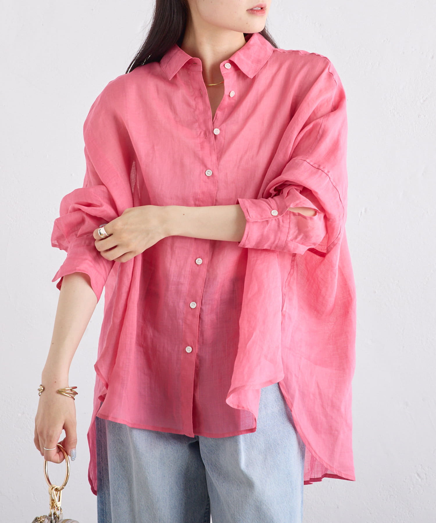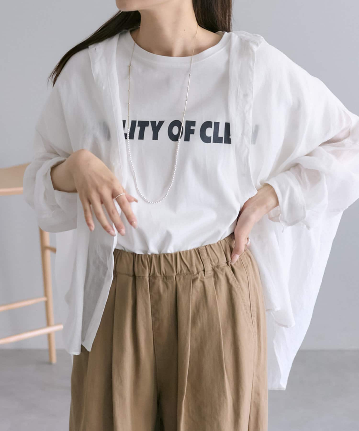 ラミー素材ならではの、透け感がコーデに抜けを出してくれます。
