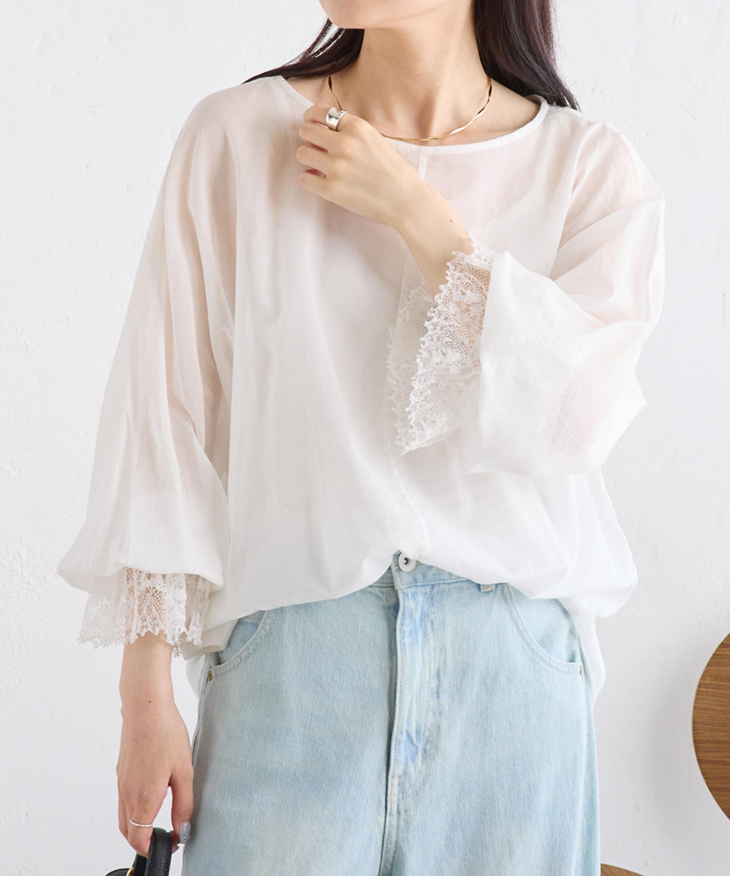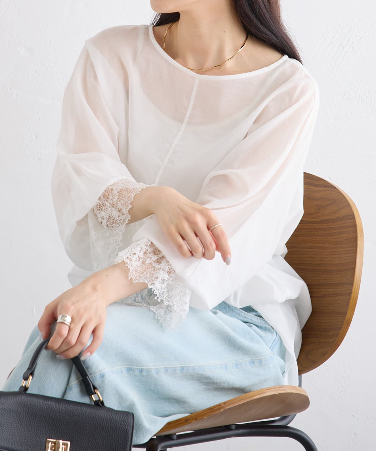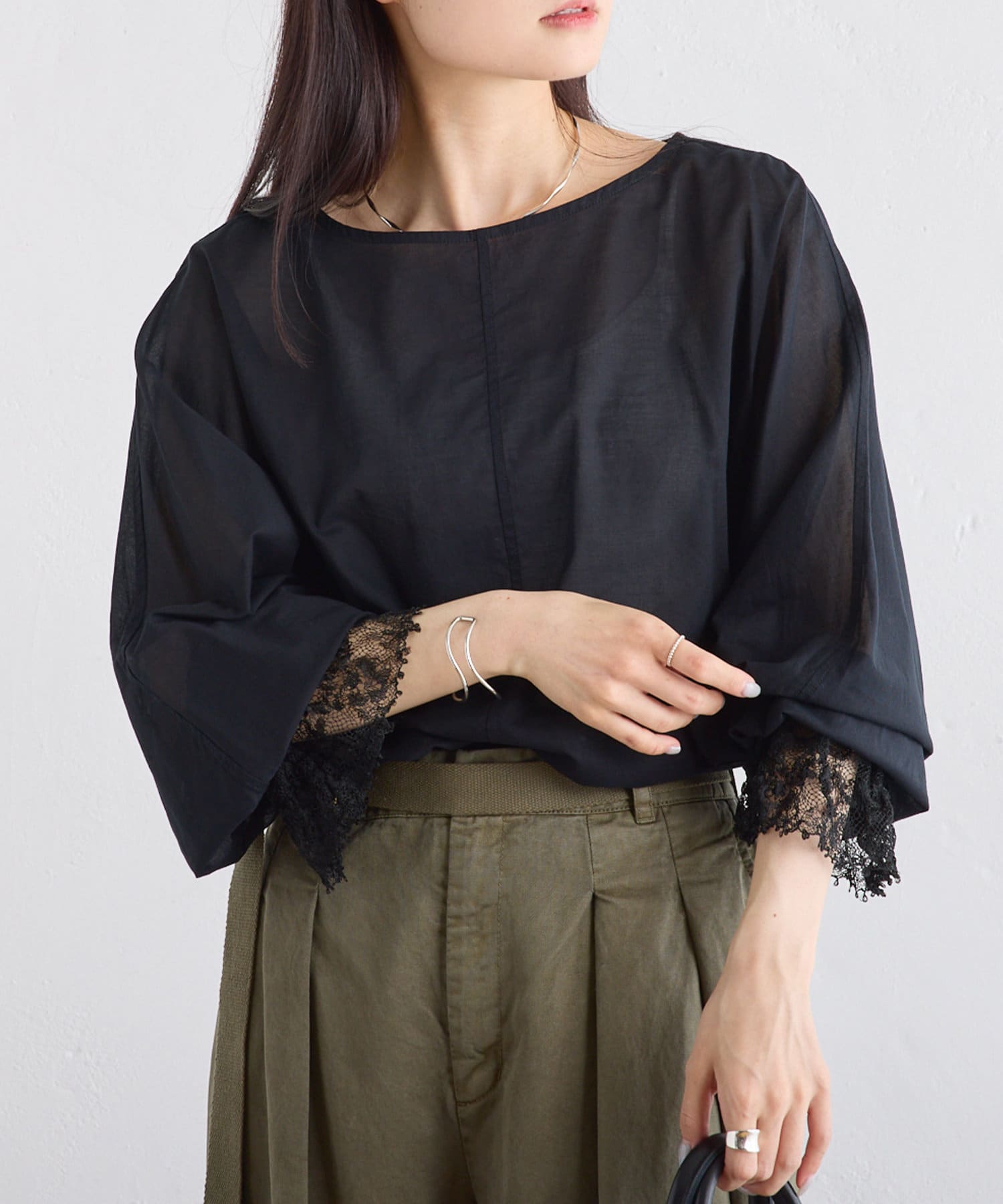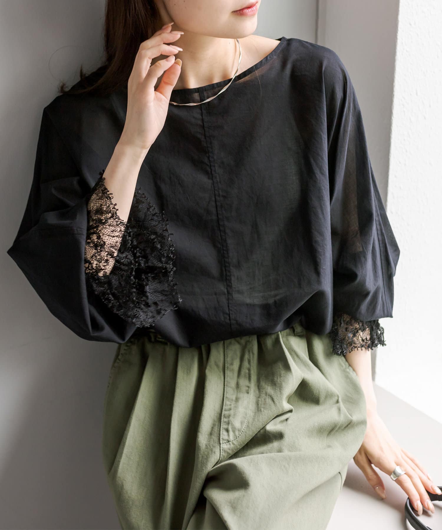 スタイリングに華やかさを添えるレースプルオーバーブラウス。