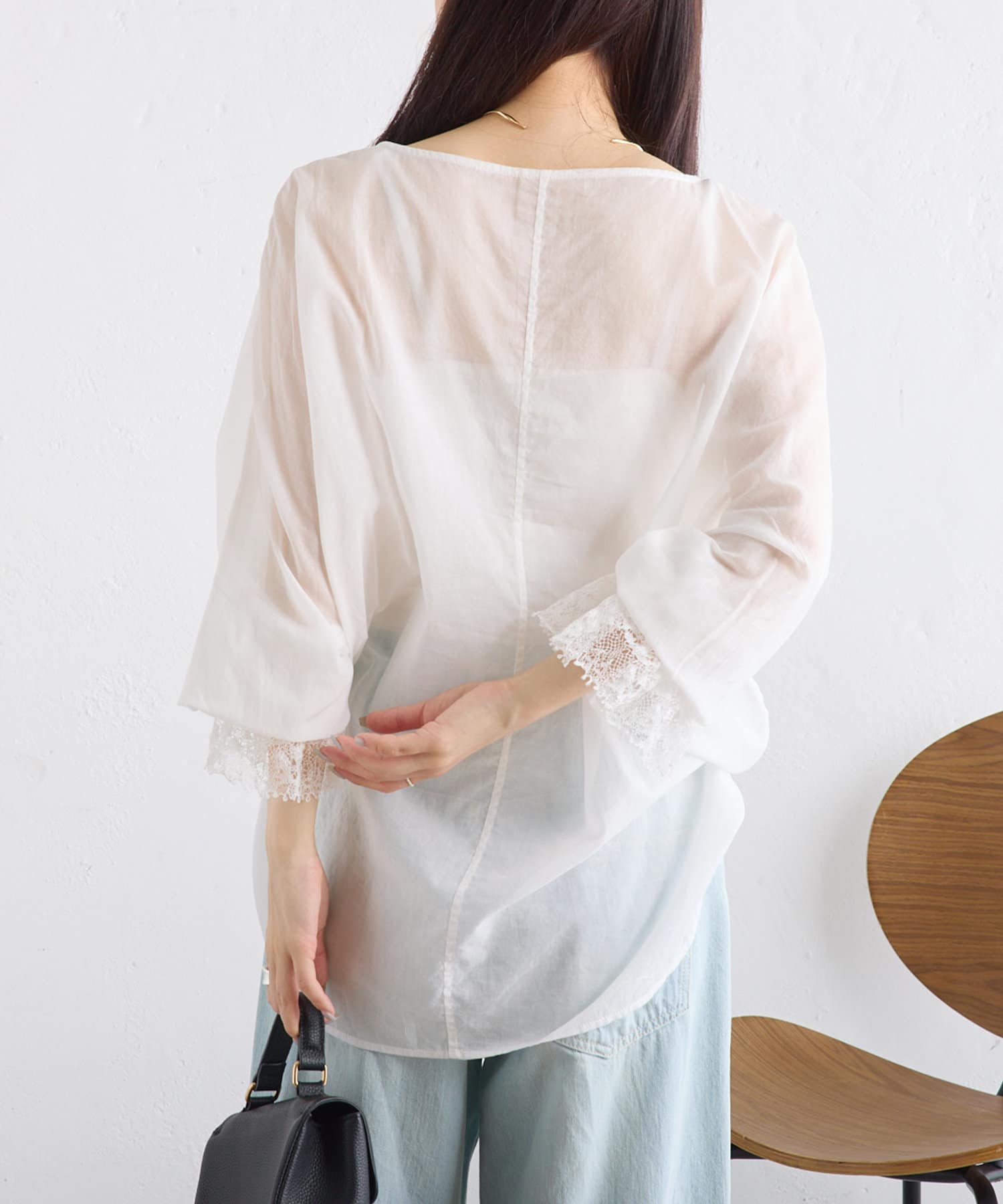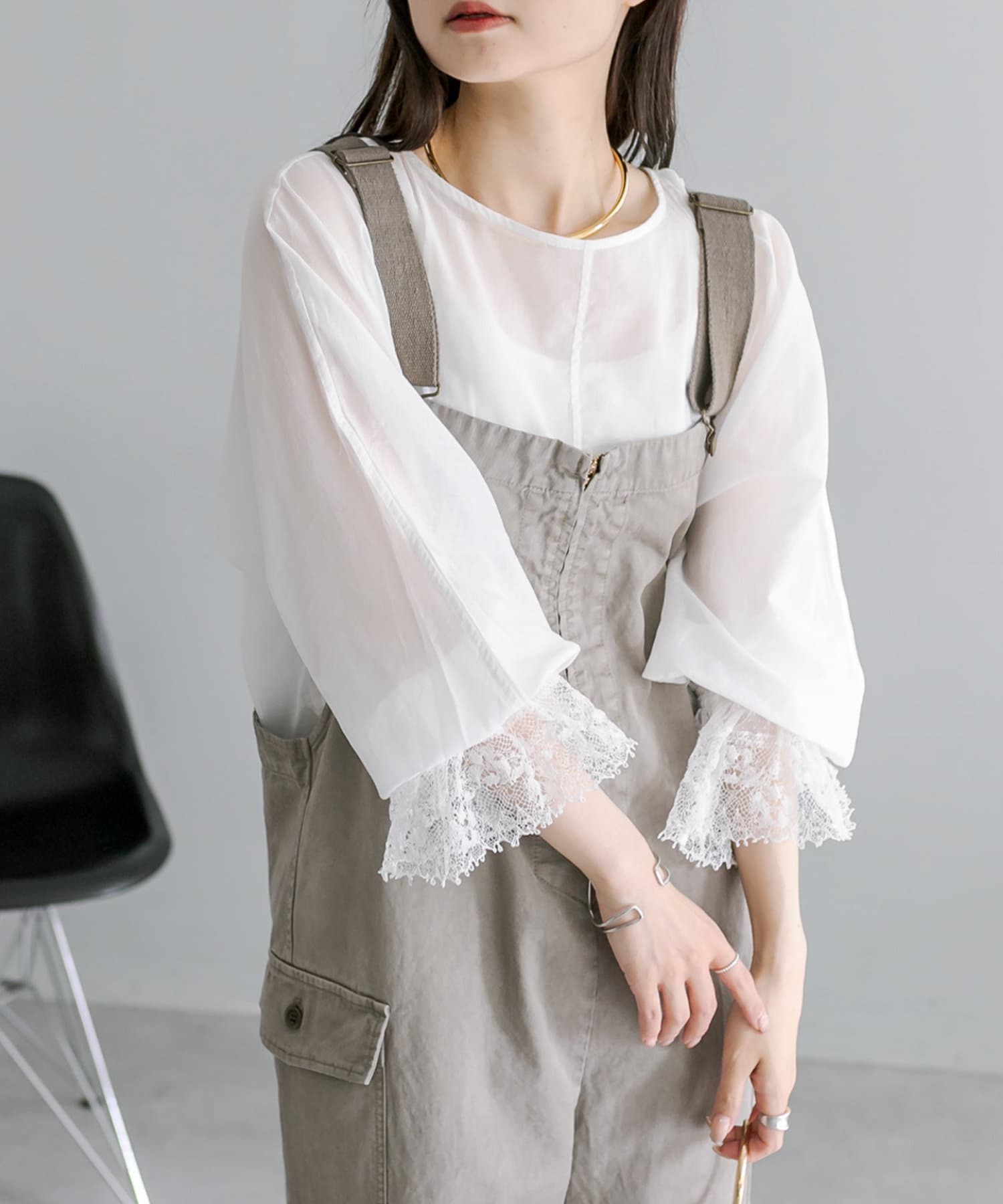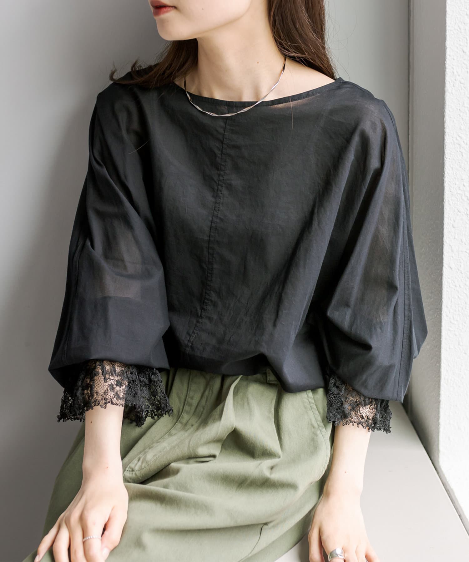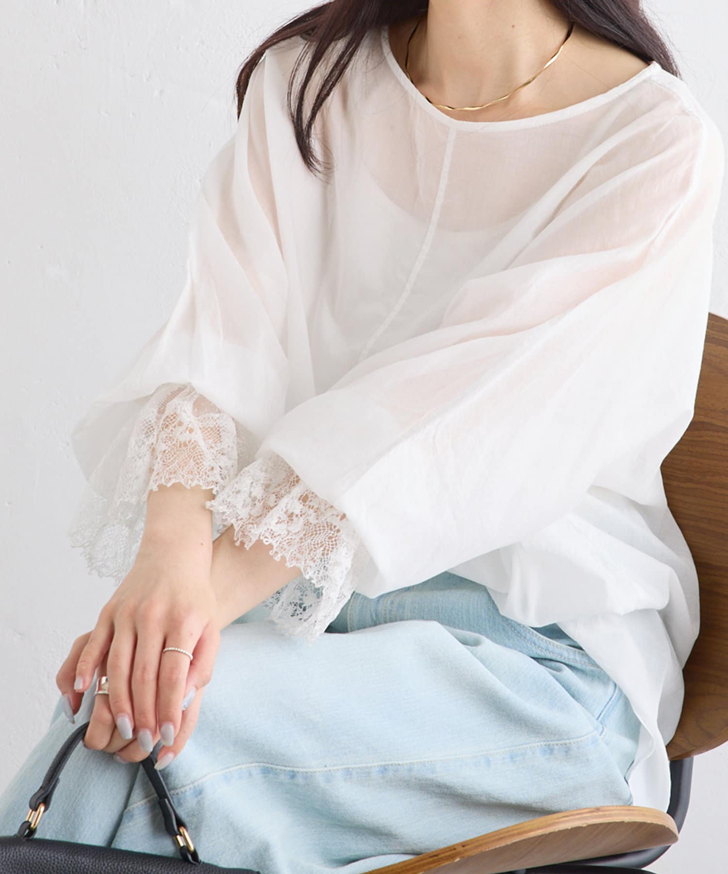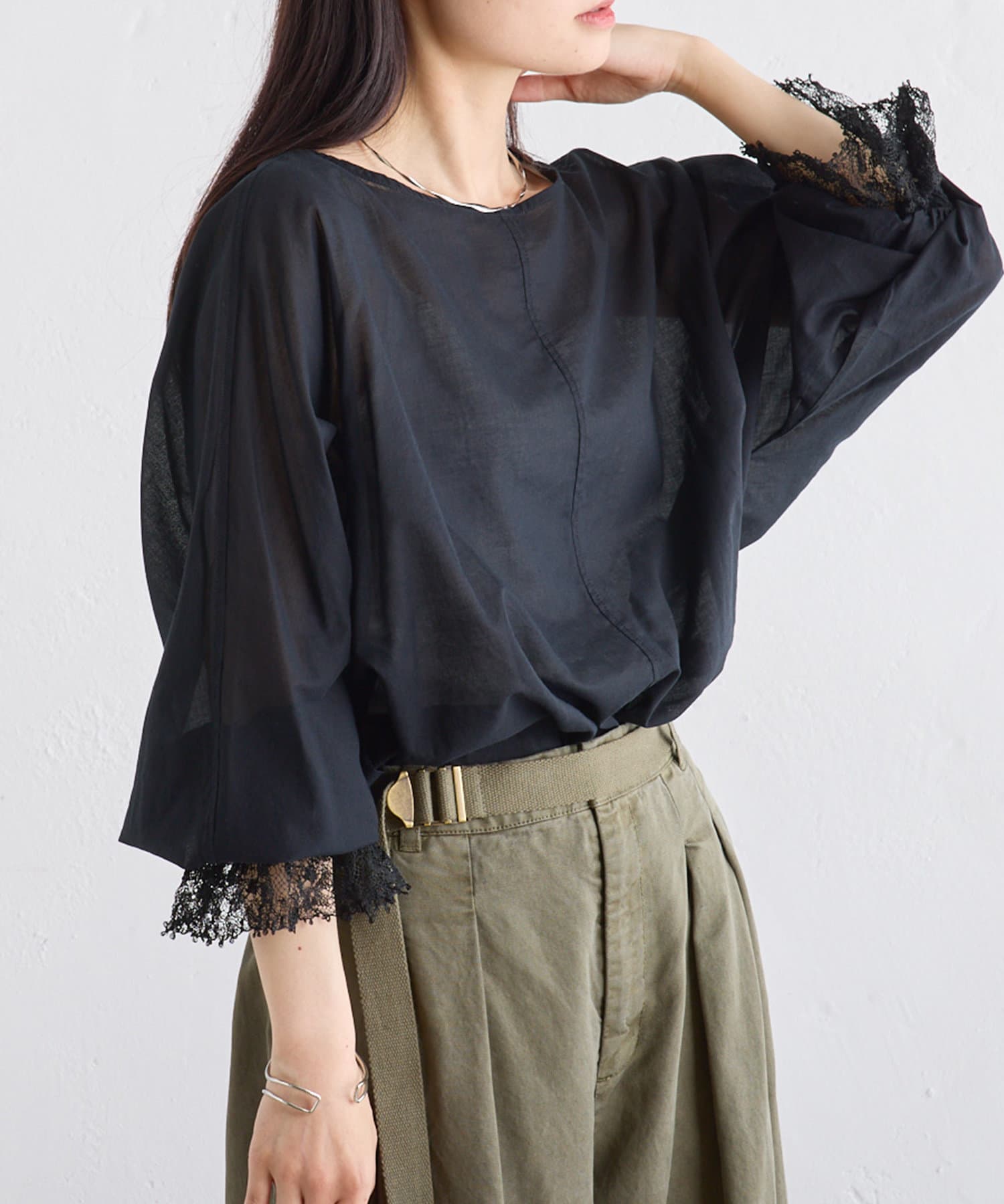 スタイリングに華やかさを添えるレースプルオーバーブラウス。