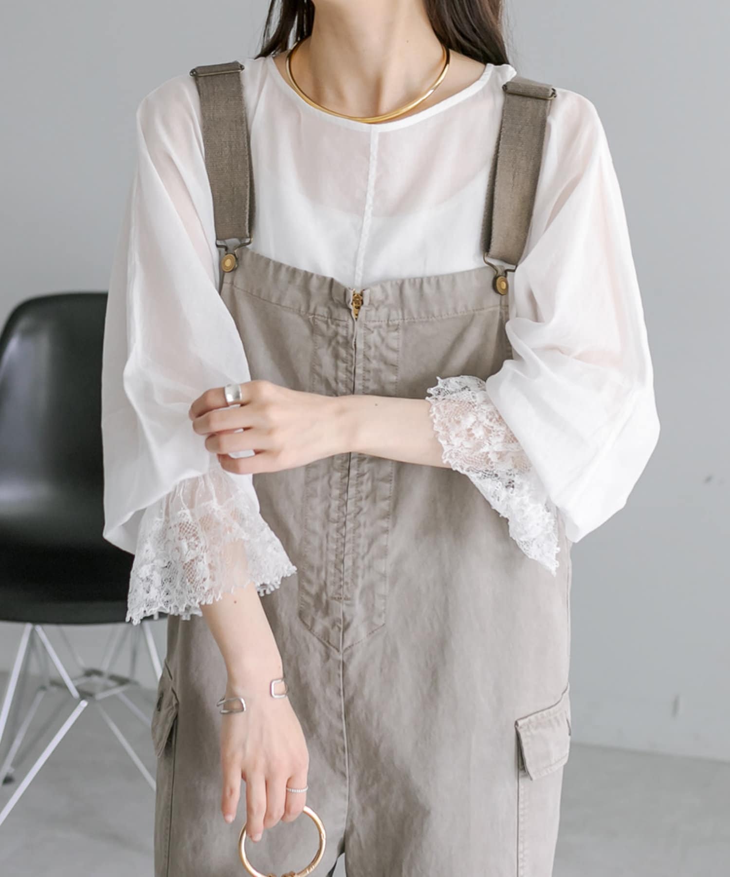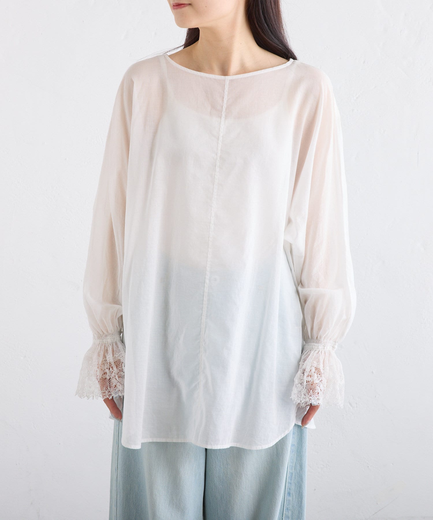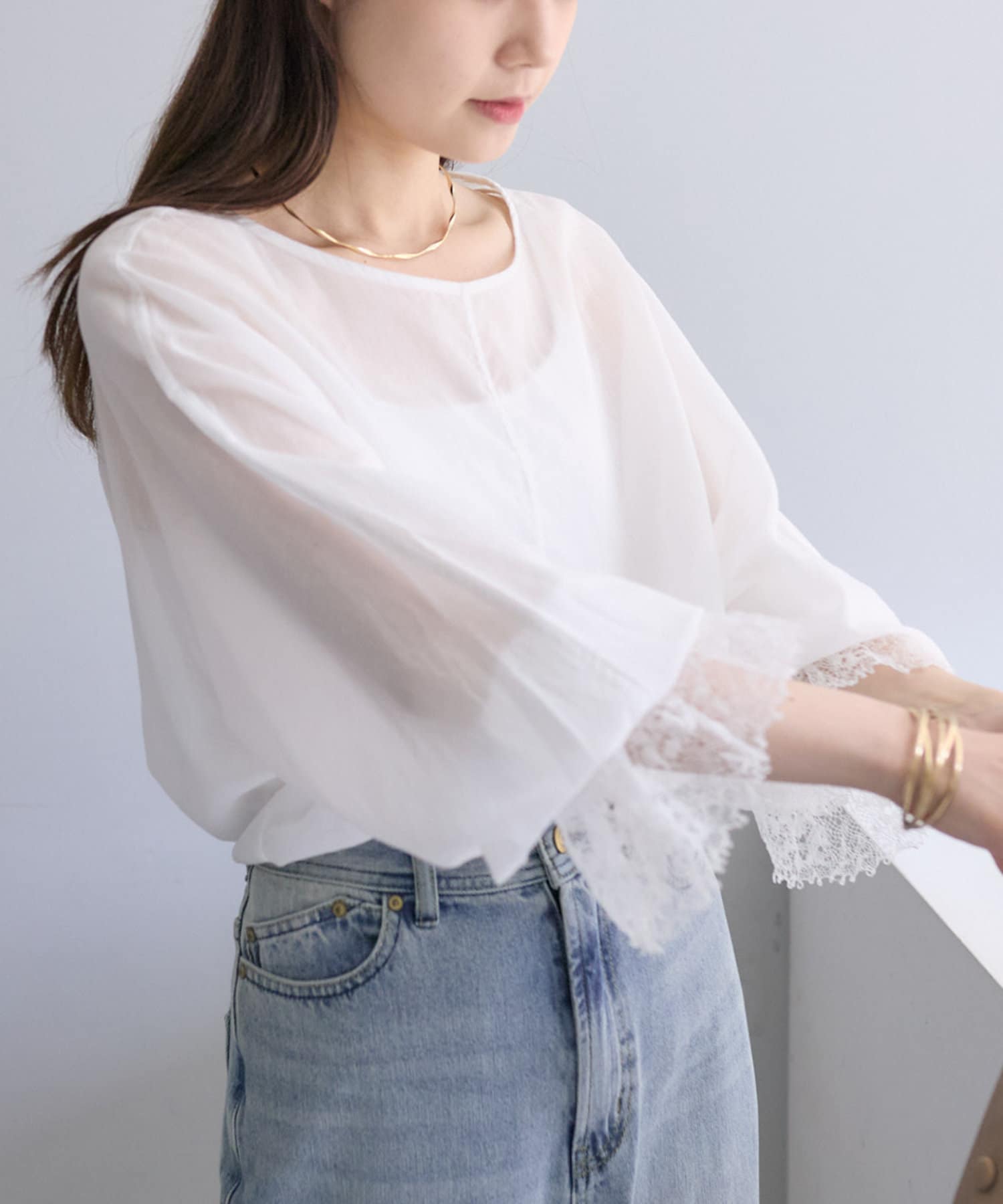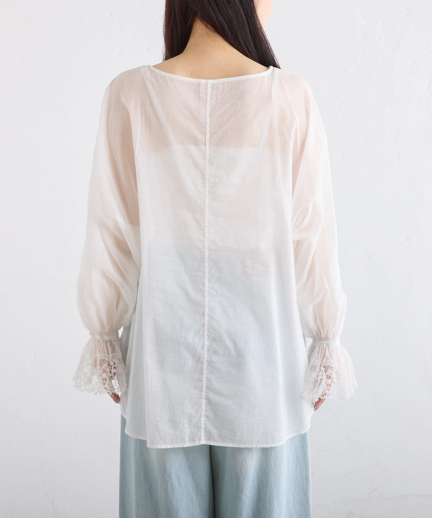 スタイリングに華やかさを添えるレースプルオーバーブラウス。