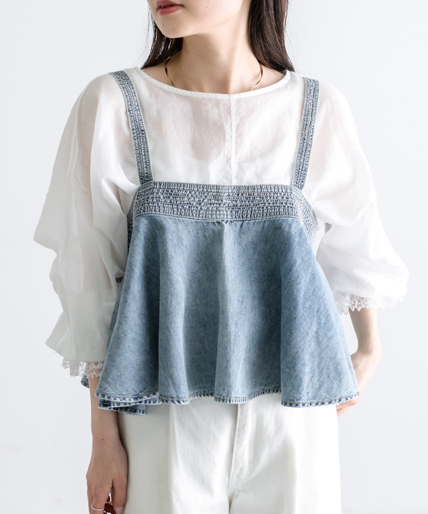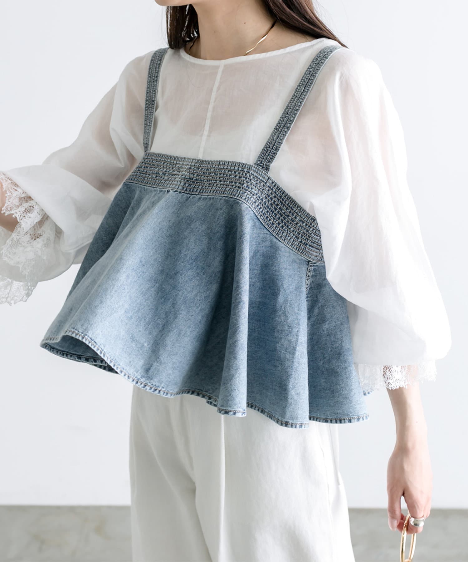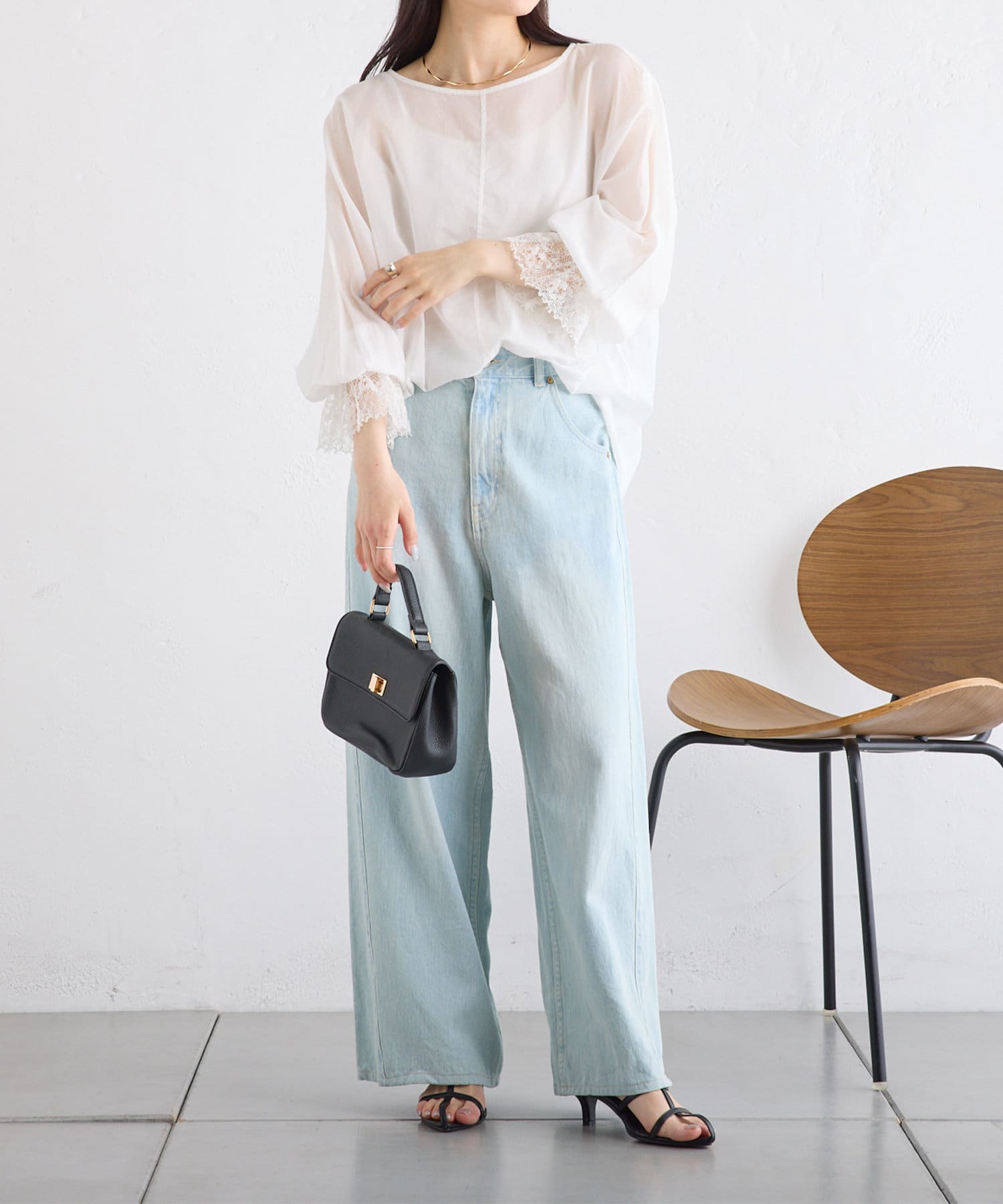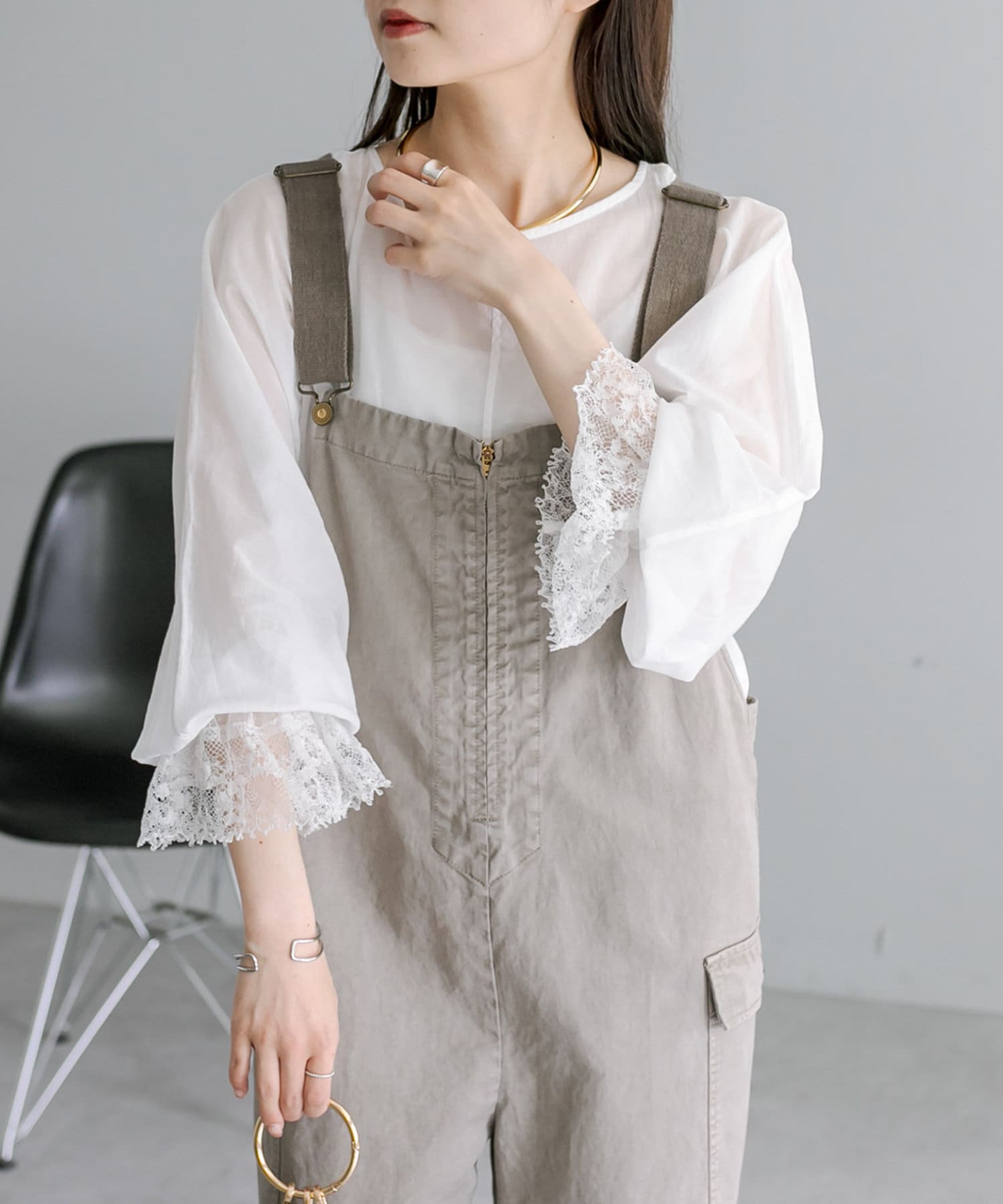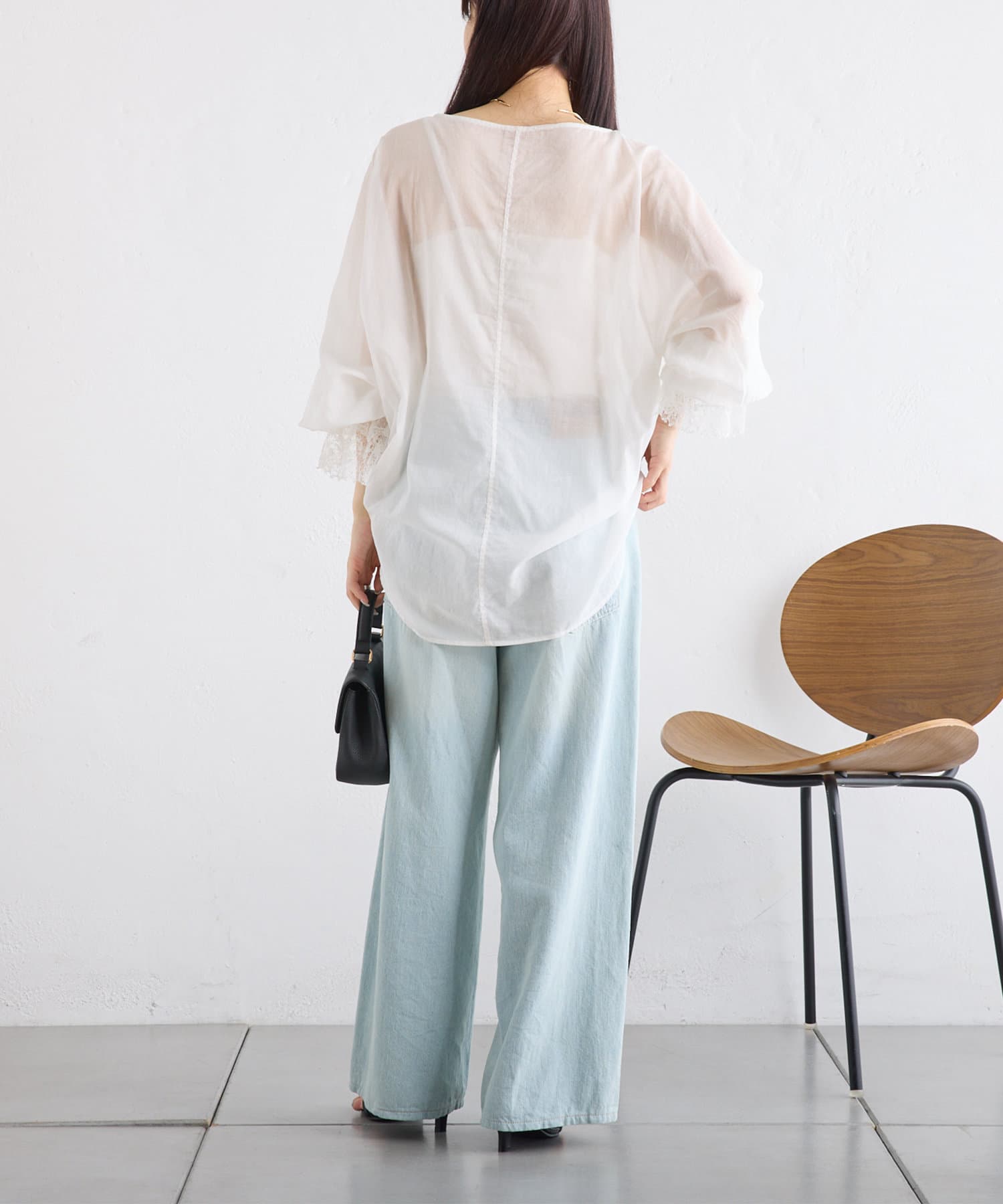 スタイリングに華やかさを添えるレースプルオーバーブラウス。