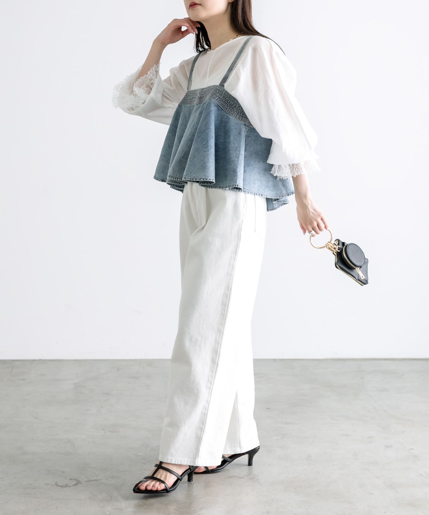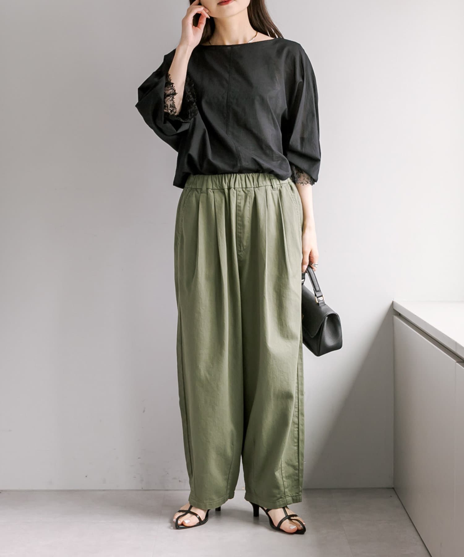 INスタイルではギャザースカートや、ワイドスラックスパンツとの相性が◎