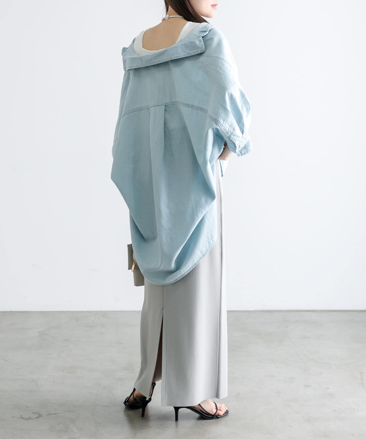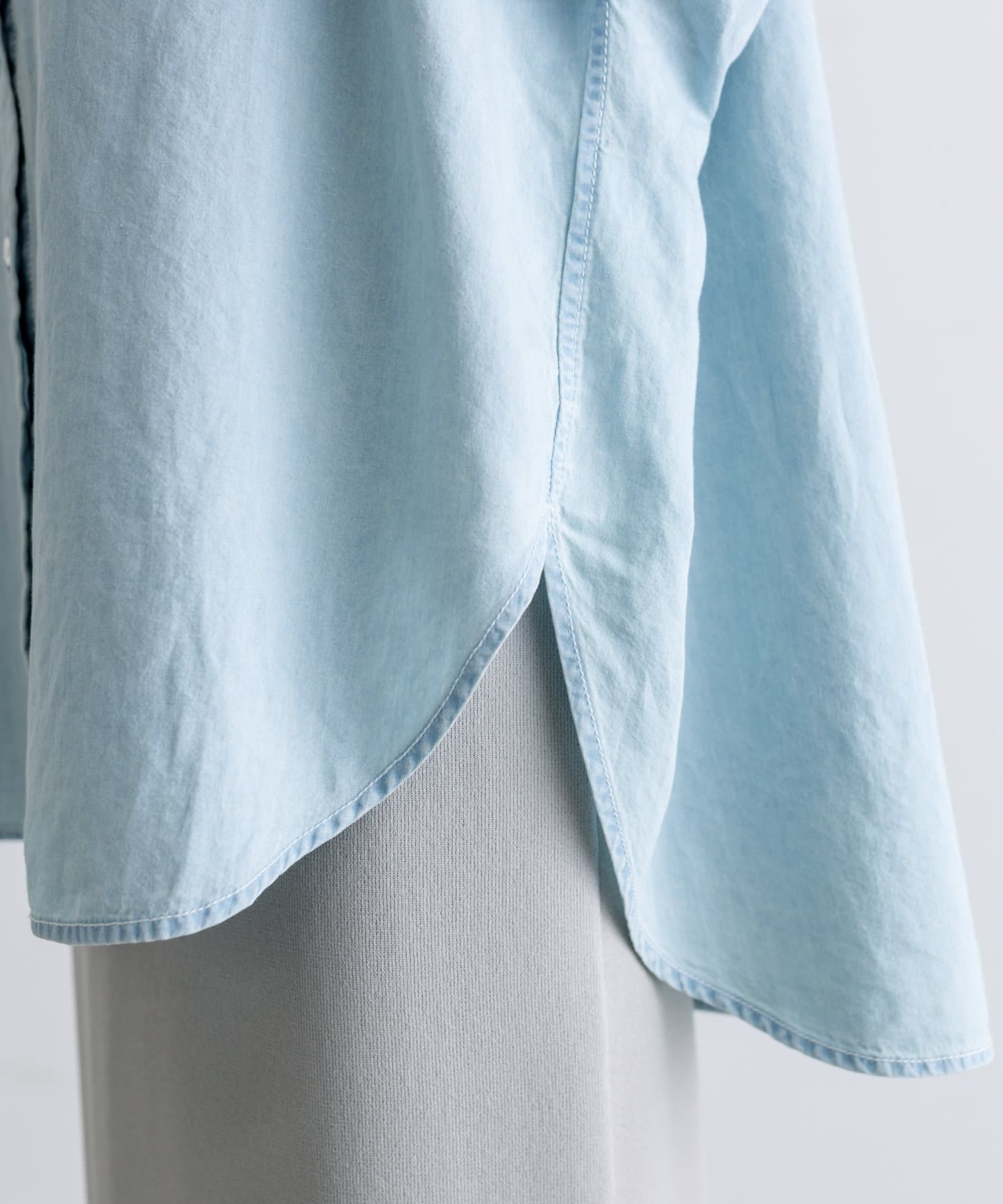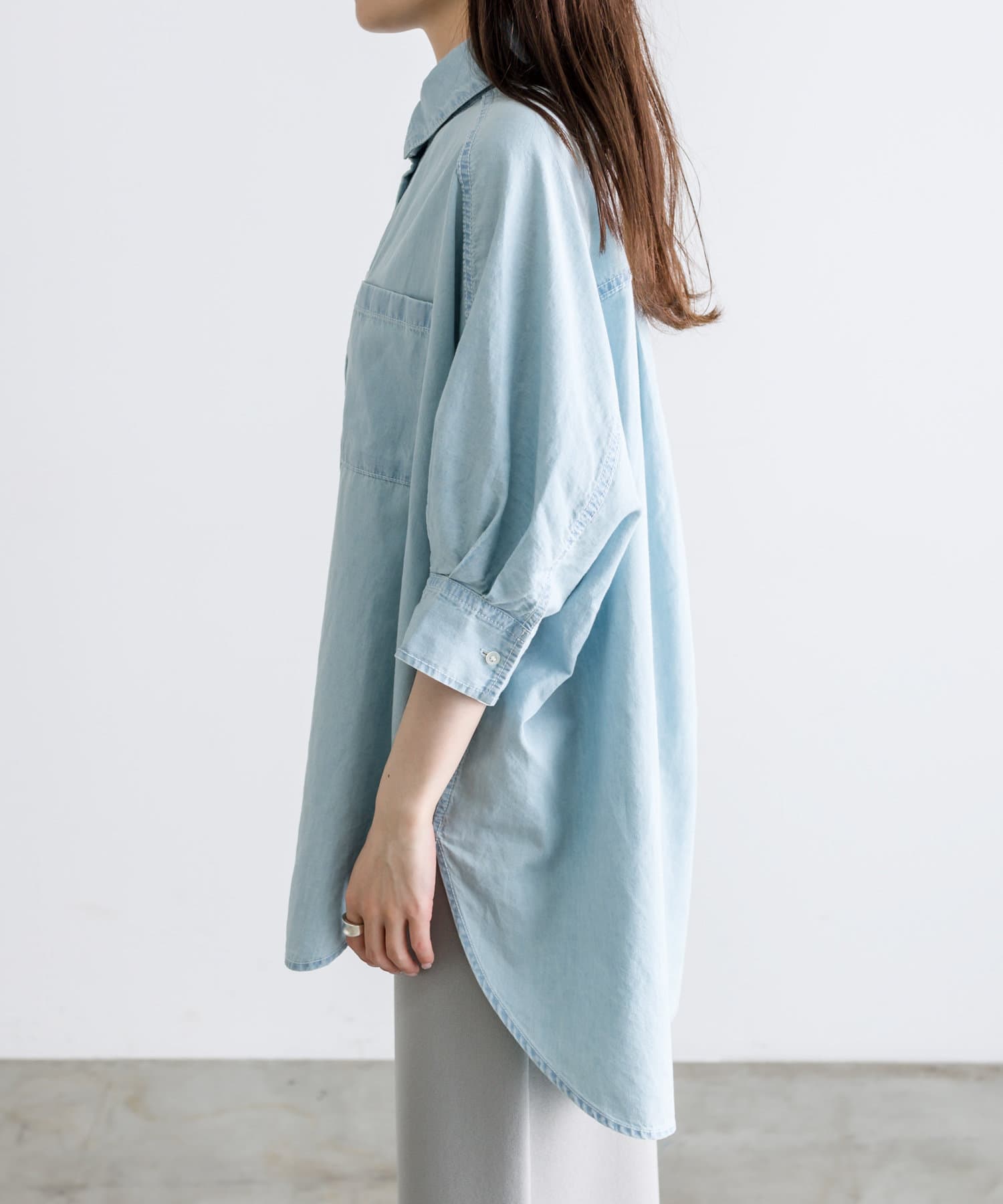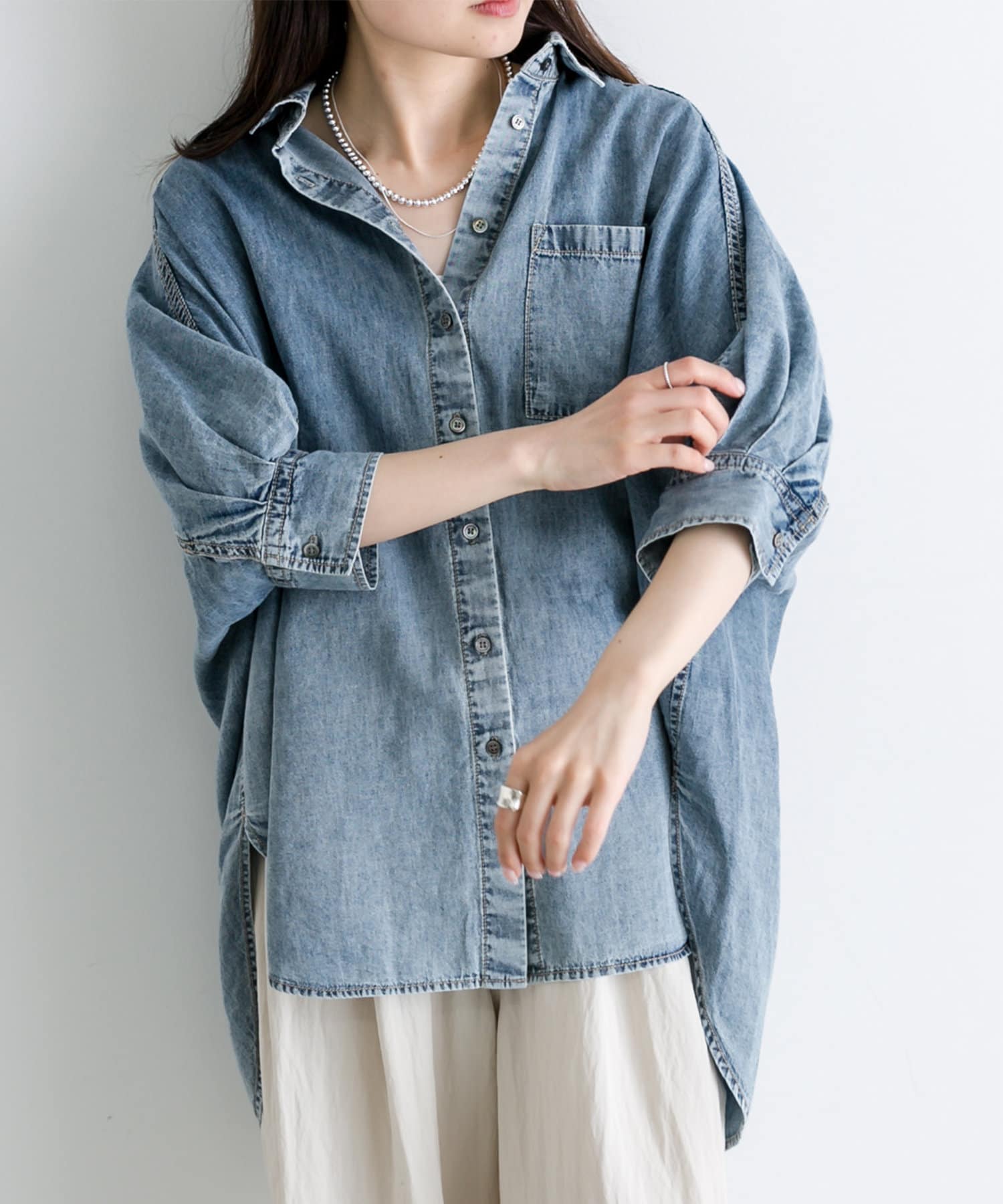 前後の差を大きくつけたヘムラインにゆったりとしたオーバーシルエットが、メインで着映えるデニムシャツ。