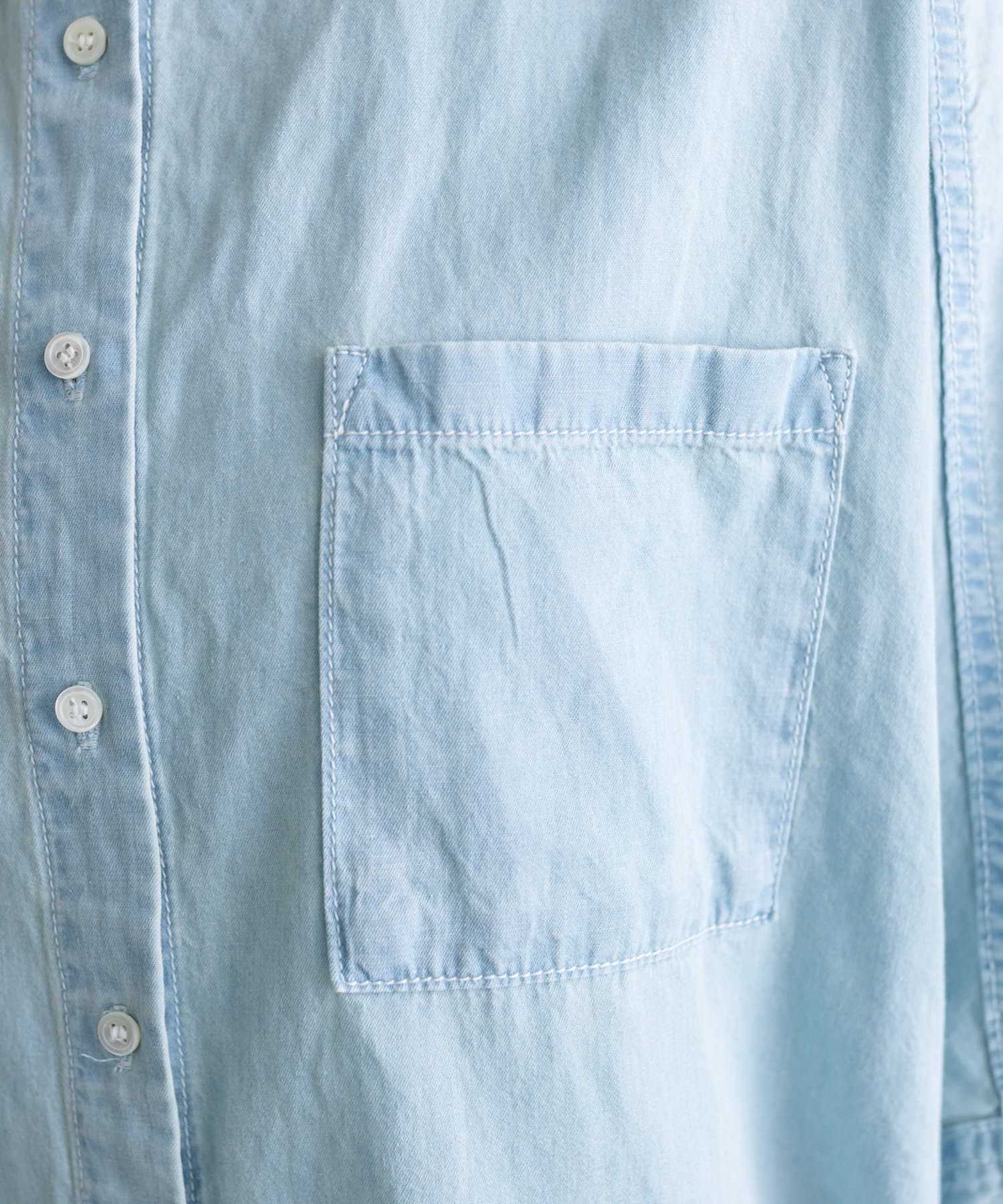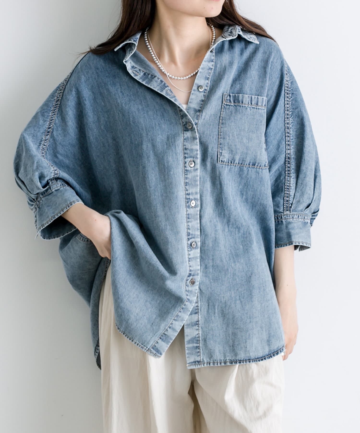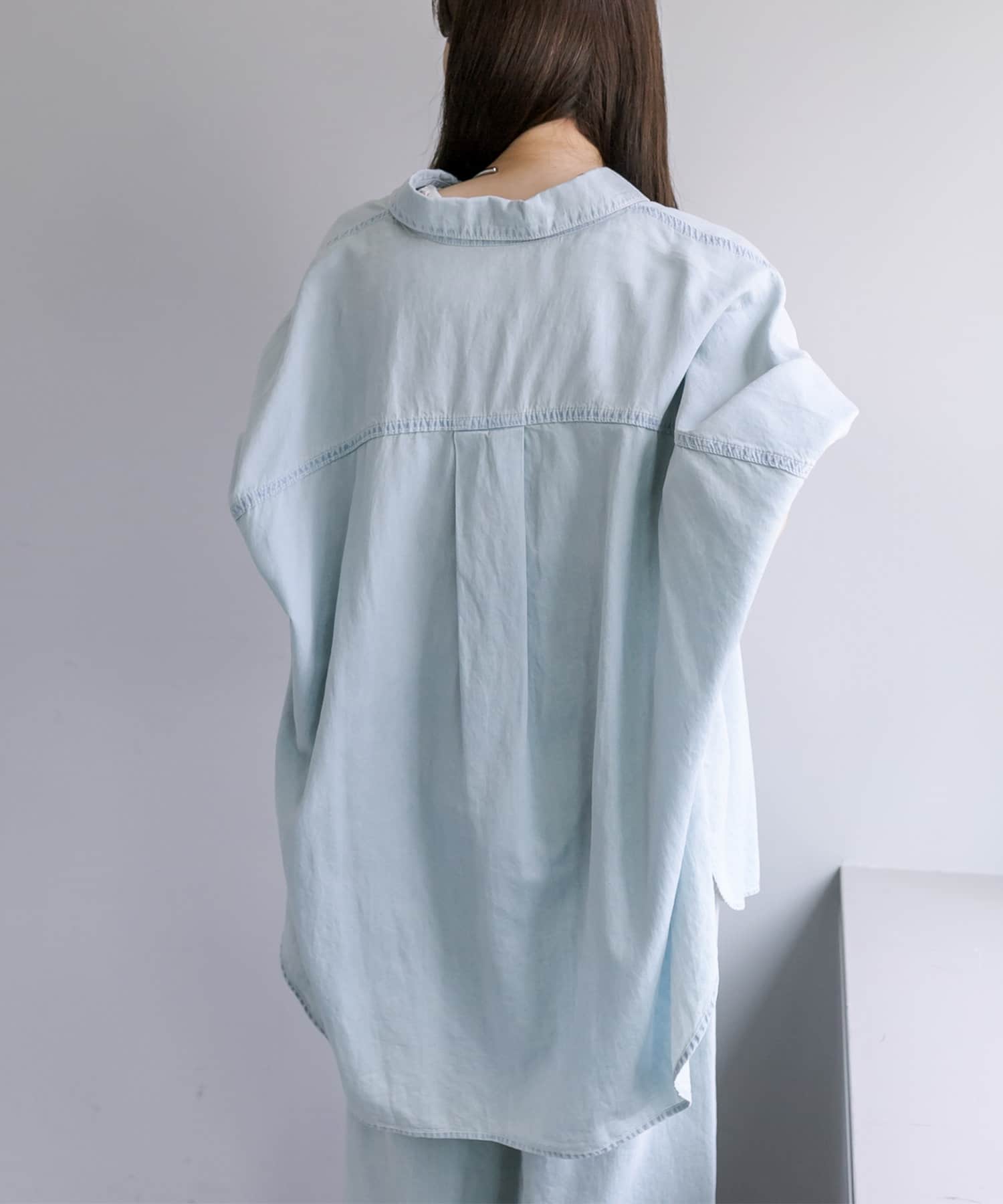 前後の差を大きくつけたヘムラインにゆったりとしたオーバーシルエットが、メインで着映えるデニムシャツ。