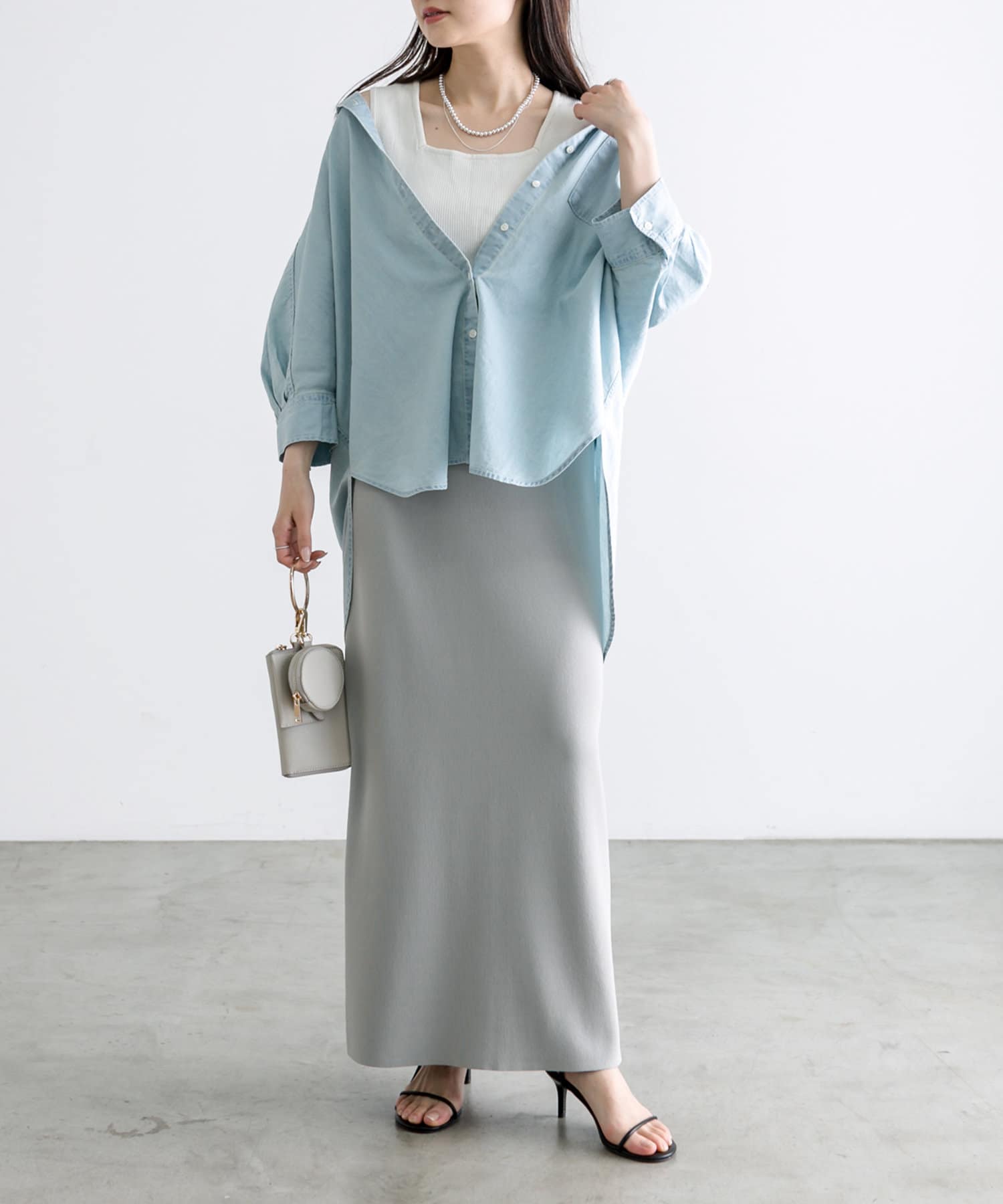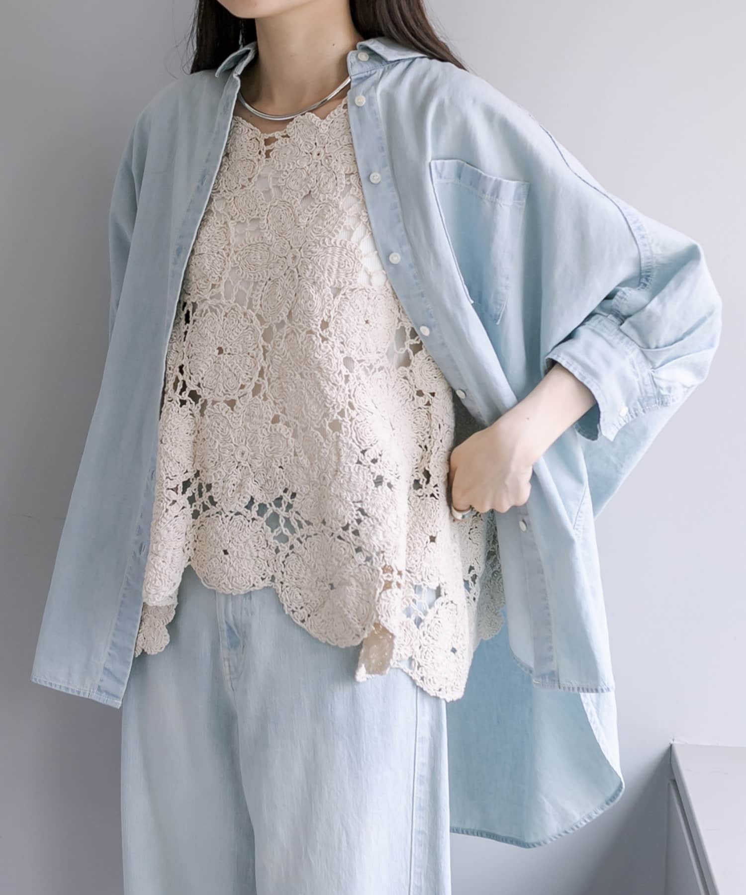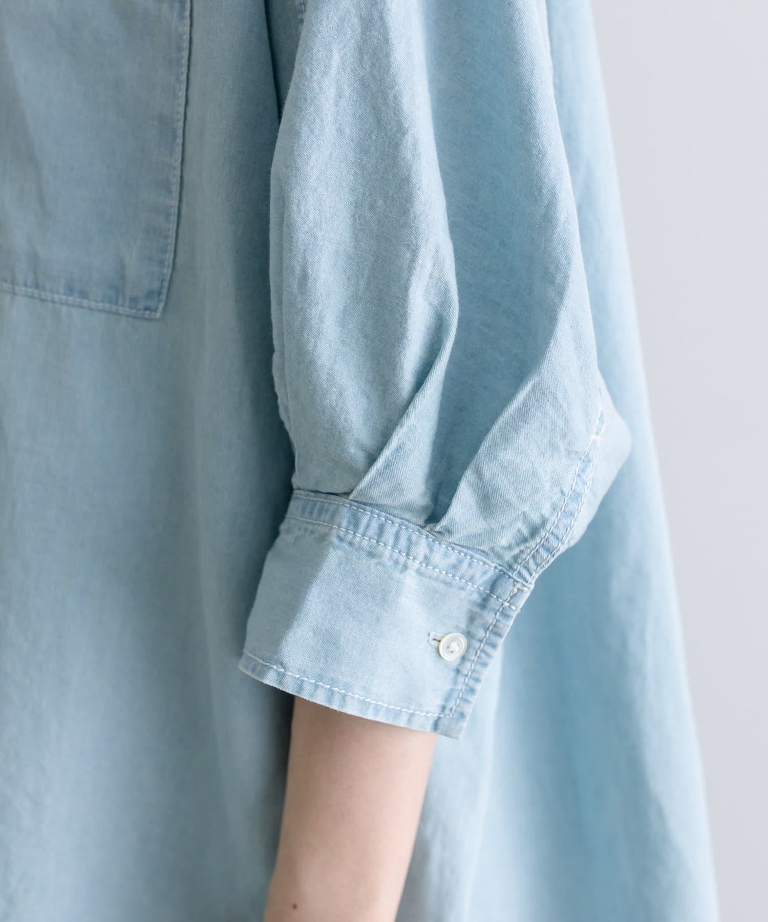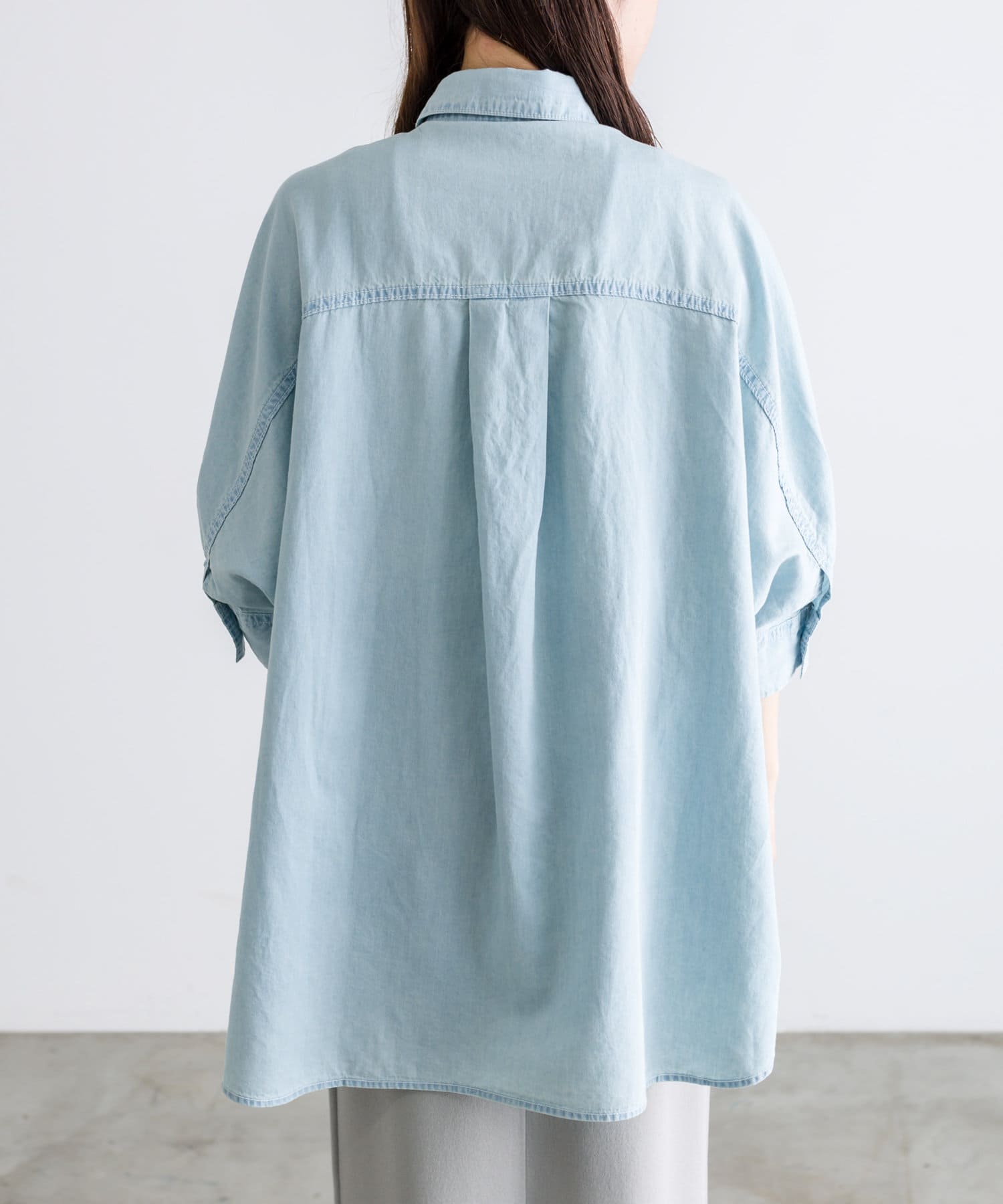 前後の差を大きくつけたヘムラインにゆったりとしたオーバーシルエットが、メインで着映えるデニムシャツ。