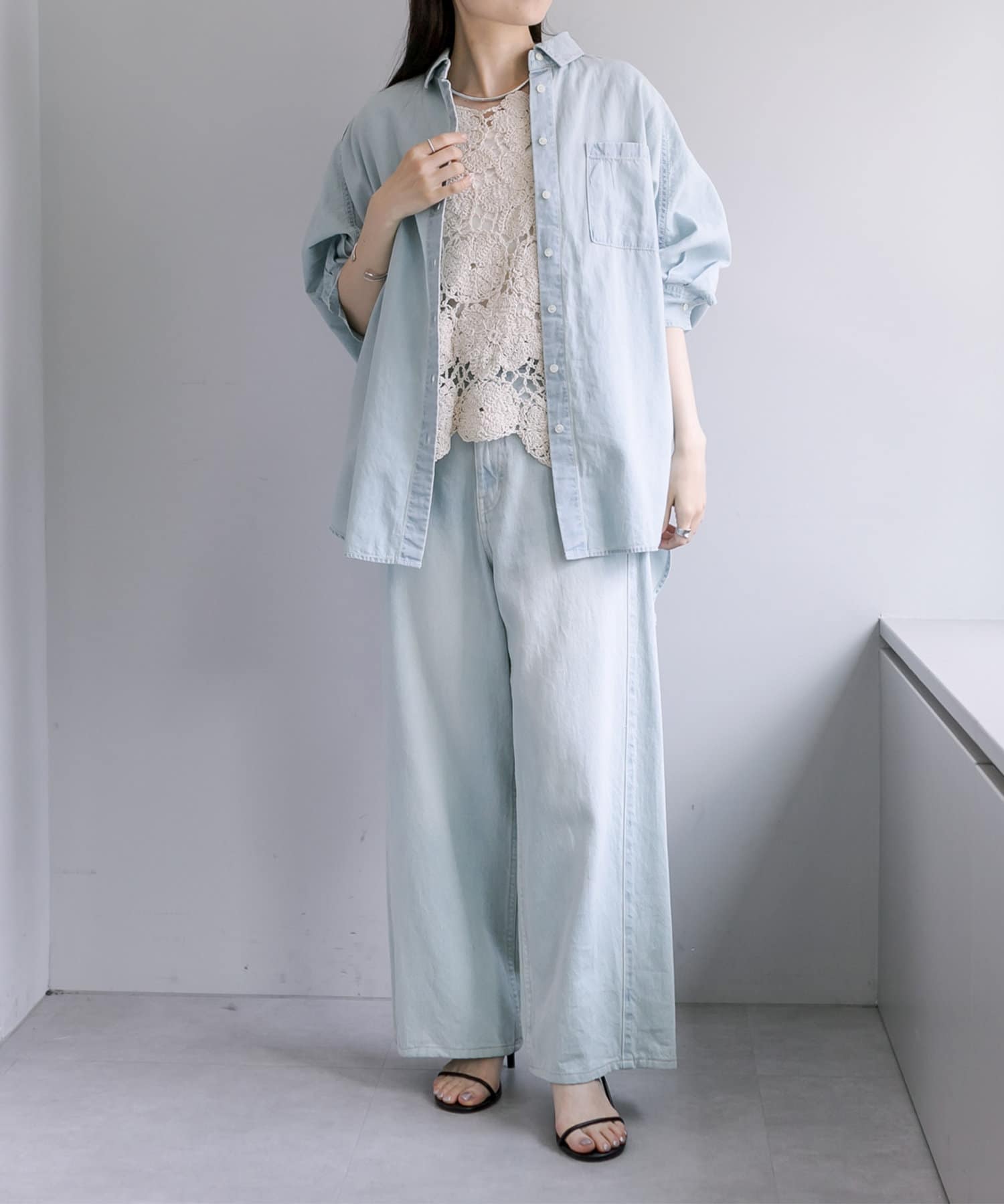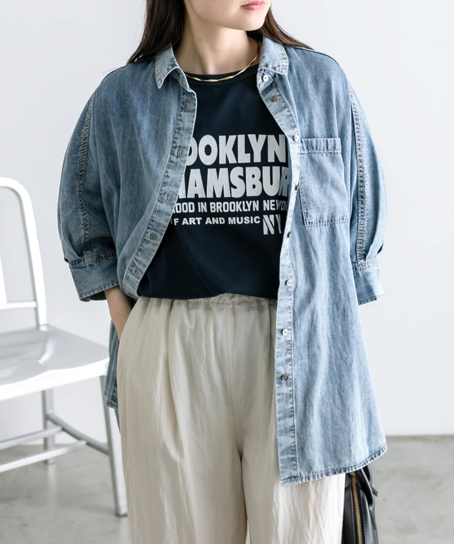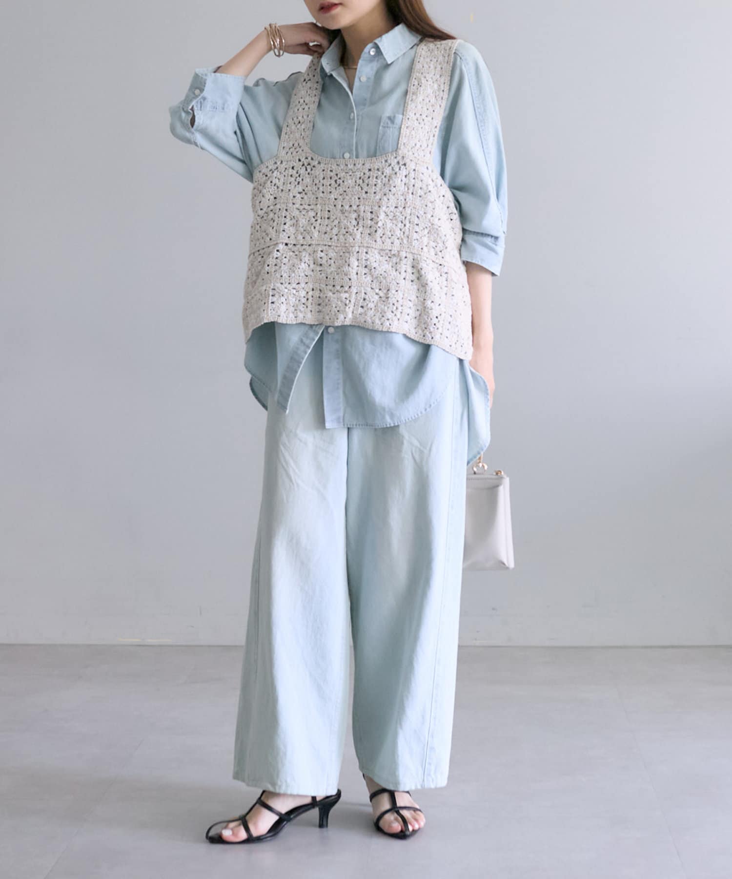 コットンリネンのデニム素材はくたっと柔らかく、抜け感のあるカジュアルスタイルに仕上がります。