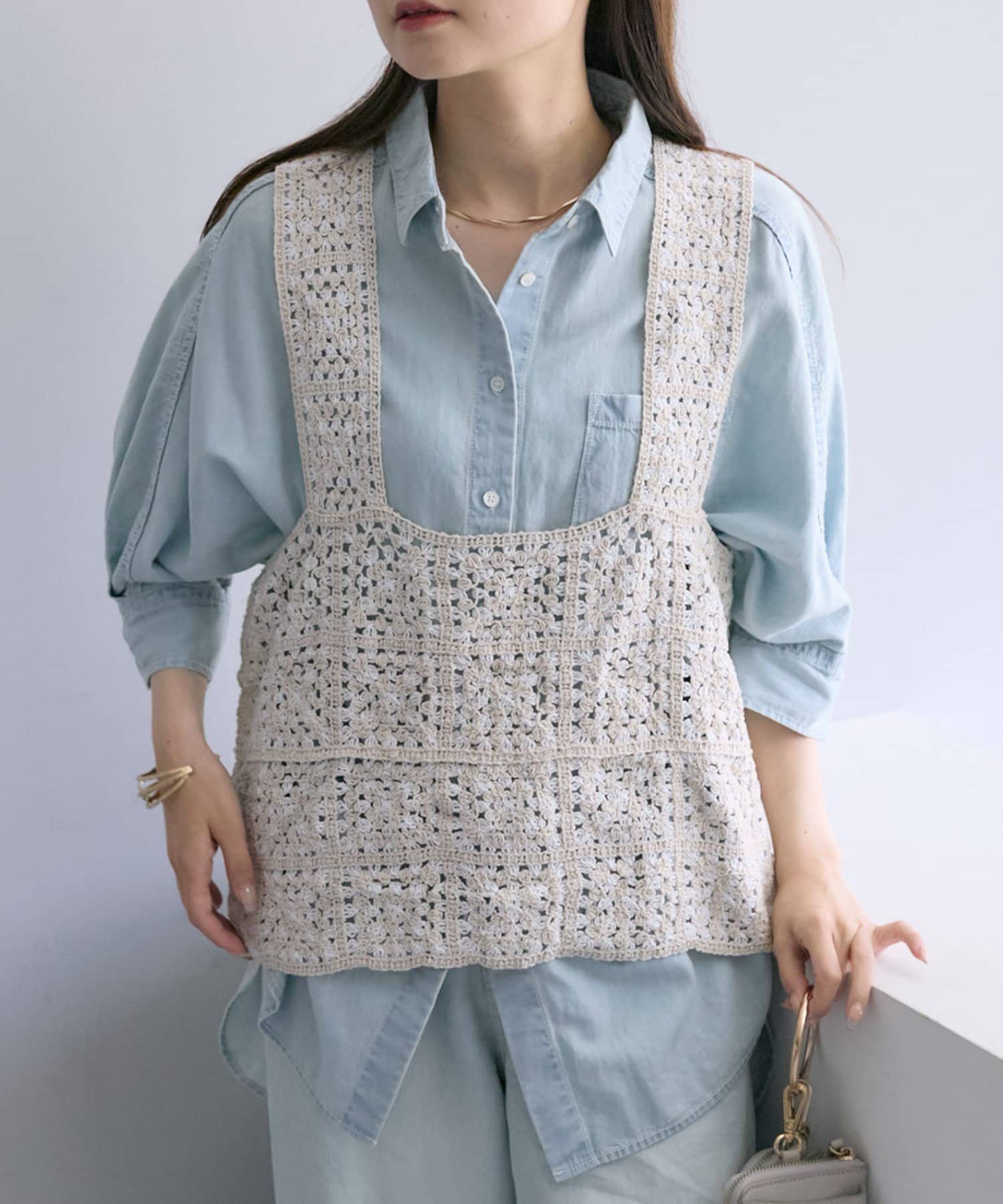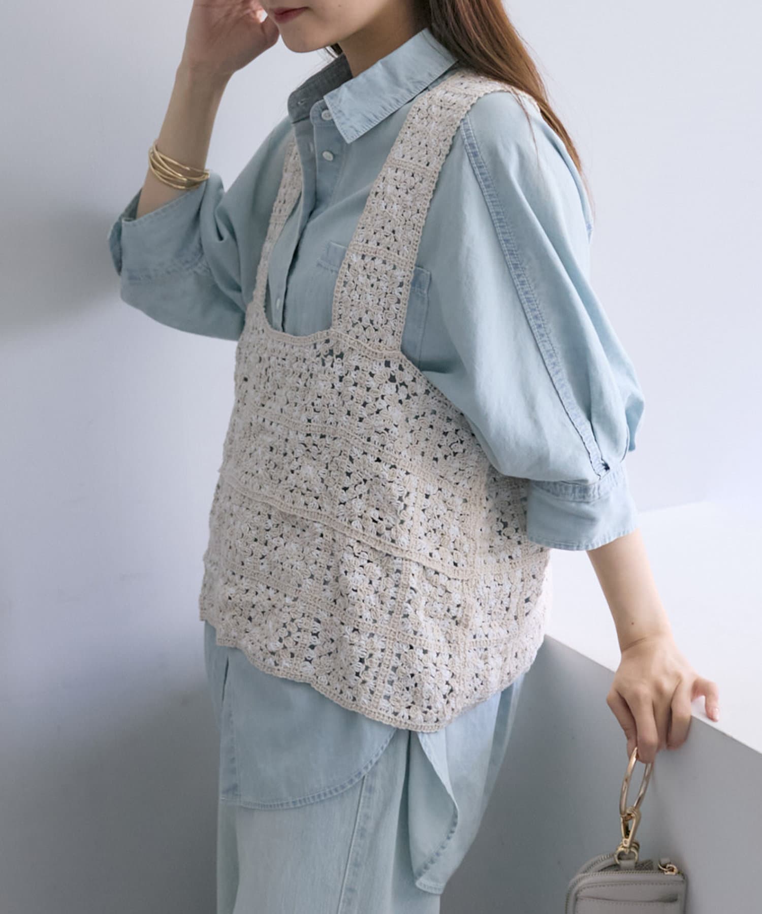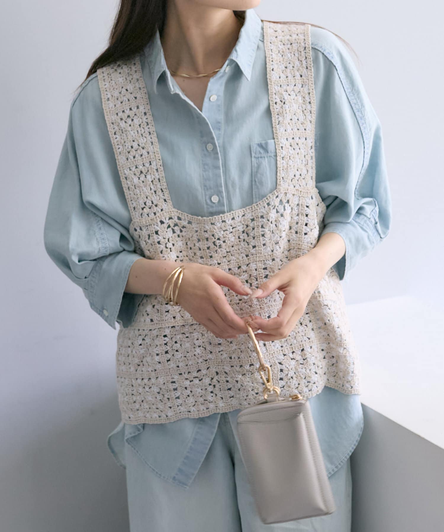 コットンリネンのデニム素材はくたっと柔らかく、抜け感のあるカジュアルスタイルに仕上がります。