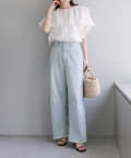 デニムやワイドパンツ、サスペンダーパンツなどミックスコーデがおすすめです。