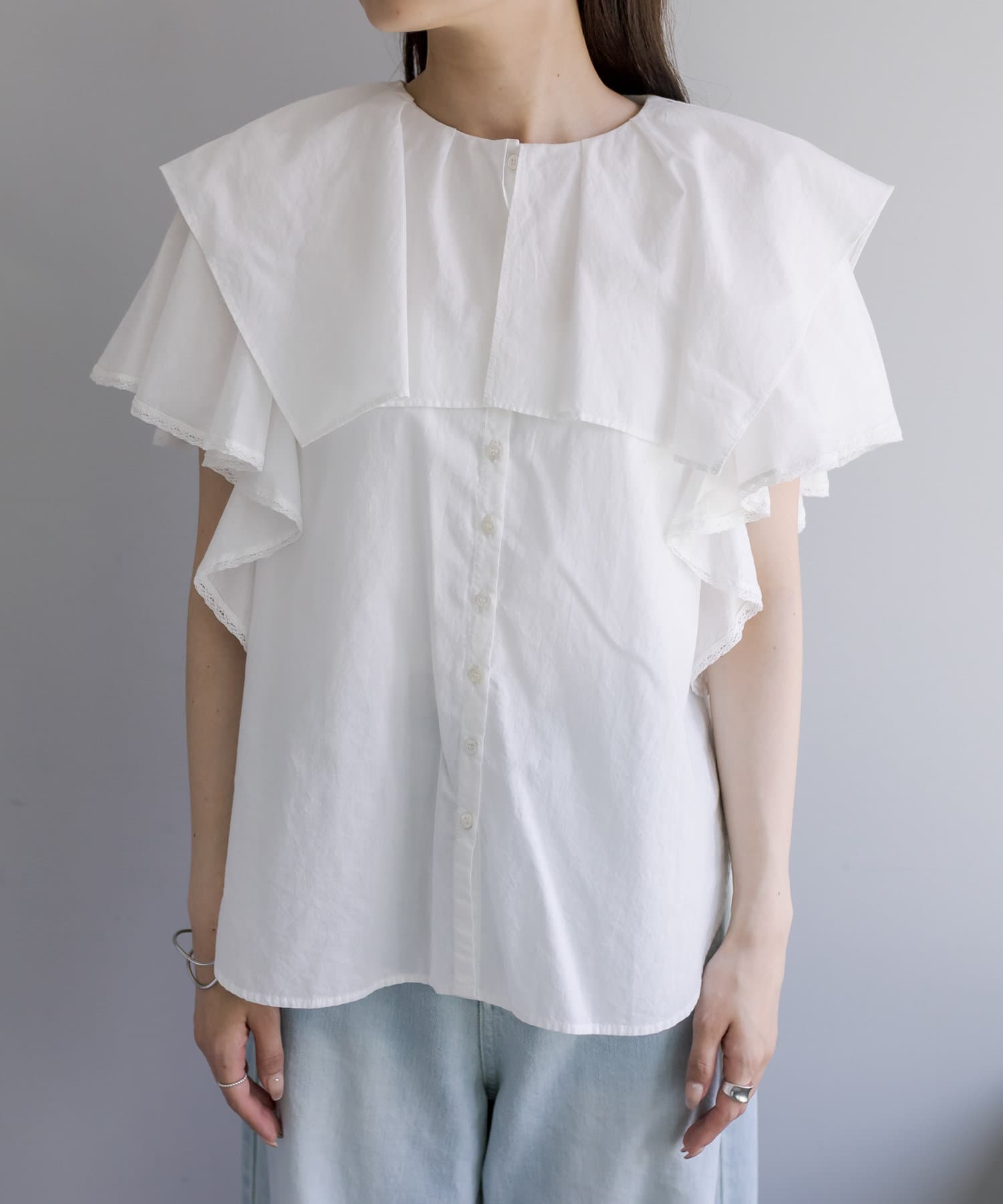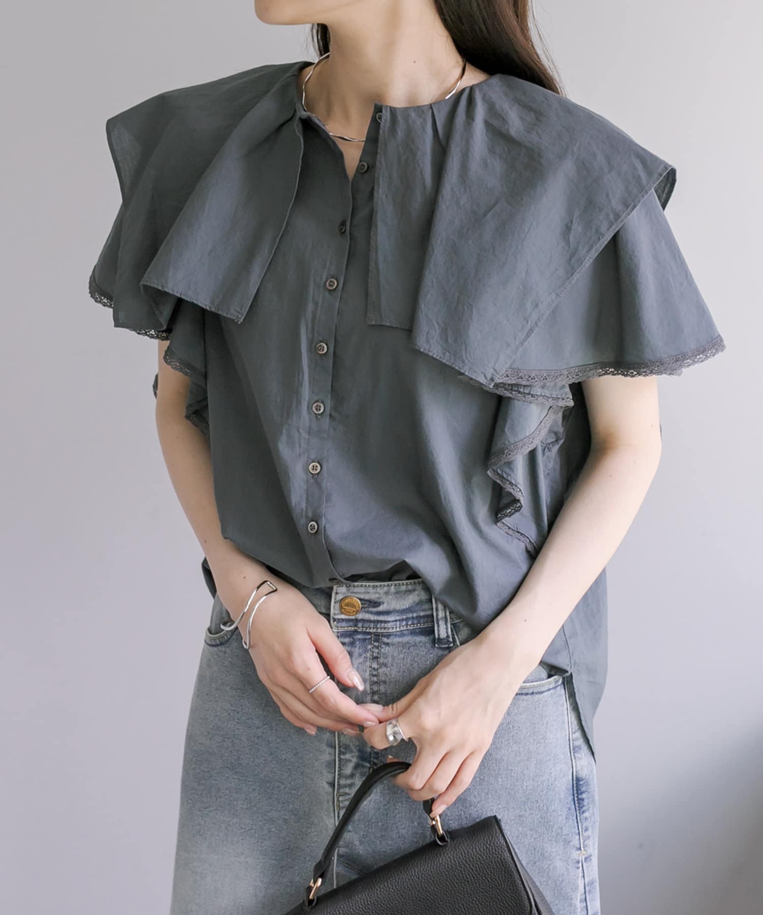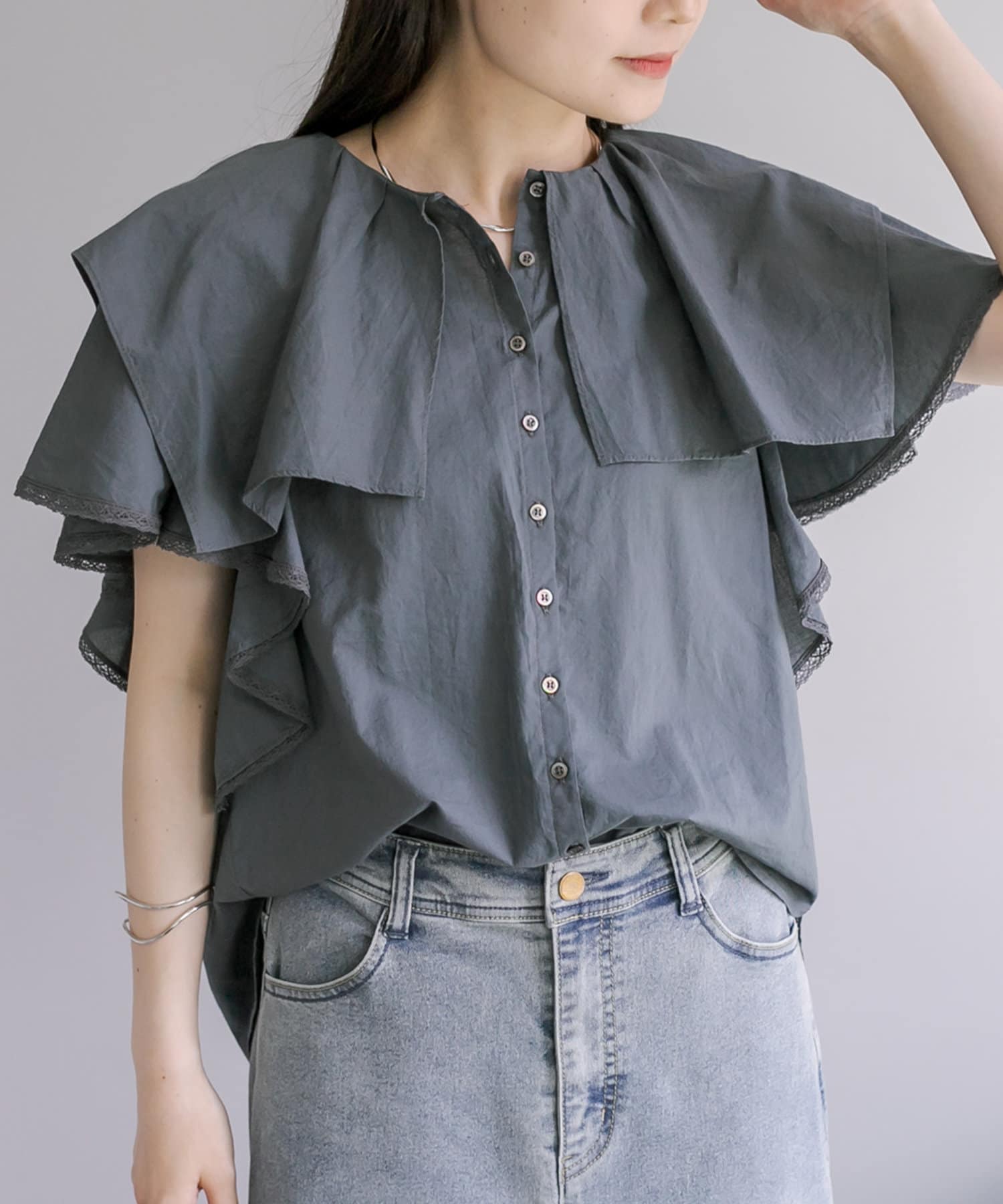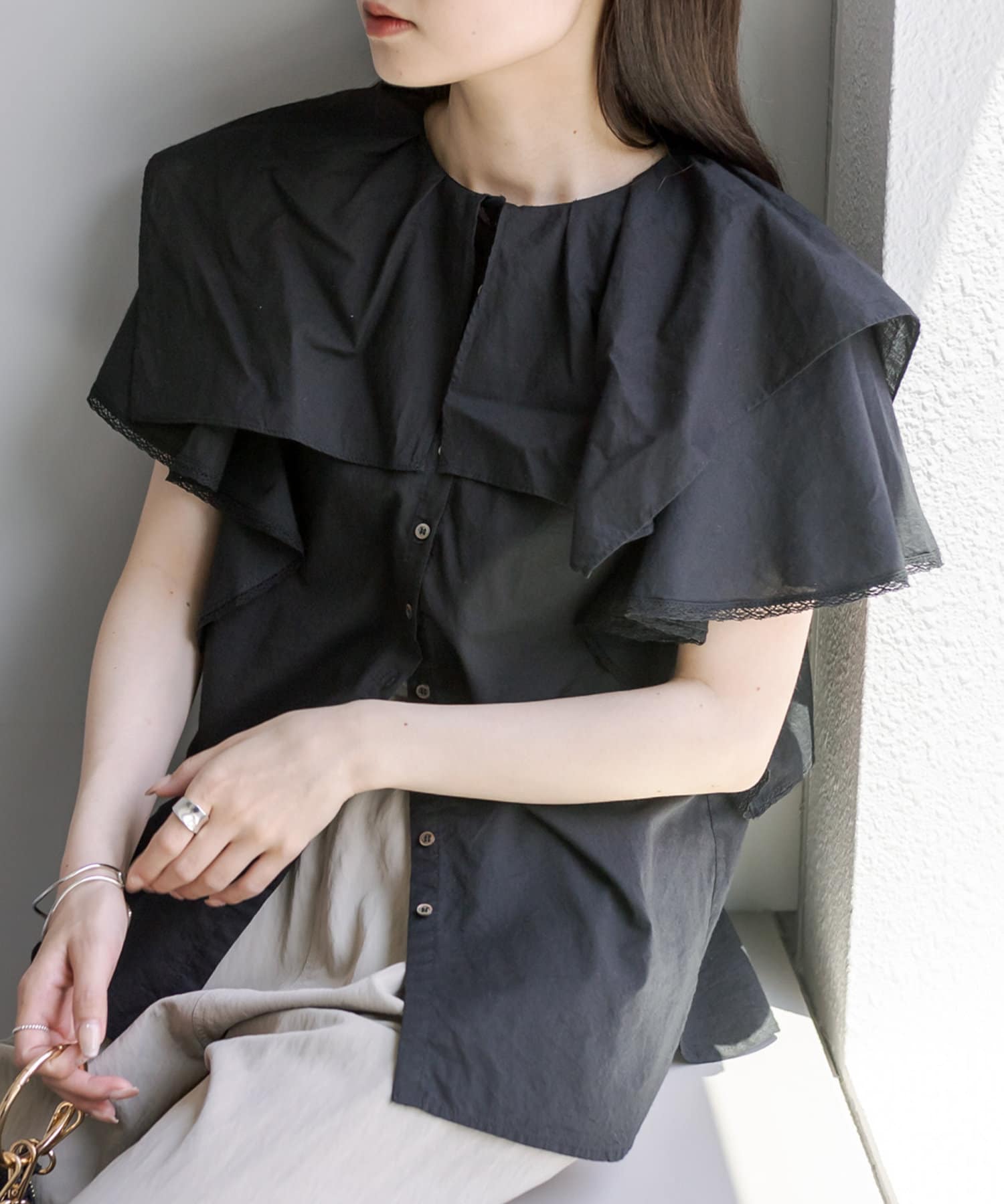 ◇1枚で決まる存在感のあるラッフル襟レースブラウス◇