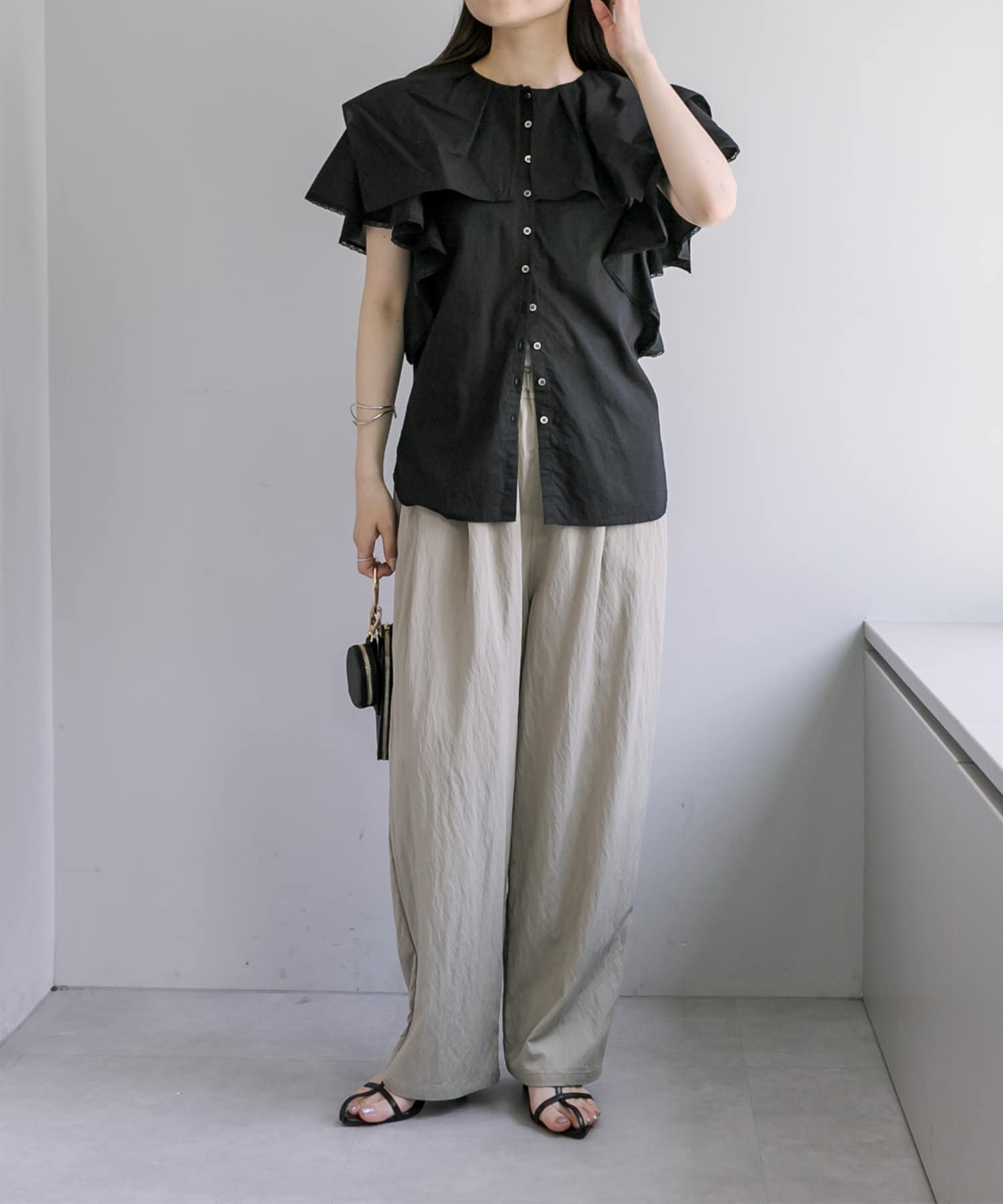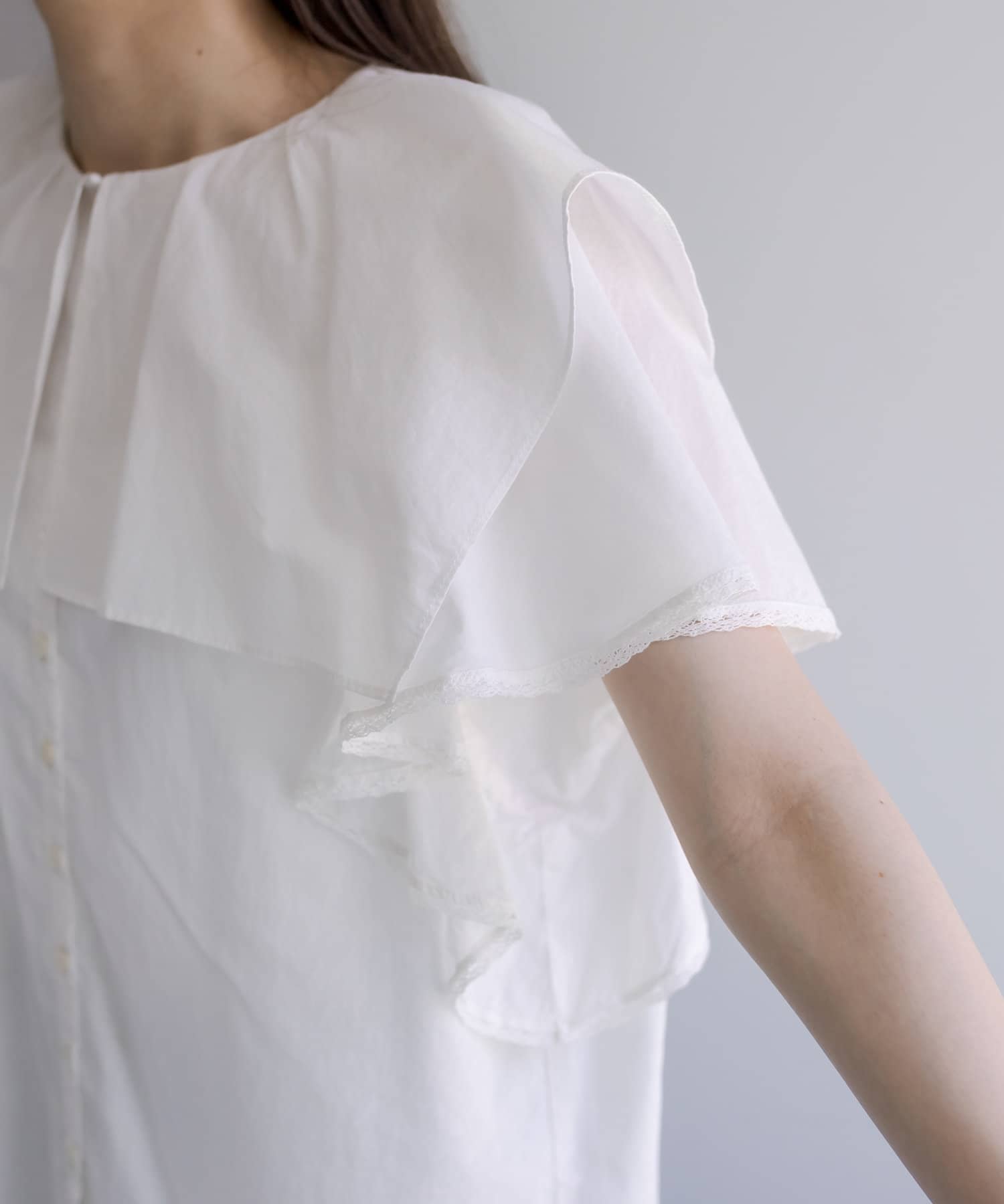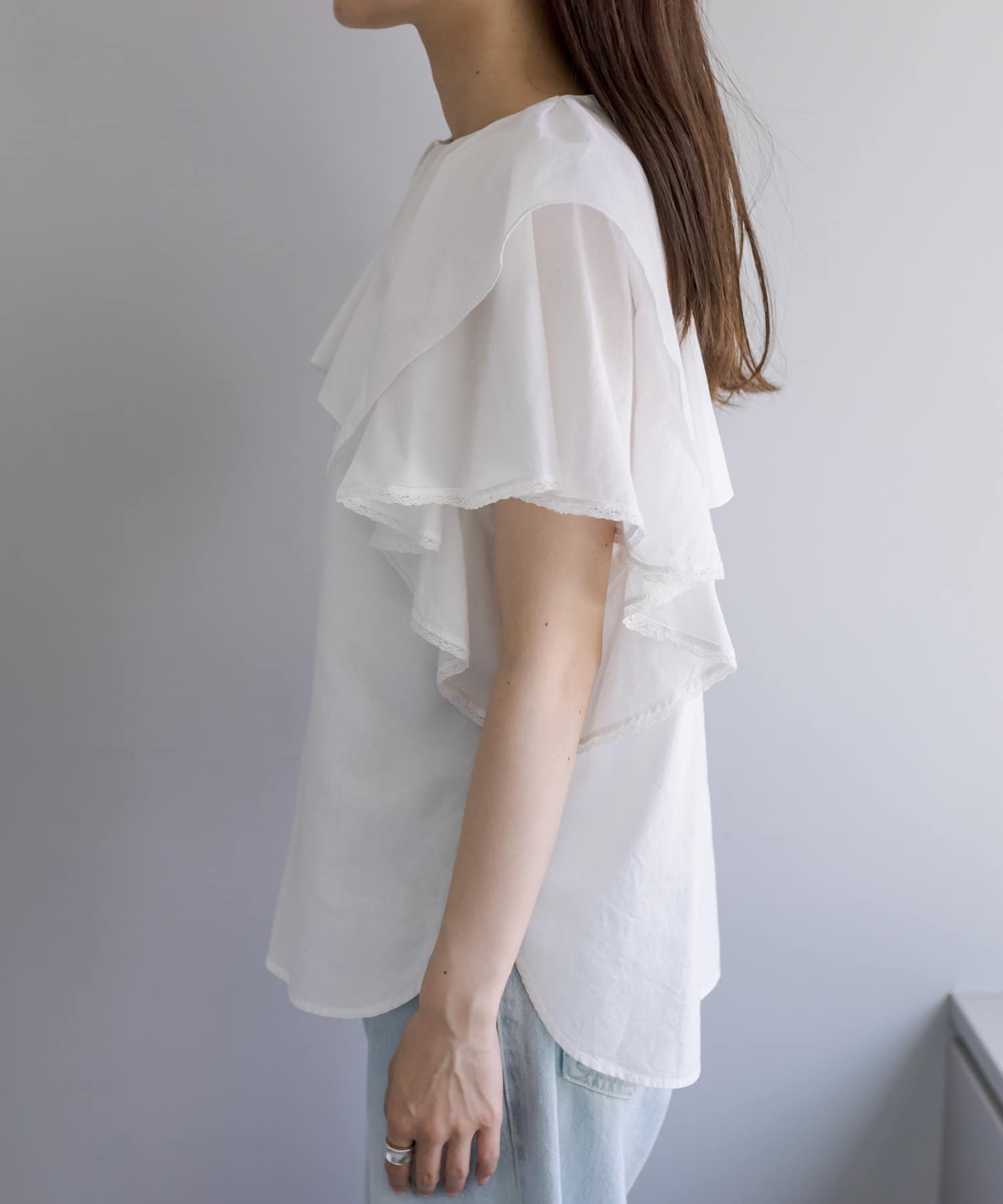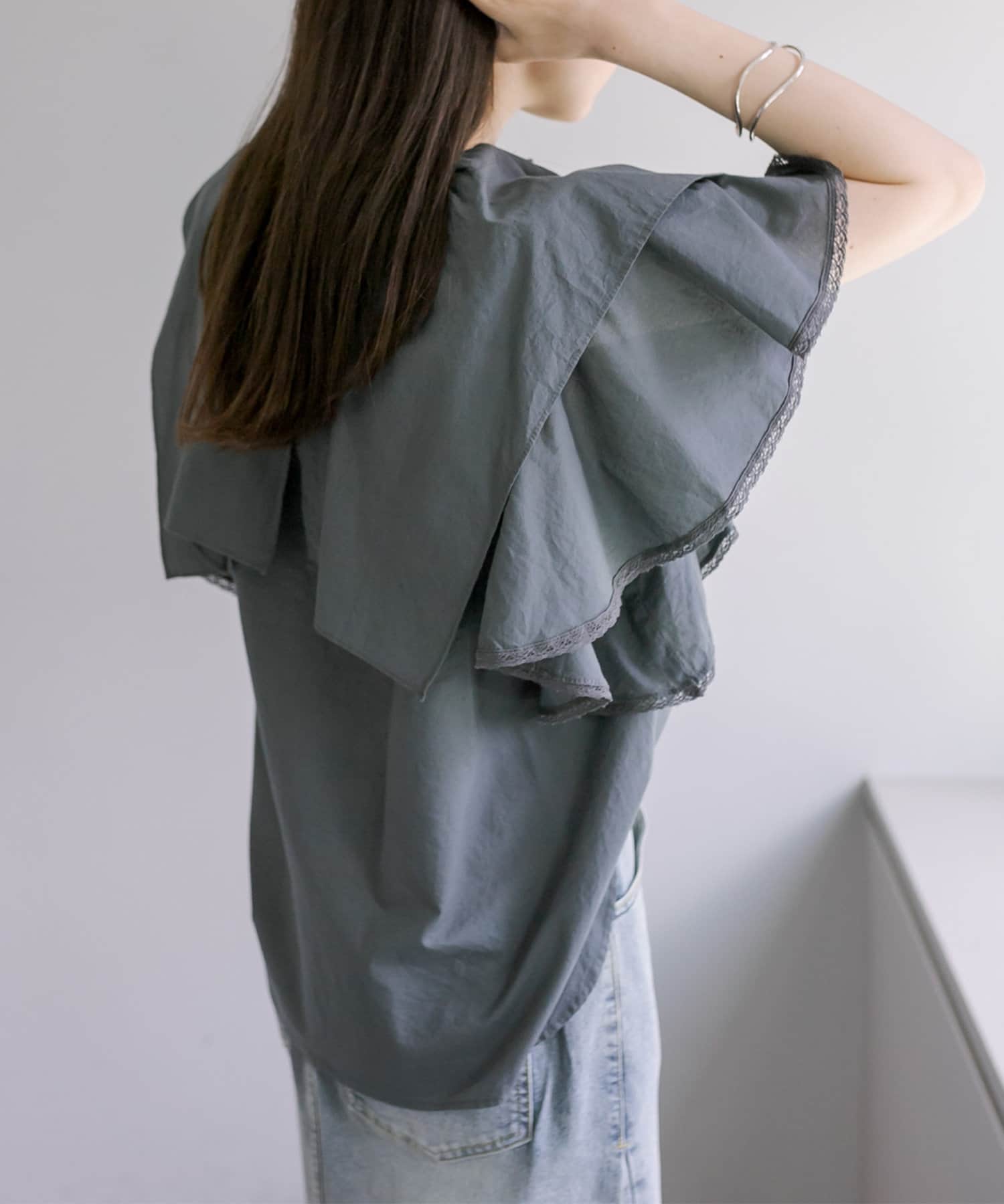 立体感を演出するフレア袖には繊細なレースを施し女性らしさを加速。気になる二の腕カバーも叶います。