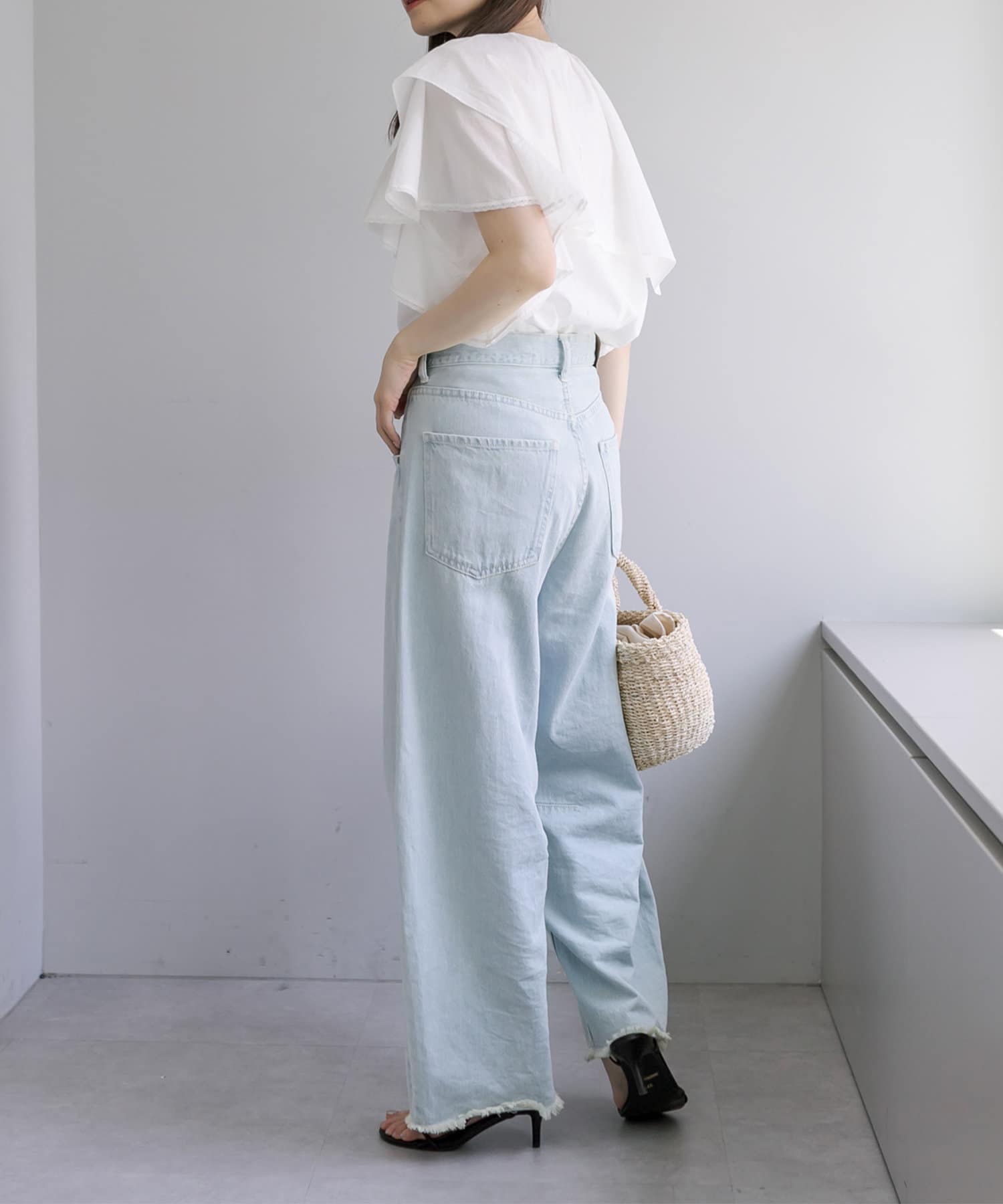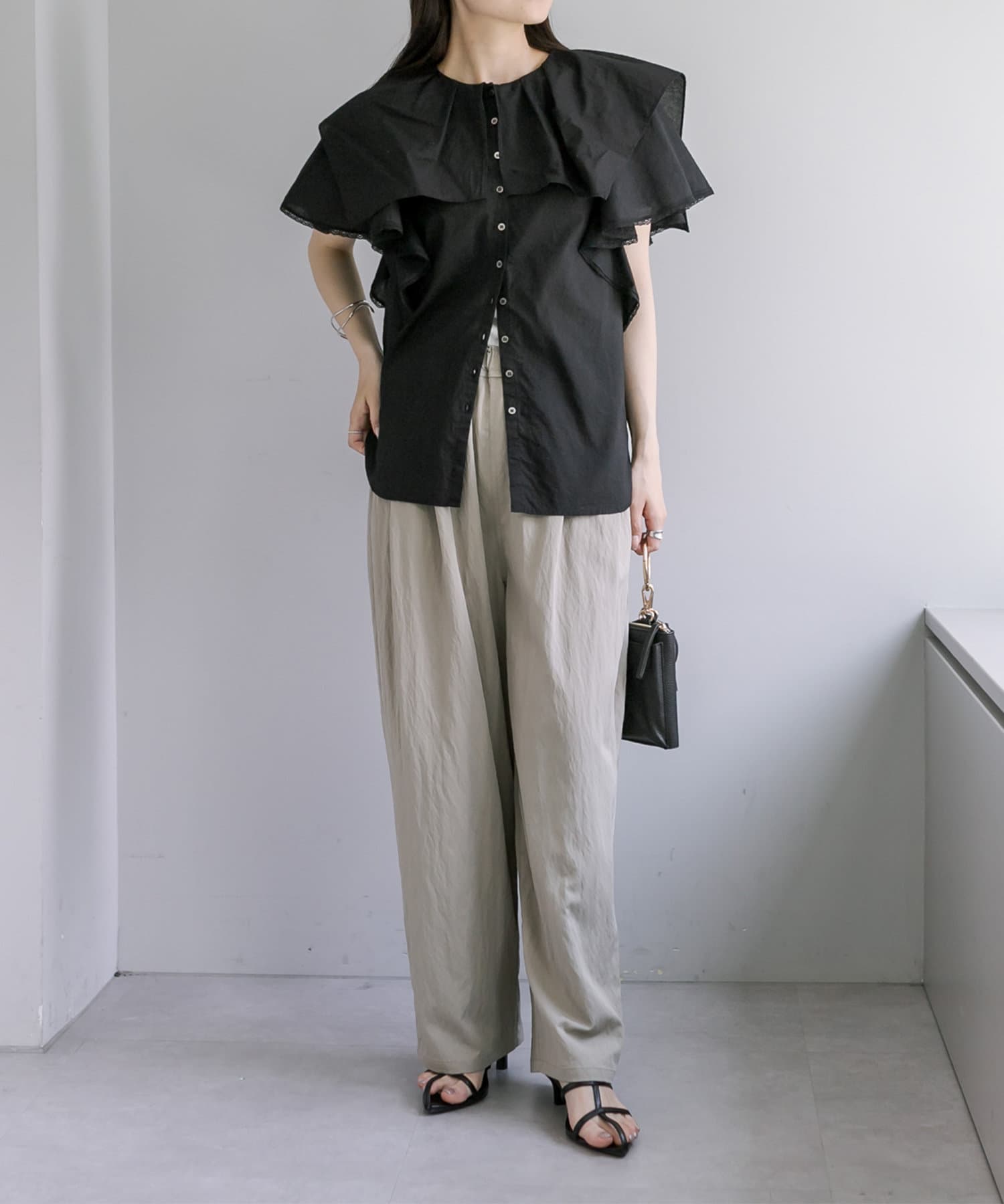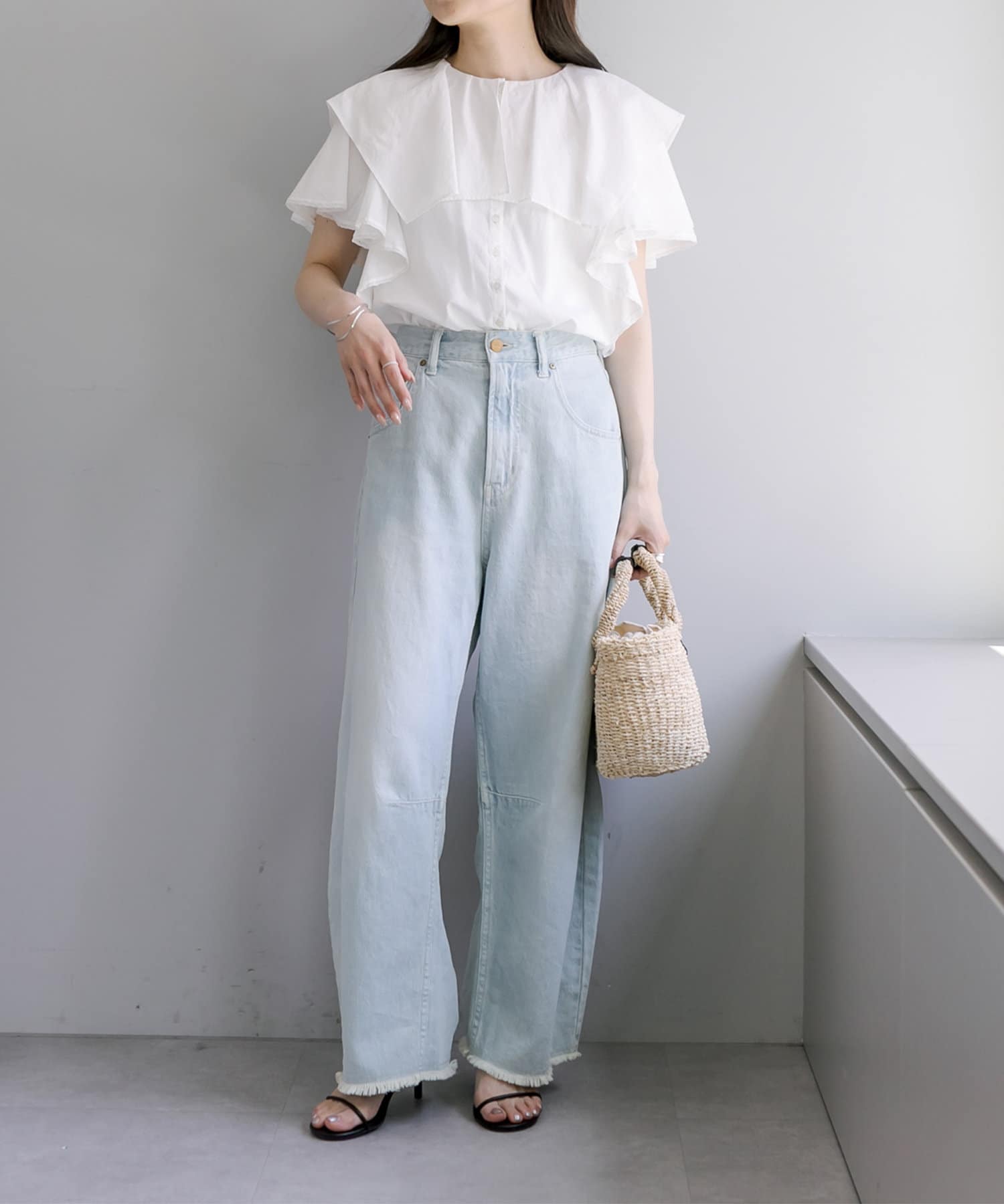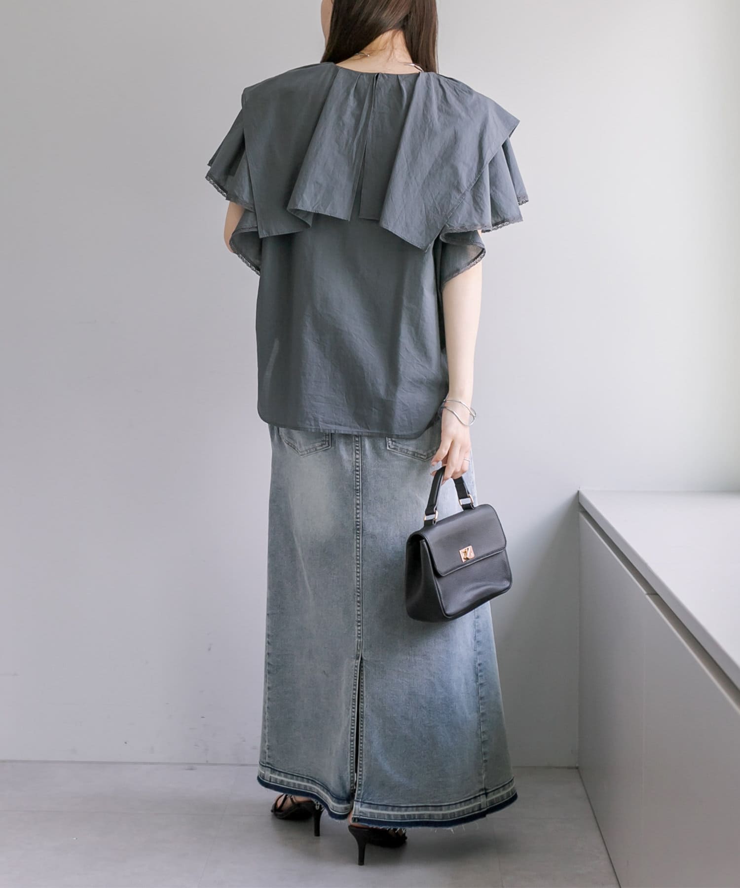 立体感を演出するフレア袖には繊細なレースを施し女性らしさを加速。気になる二の腕カバーも叶います。