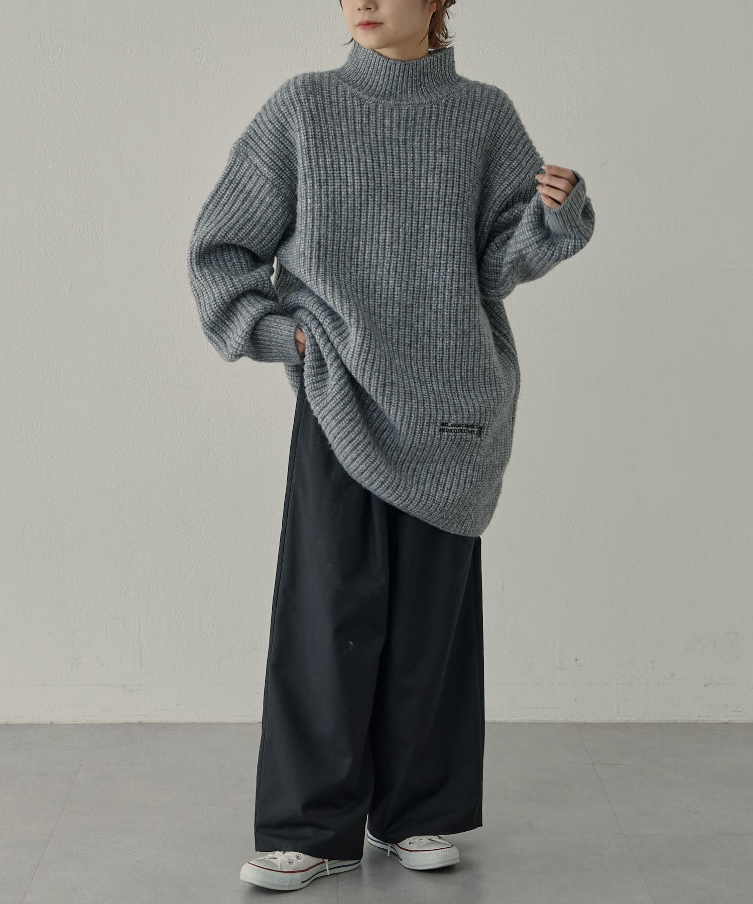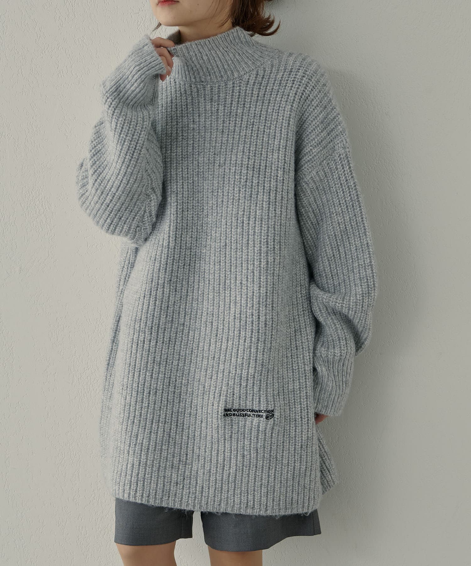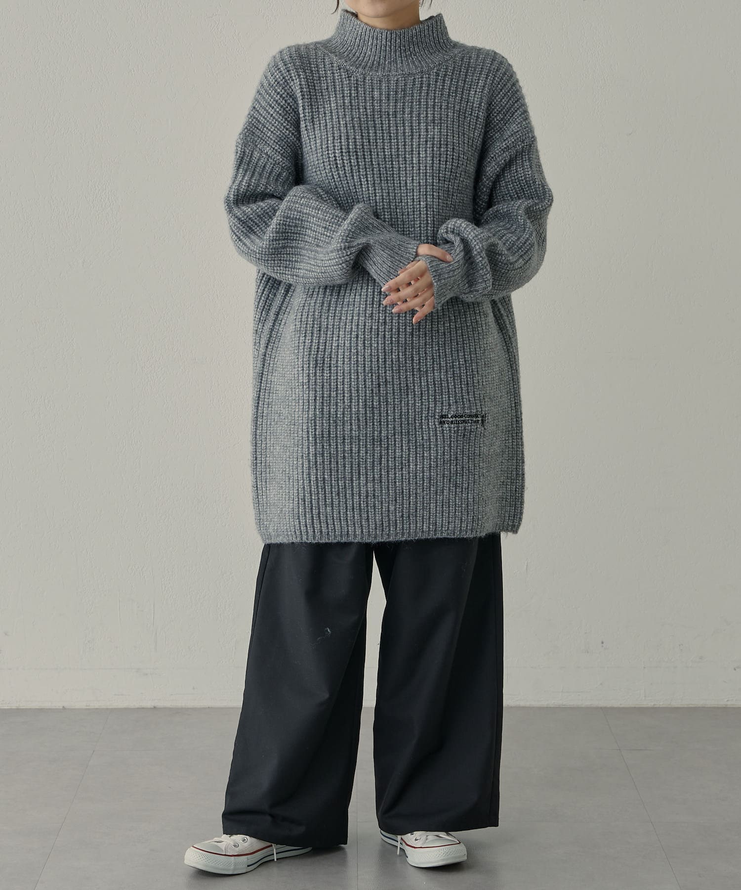 【F&B】リサイクルポリエステルハイネック畦ニットチュニック