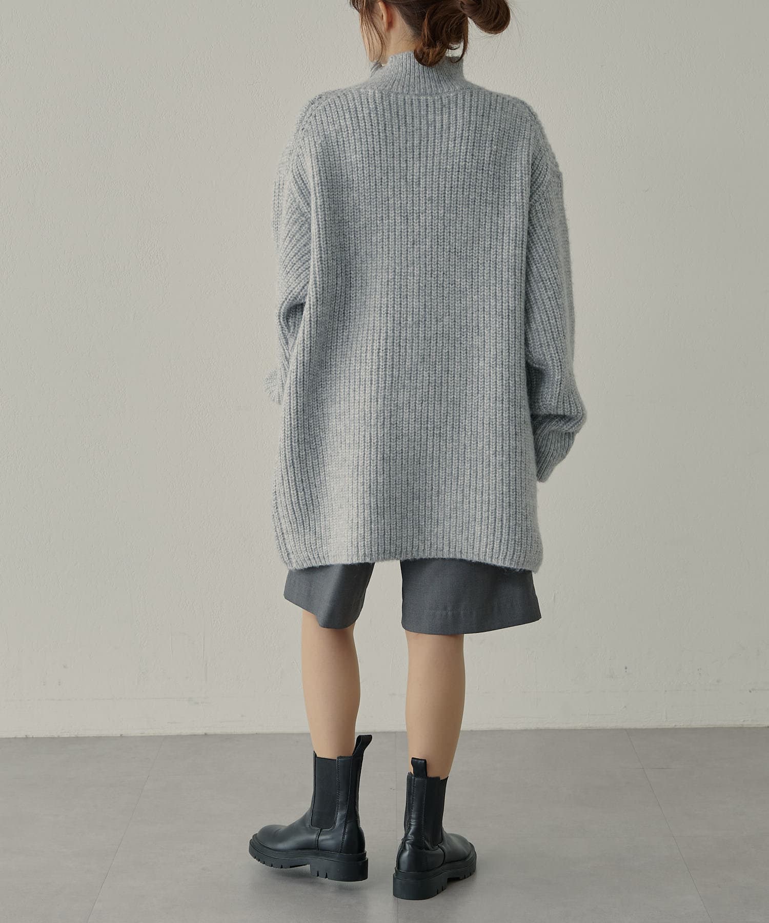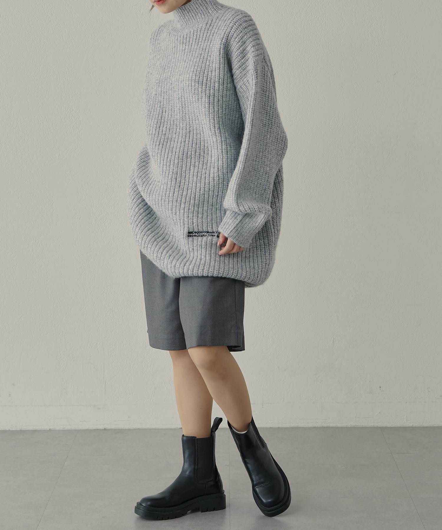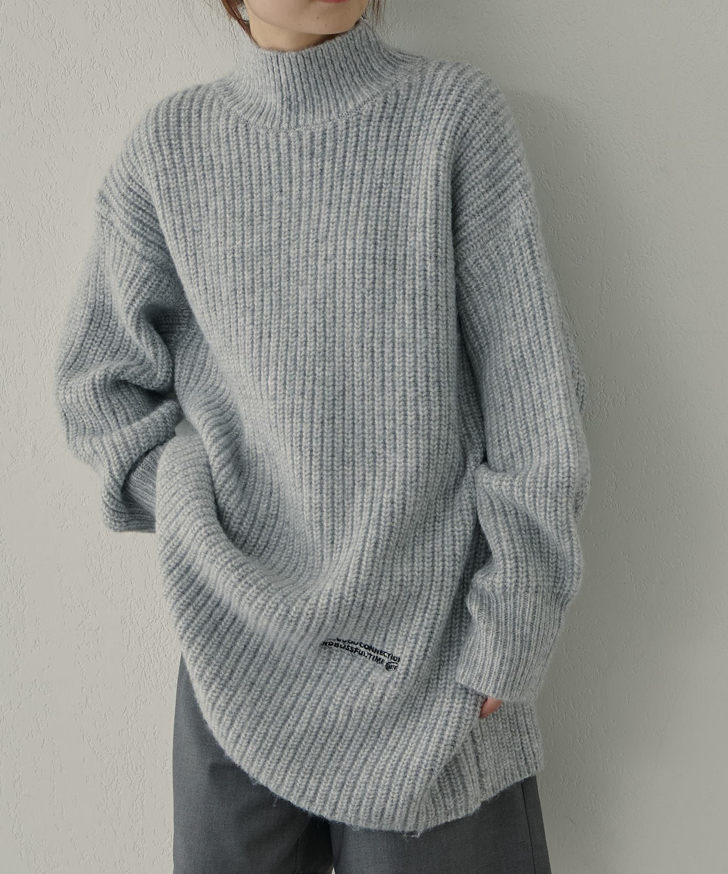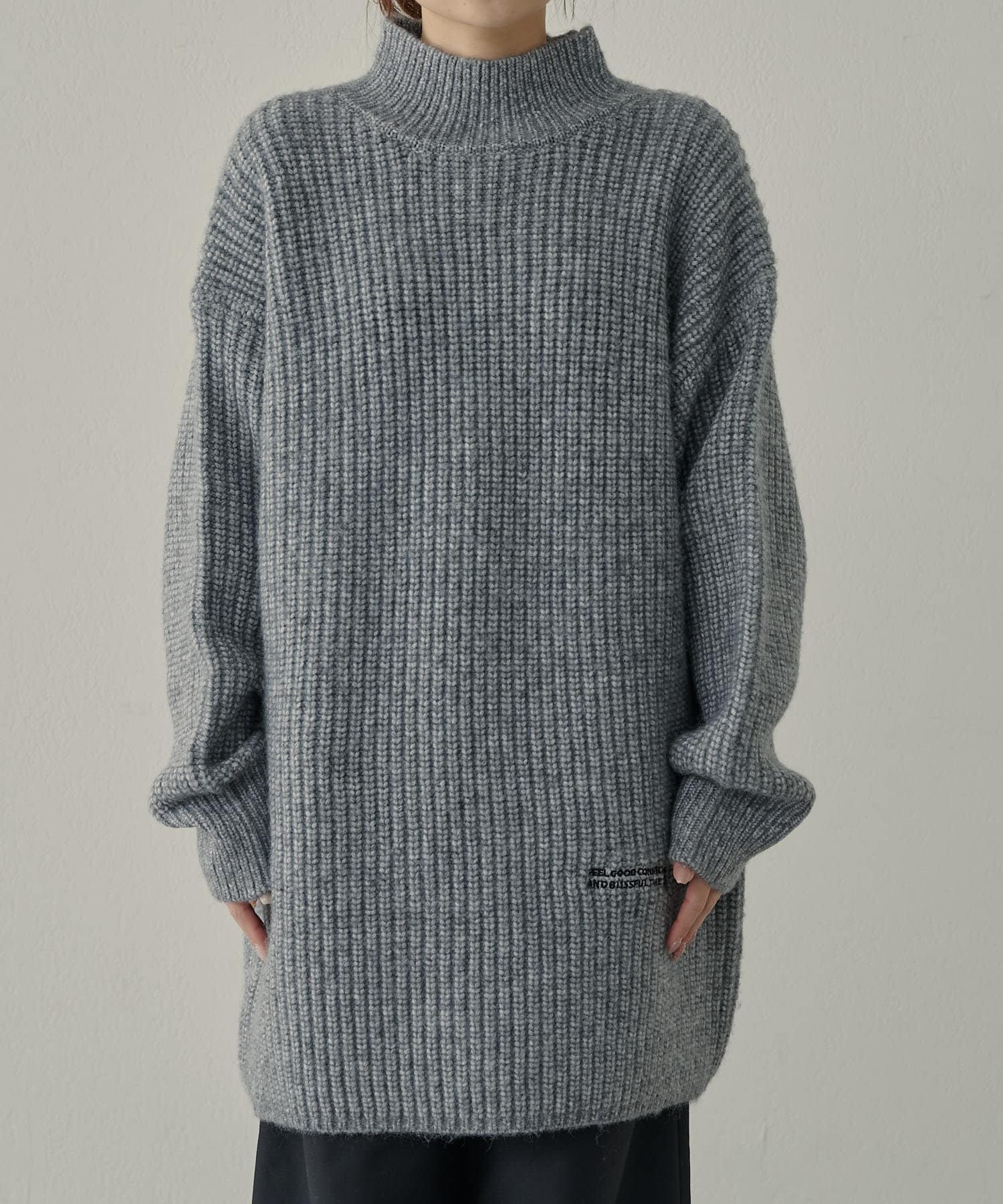 【F&B】リサイクルポリエステルハイネック畦ニットチュニック