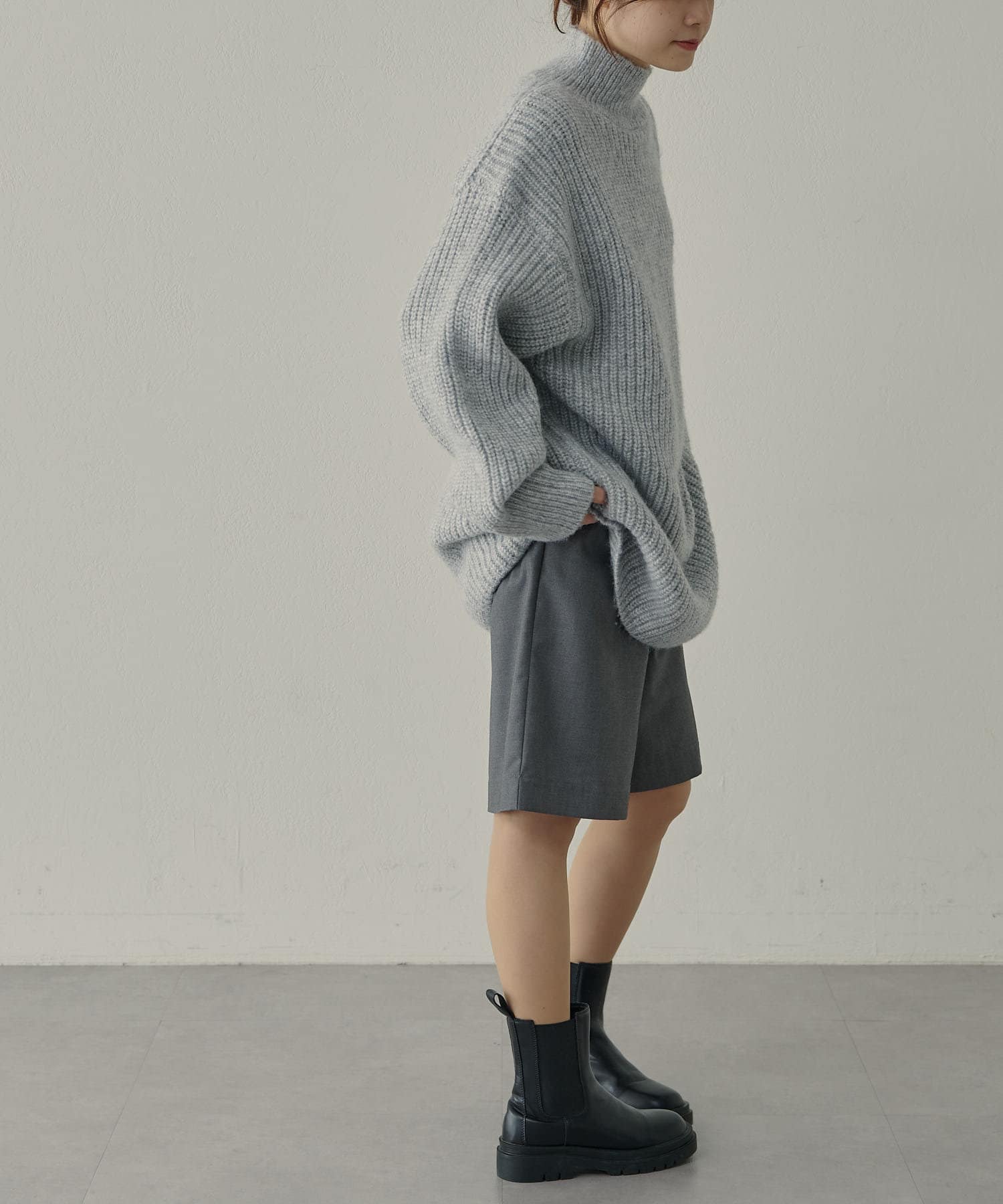 杢調の柔らかなミックスカラーが独特な表情を演出する畦編みニット。