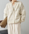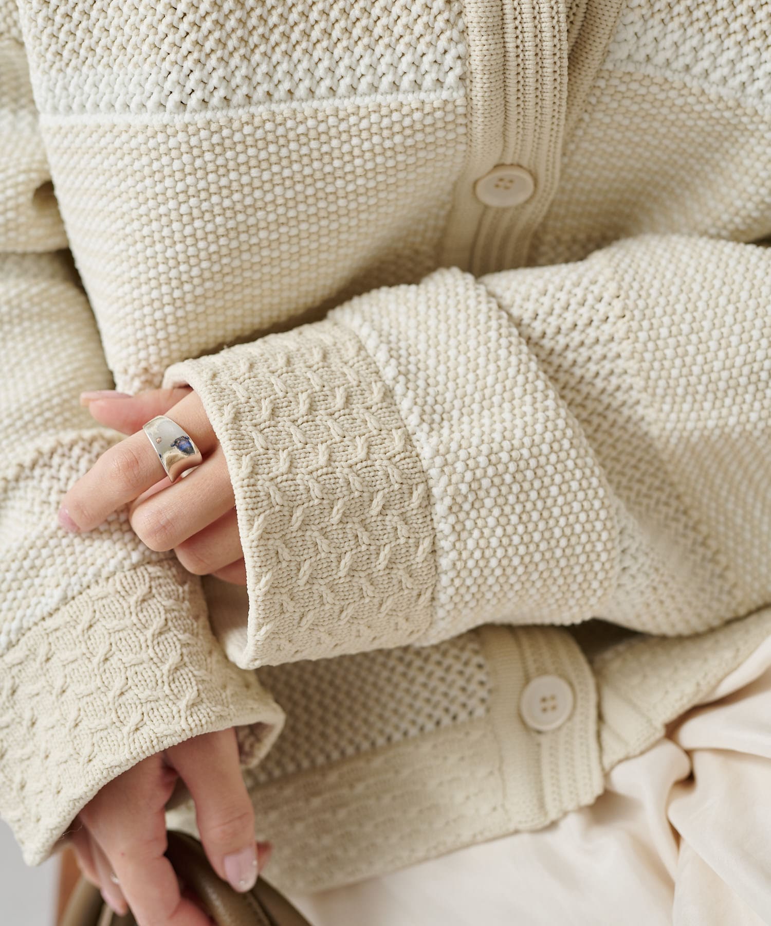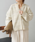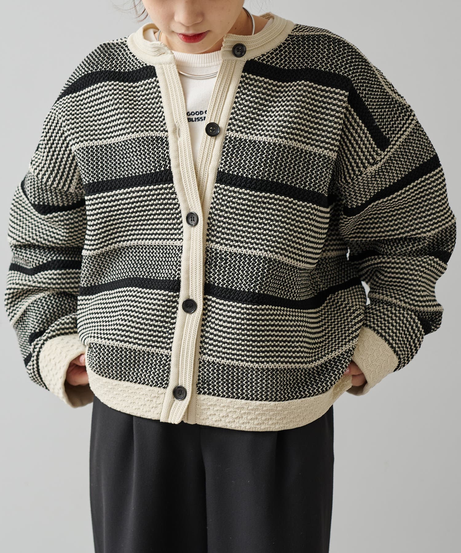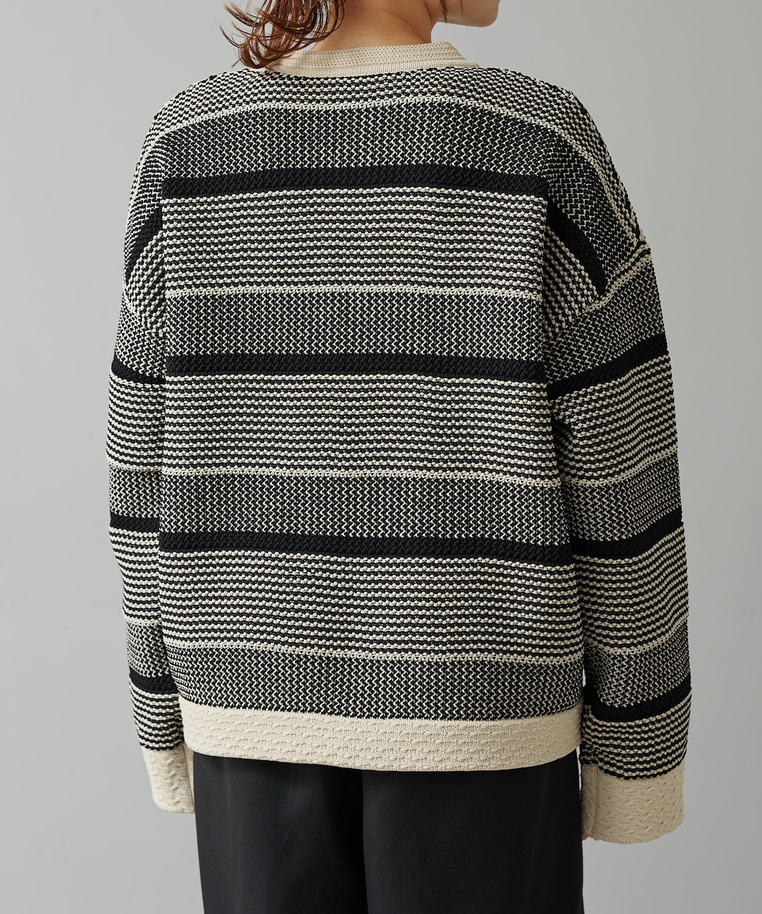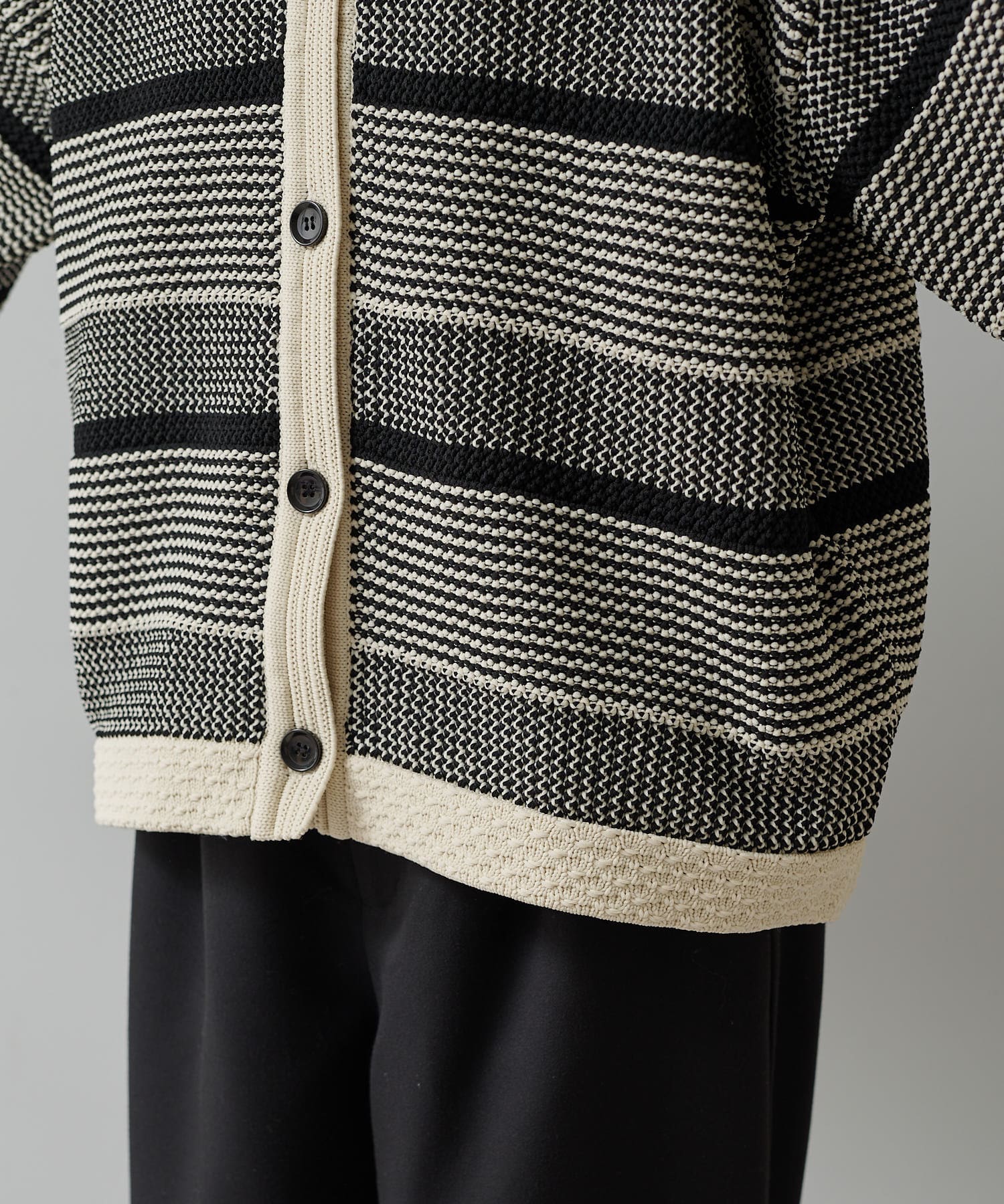 オーバーシルエットに表情豊かなミックスジャガードが存在感抜群なカーディガン。