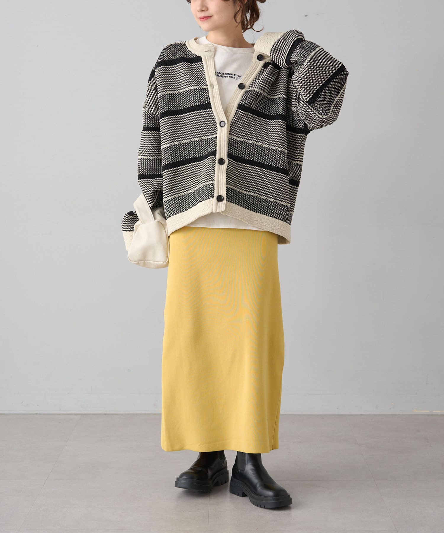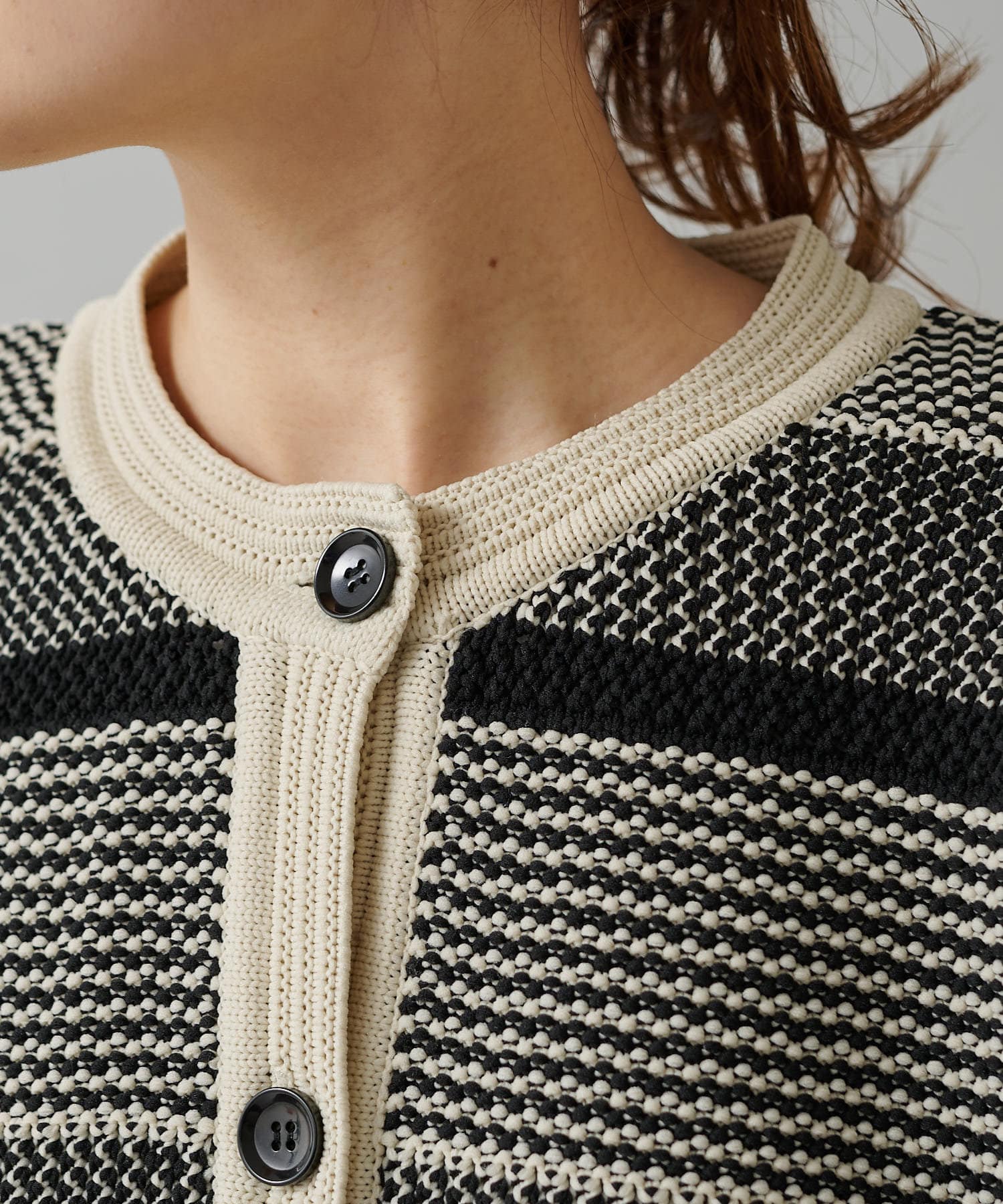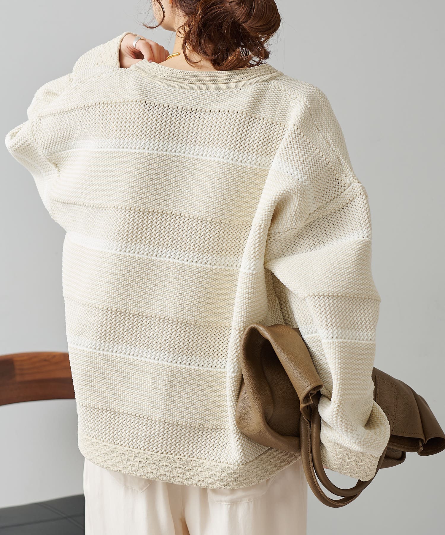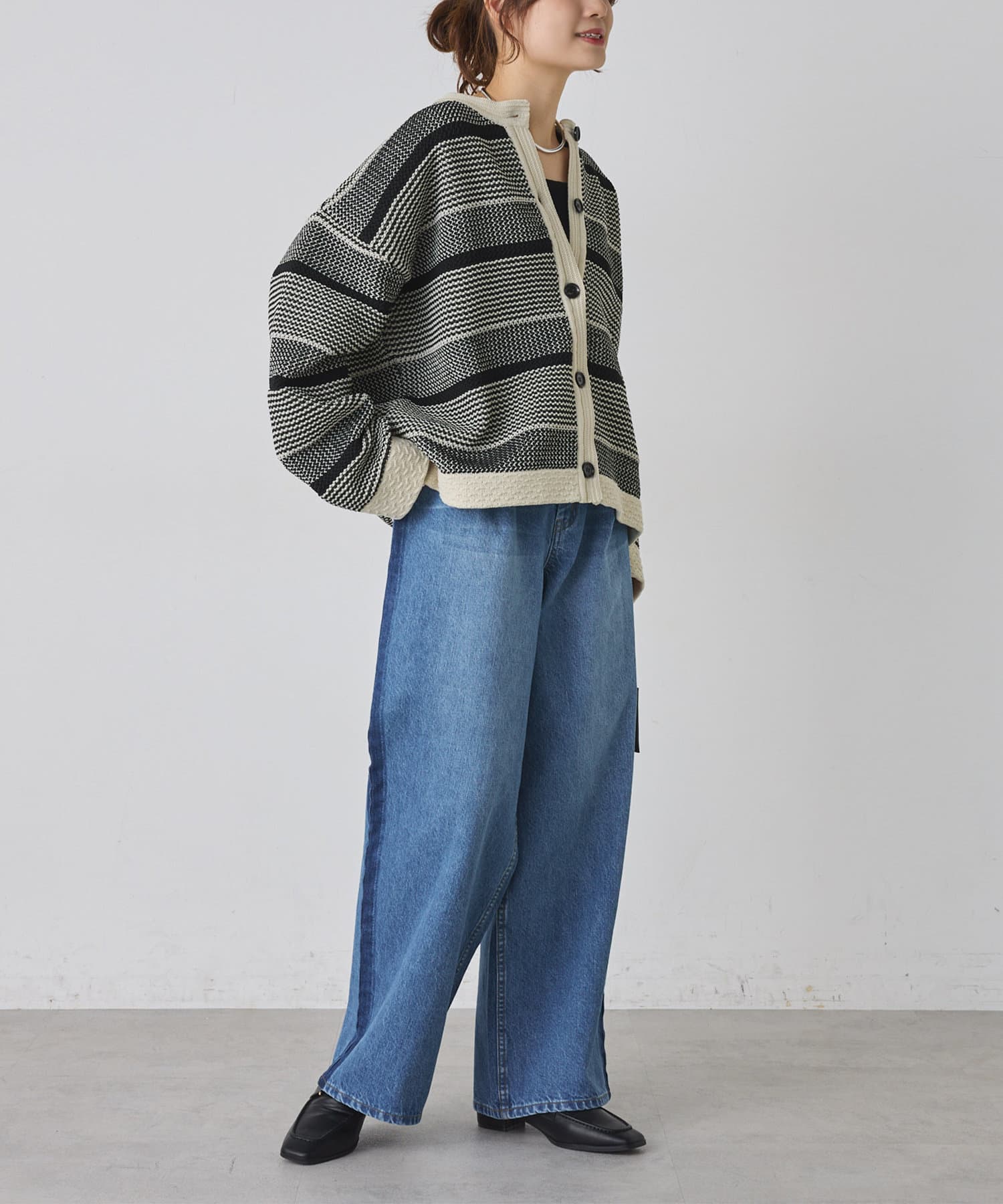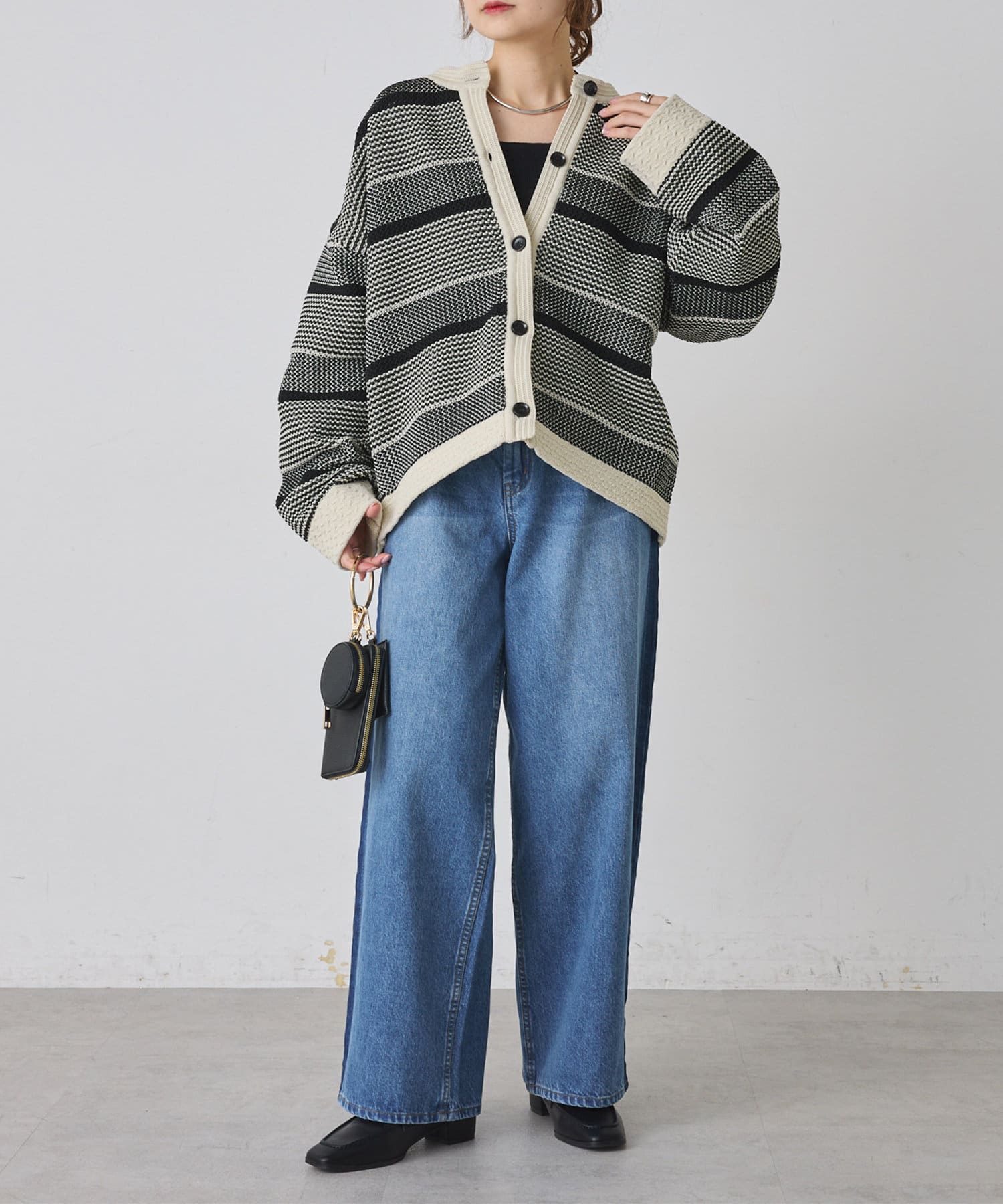 オーバーシルエットに表情豊かなミックスジャガードが存在感抜群なカーディガン。