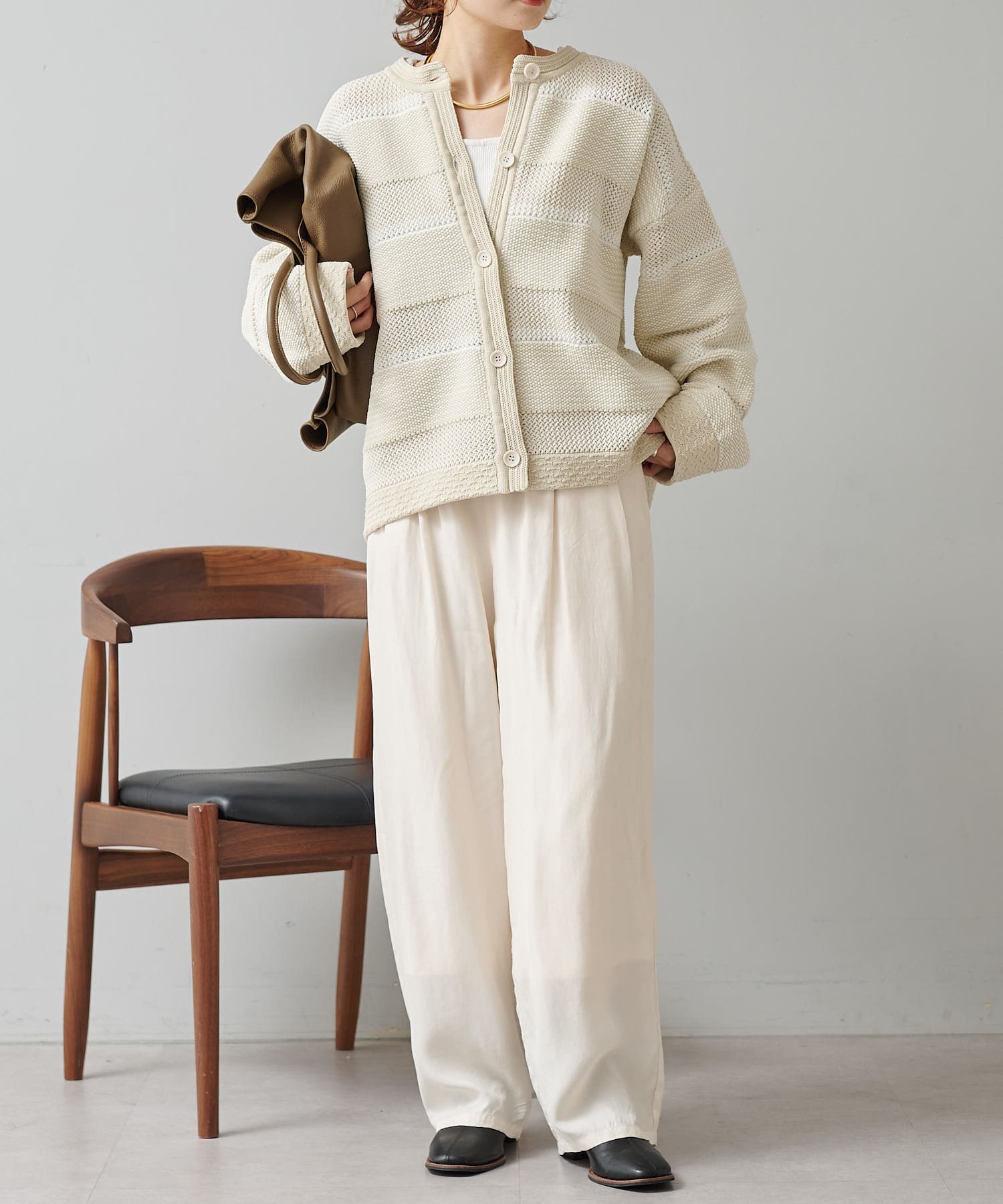アイボリー×オフ/アイボリー×ブラックの2色展開。