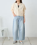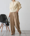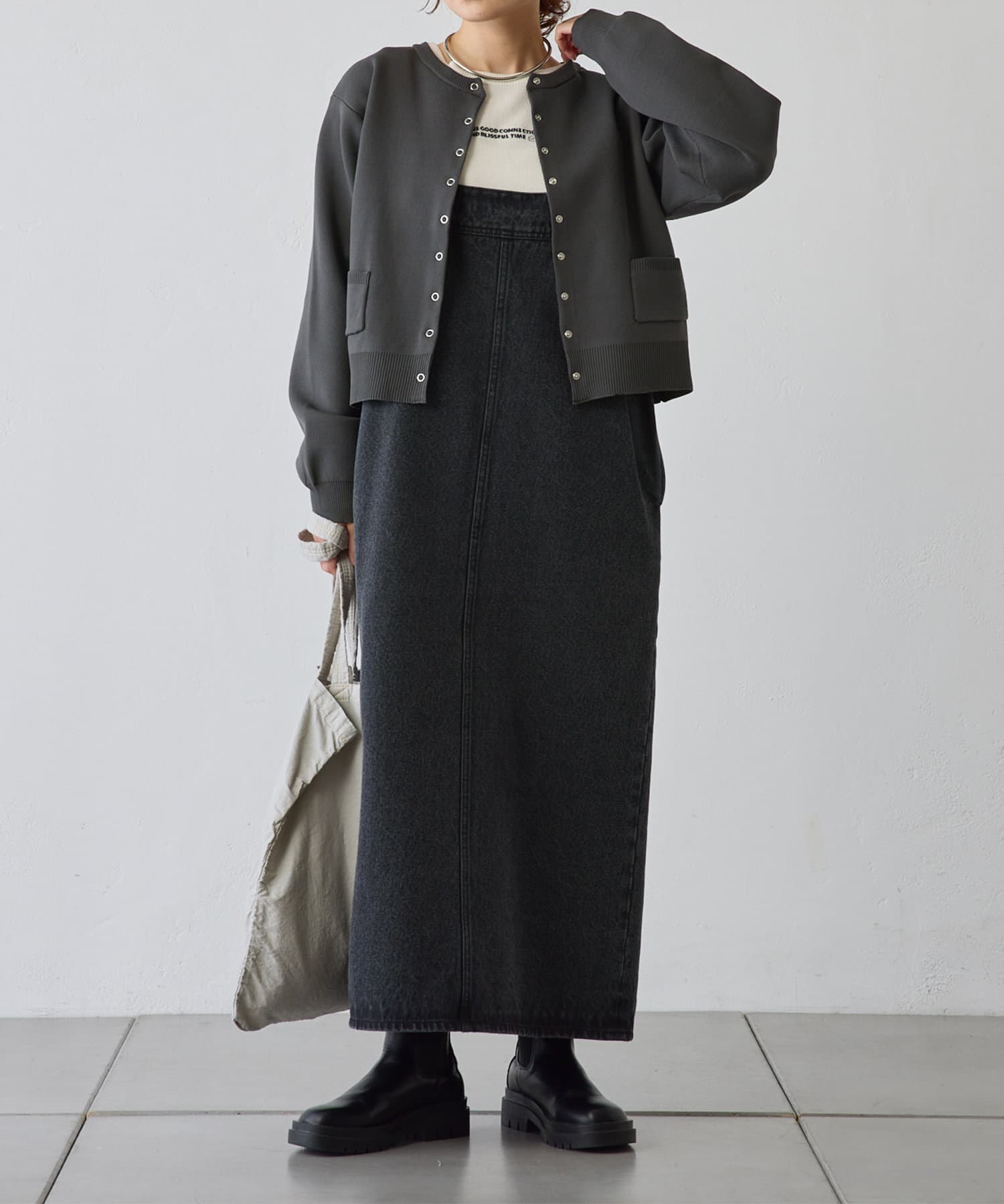 スッキリとした着丈なので、タックインもアウトもしやすく、パンツ、スカート、ワンピースとアイテムを選びません。