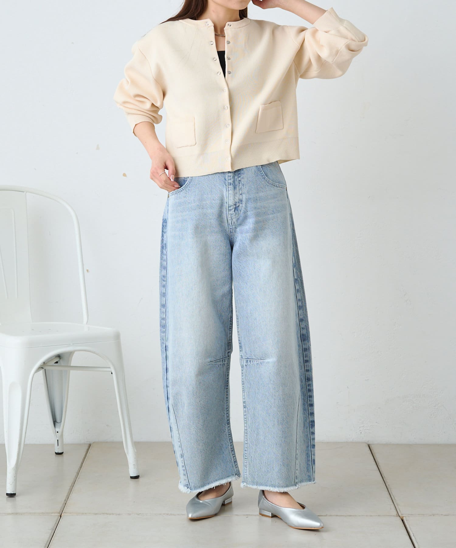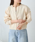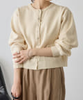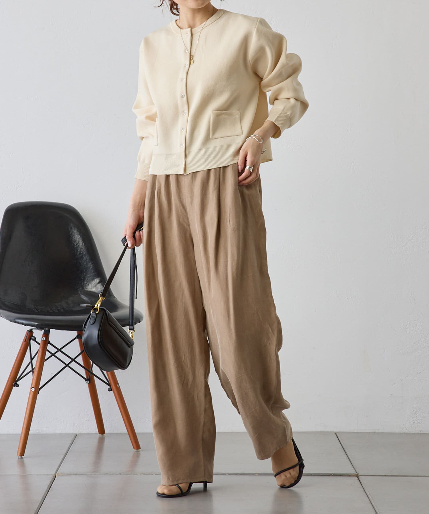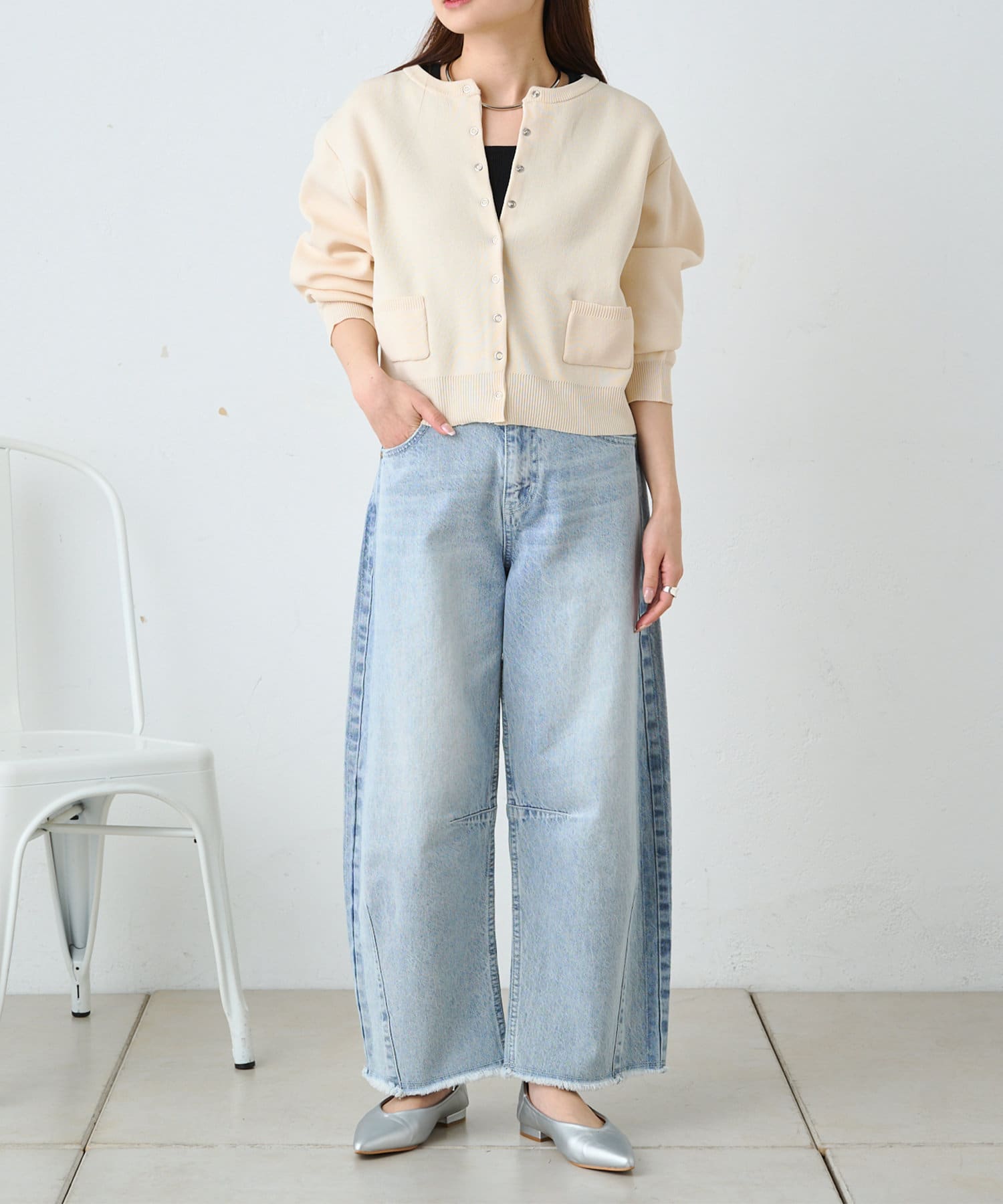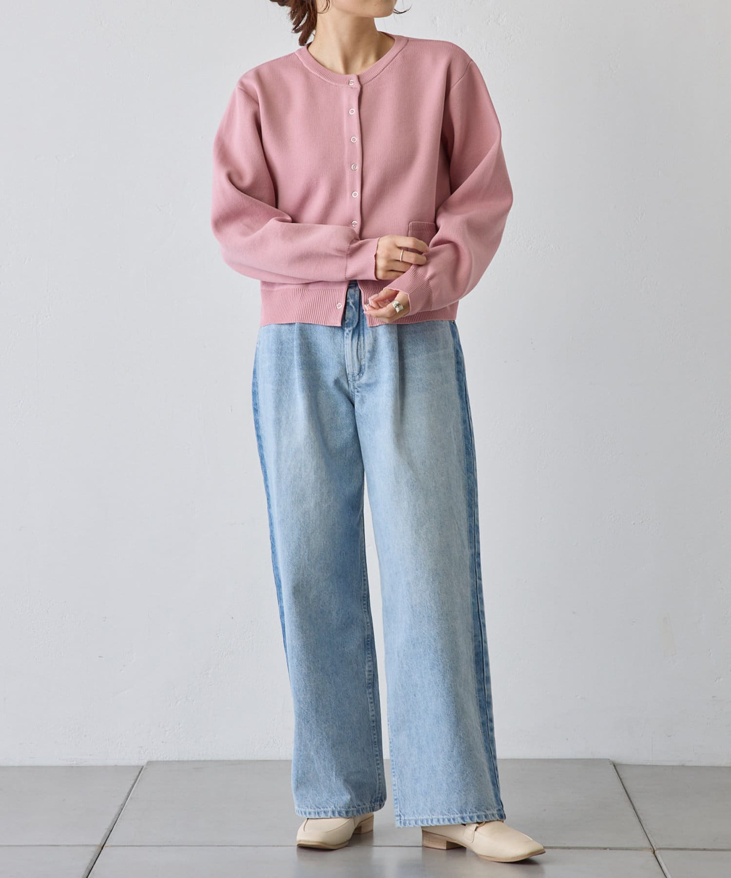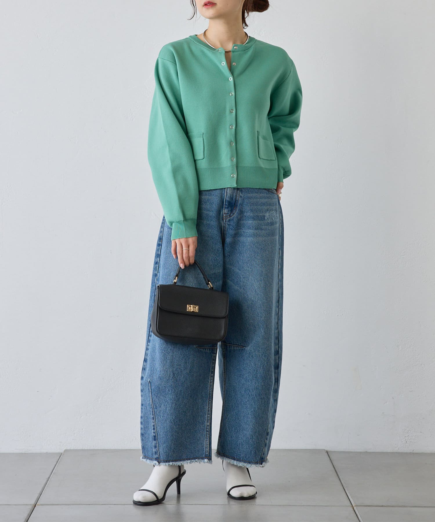 リングドットボタンとミニポケットがさりげないアクセントで目を惹くカーディガン。