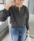 ボタンを閉じて一枚で、第一ボタンを開けて抜け感を与えたり、前開きにして羽織としても着回せます。