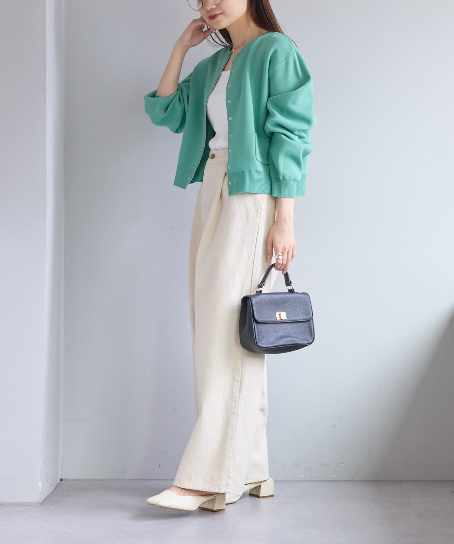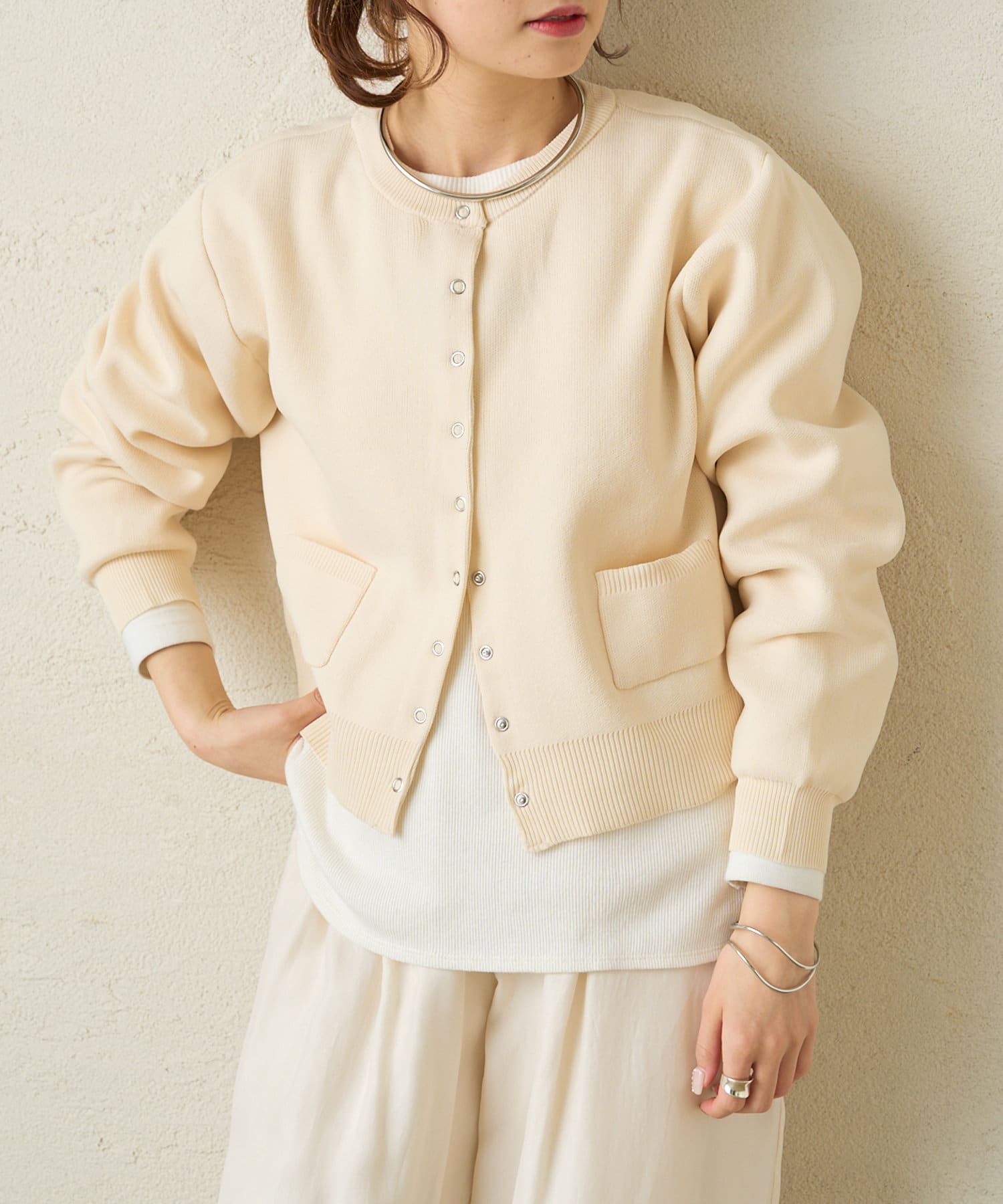 春はカーディガンとして、冬はアウターインに活躍する程よい肉感のニット素材。