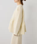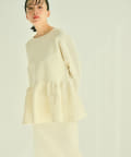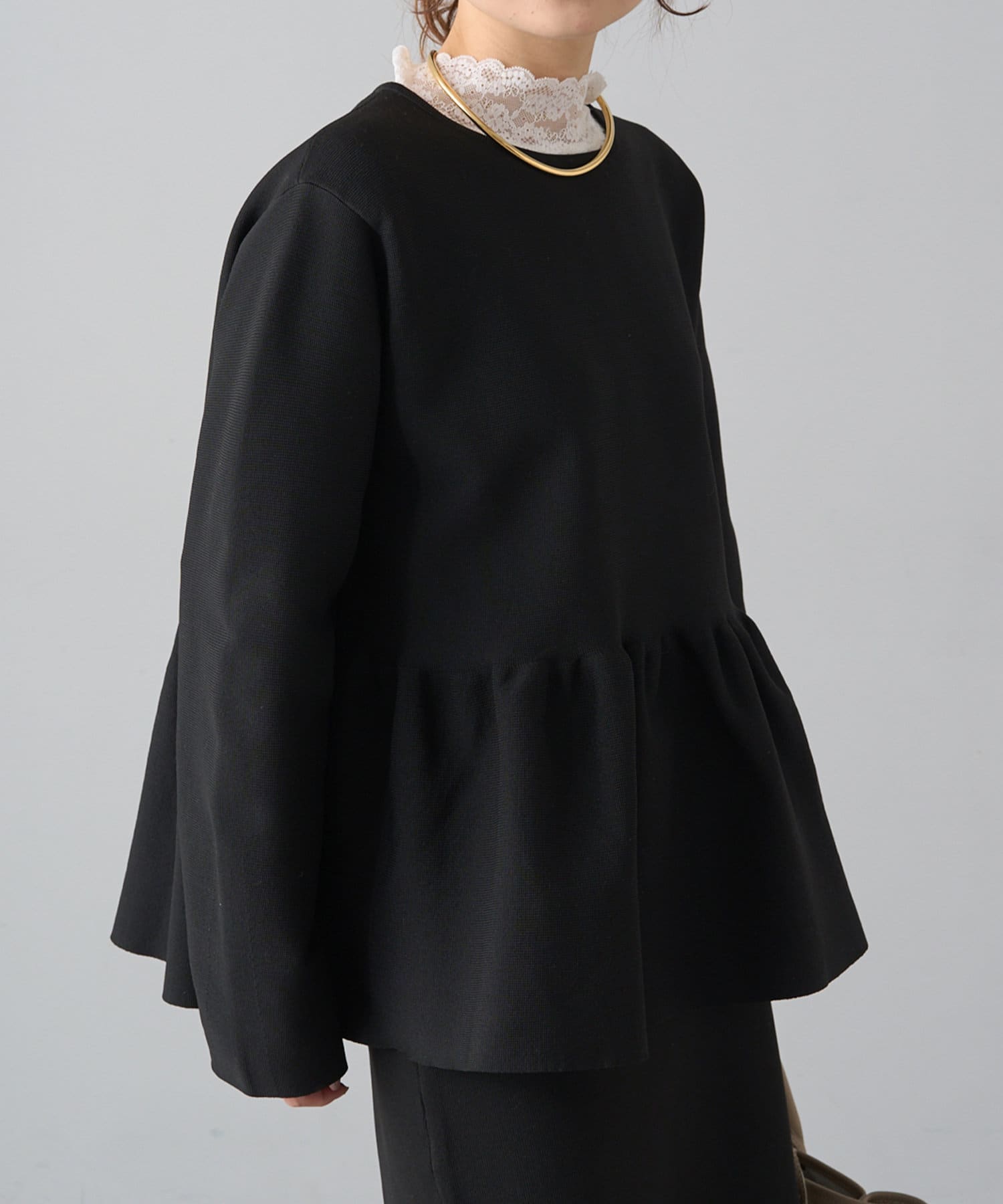 ウエストから裾にかけて立体的に広がるペプラムデザインに、ややボリューム感のある袖が女性らしさを引き立てるシルエットバランスが魅力の一着。
