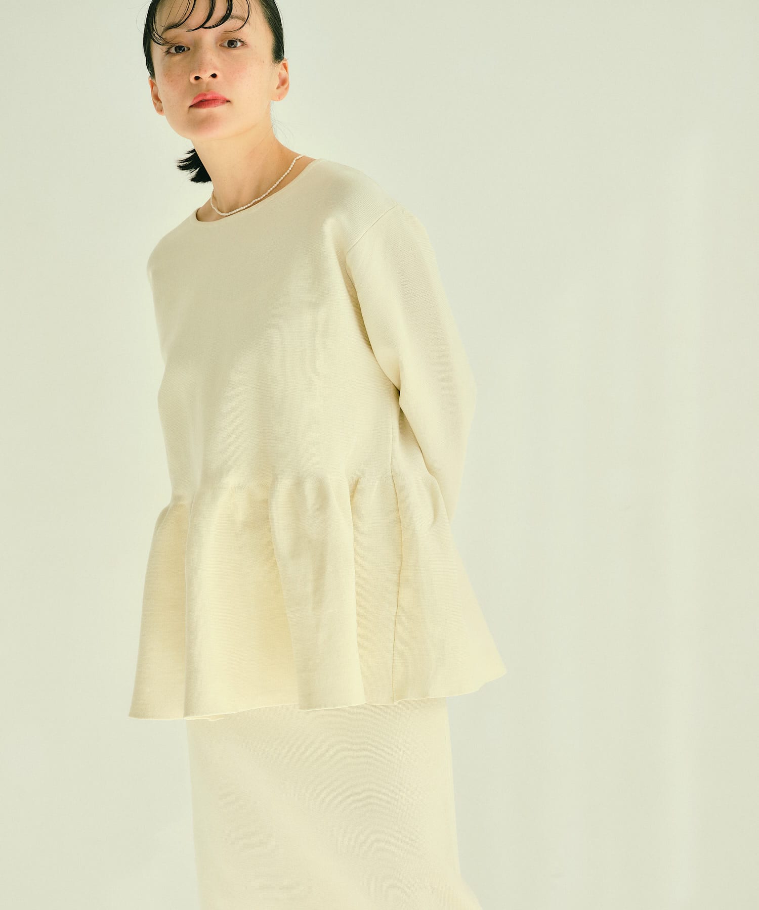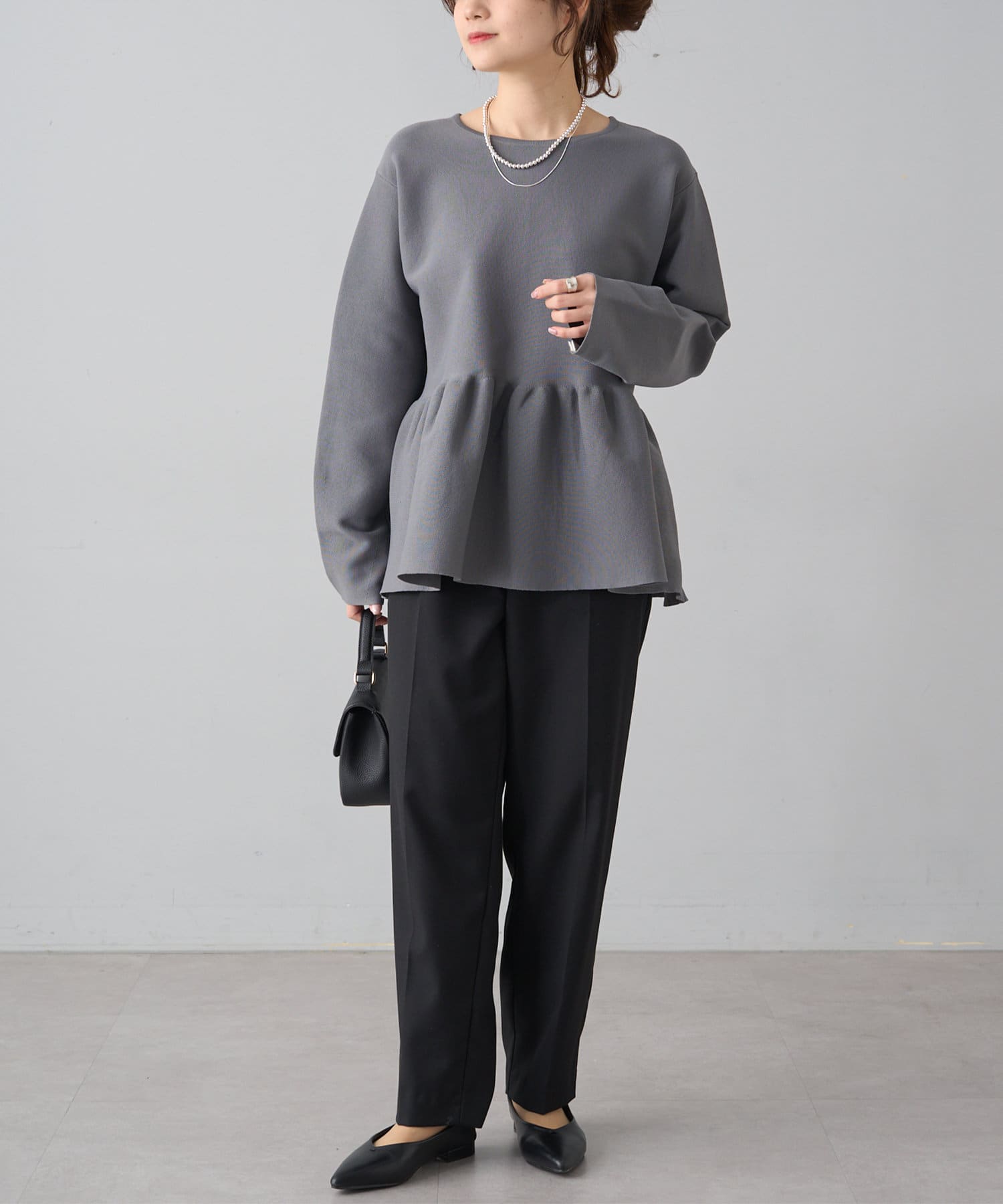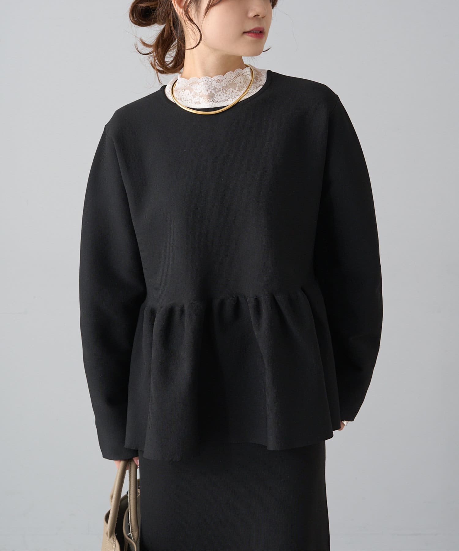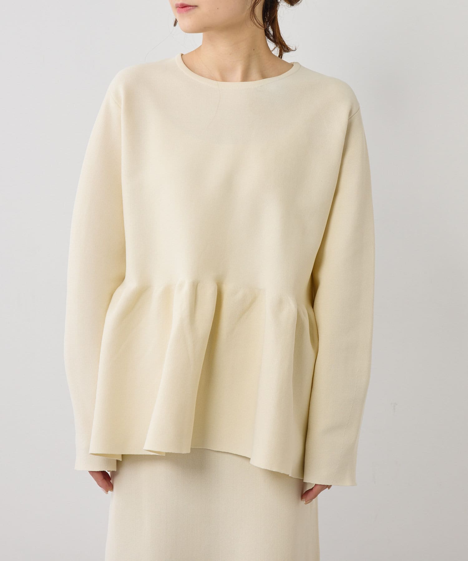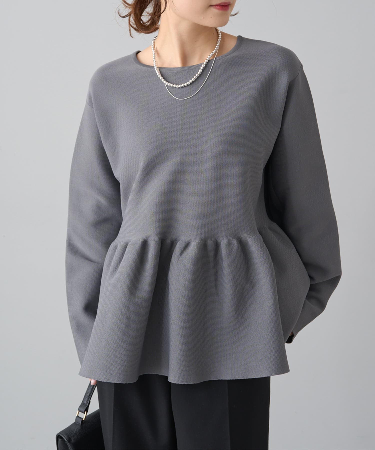 シンプルでなのにシルエットで映えるペプラムニットプルオーバー。
