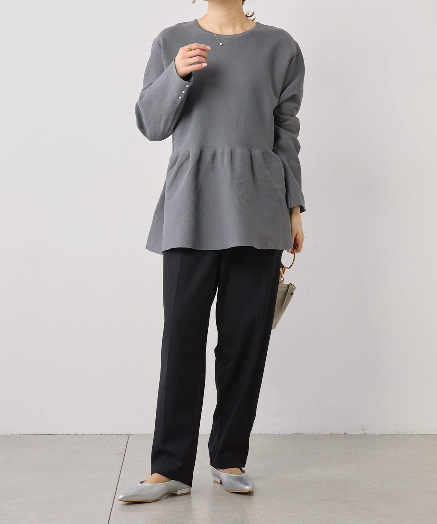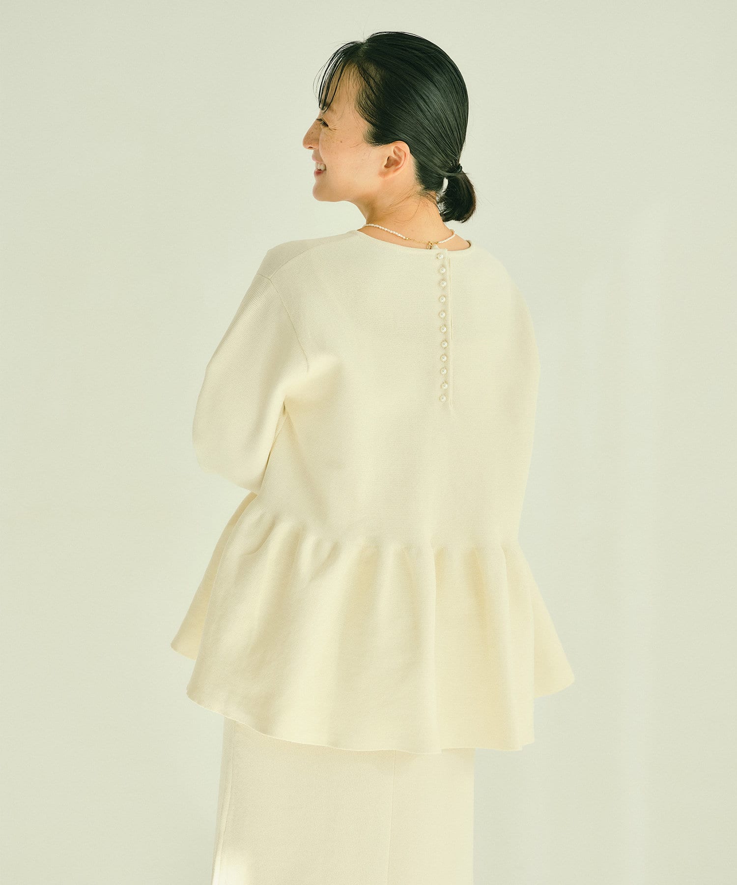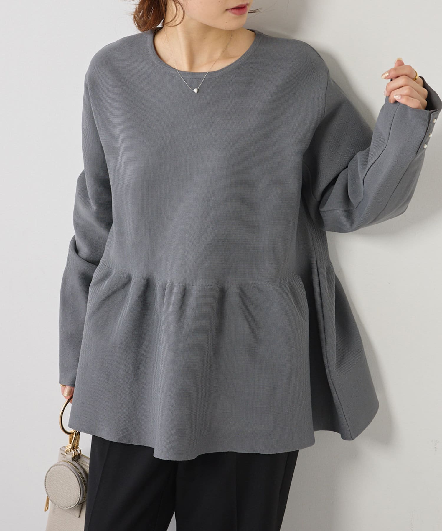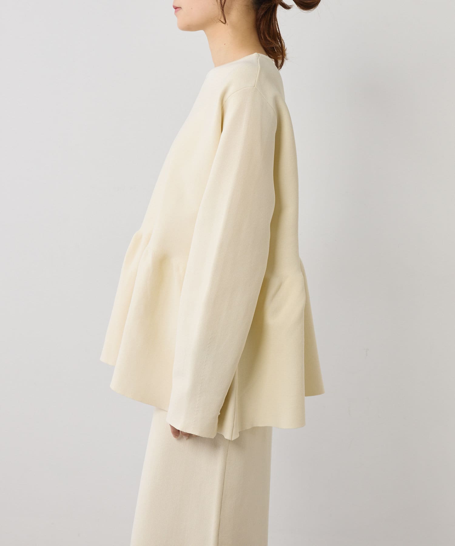 シンプルでなのにシルエットで映えるペプラムニットプルオーバー。