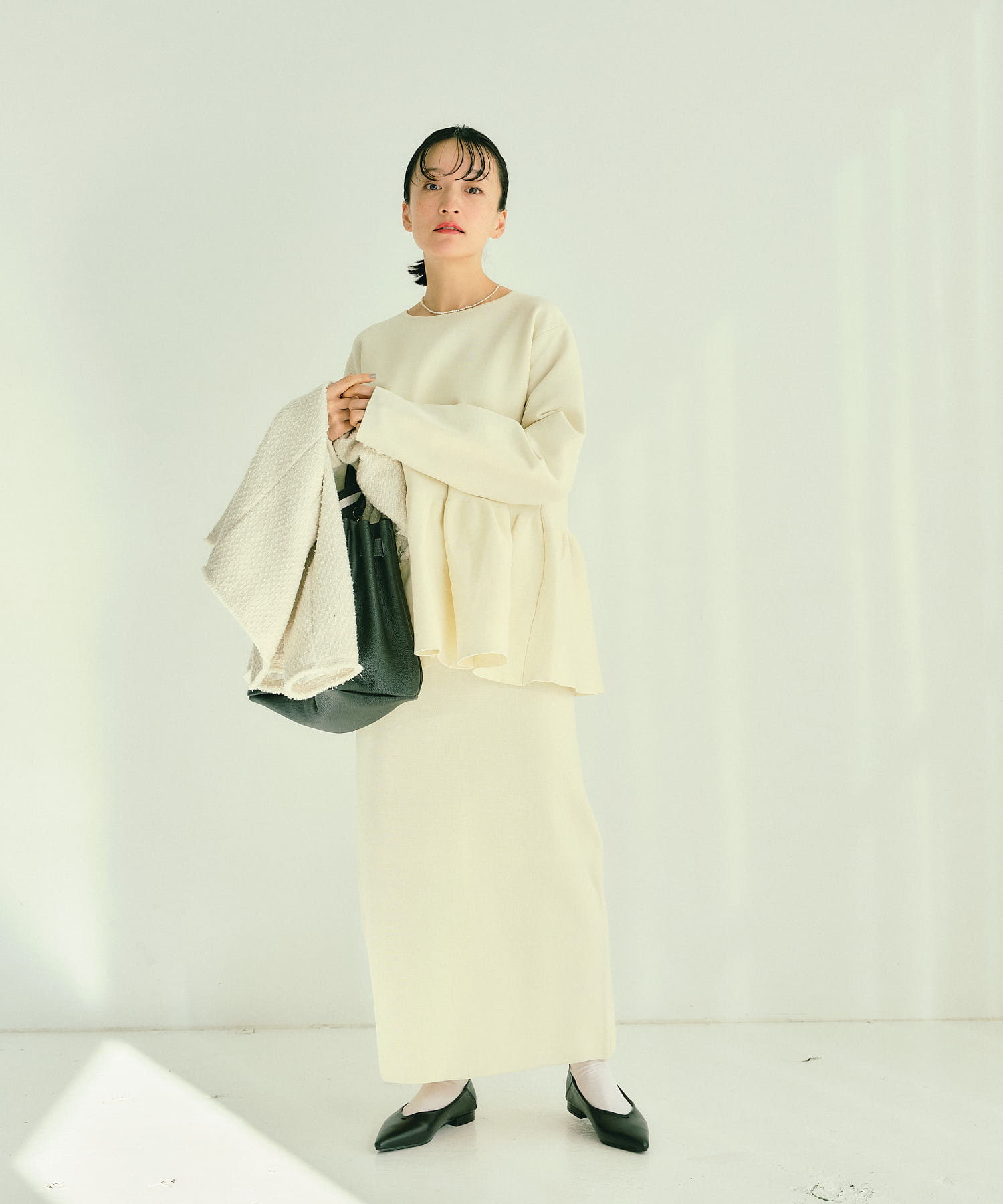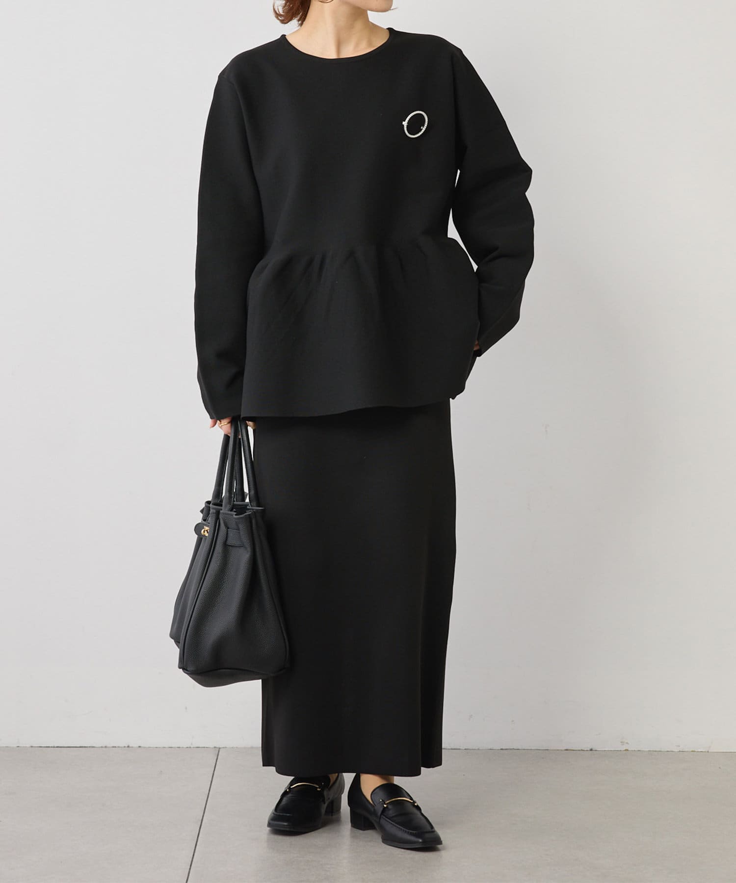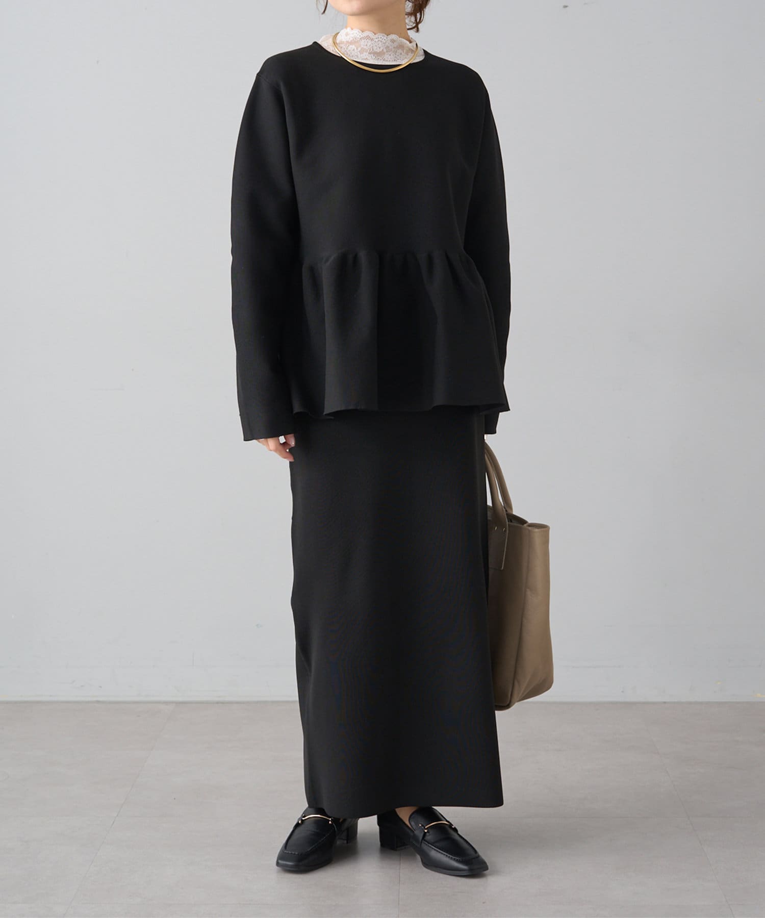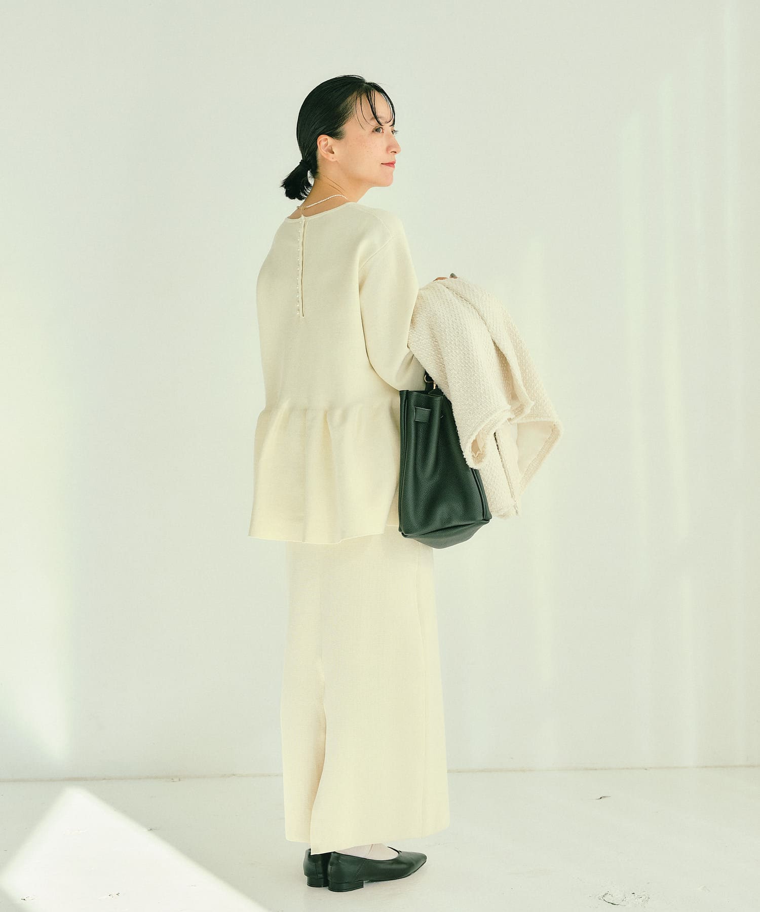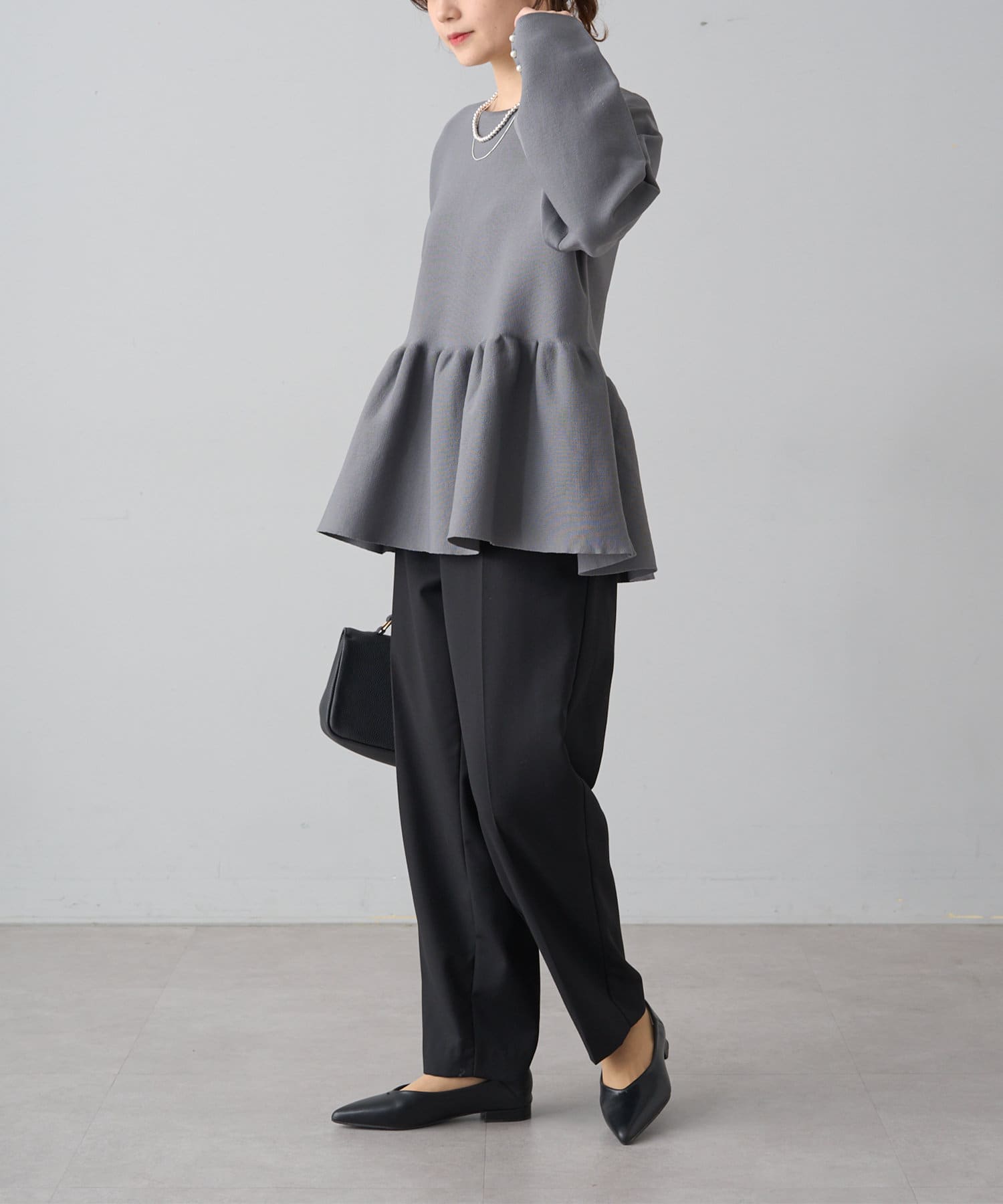 シンプルでなのにシルエットで映えるペプラムニットプルオーバー。