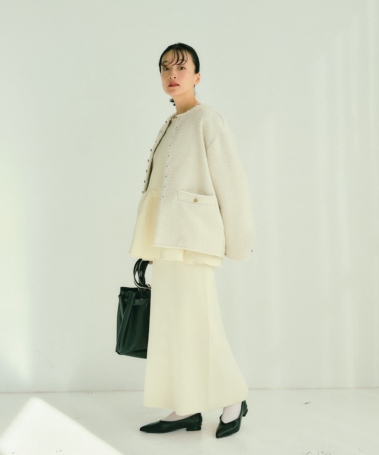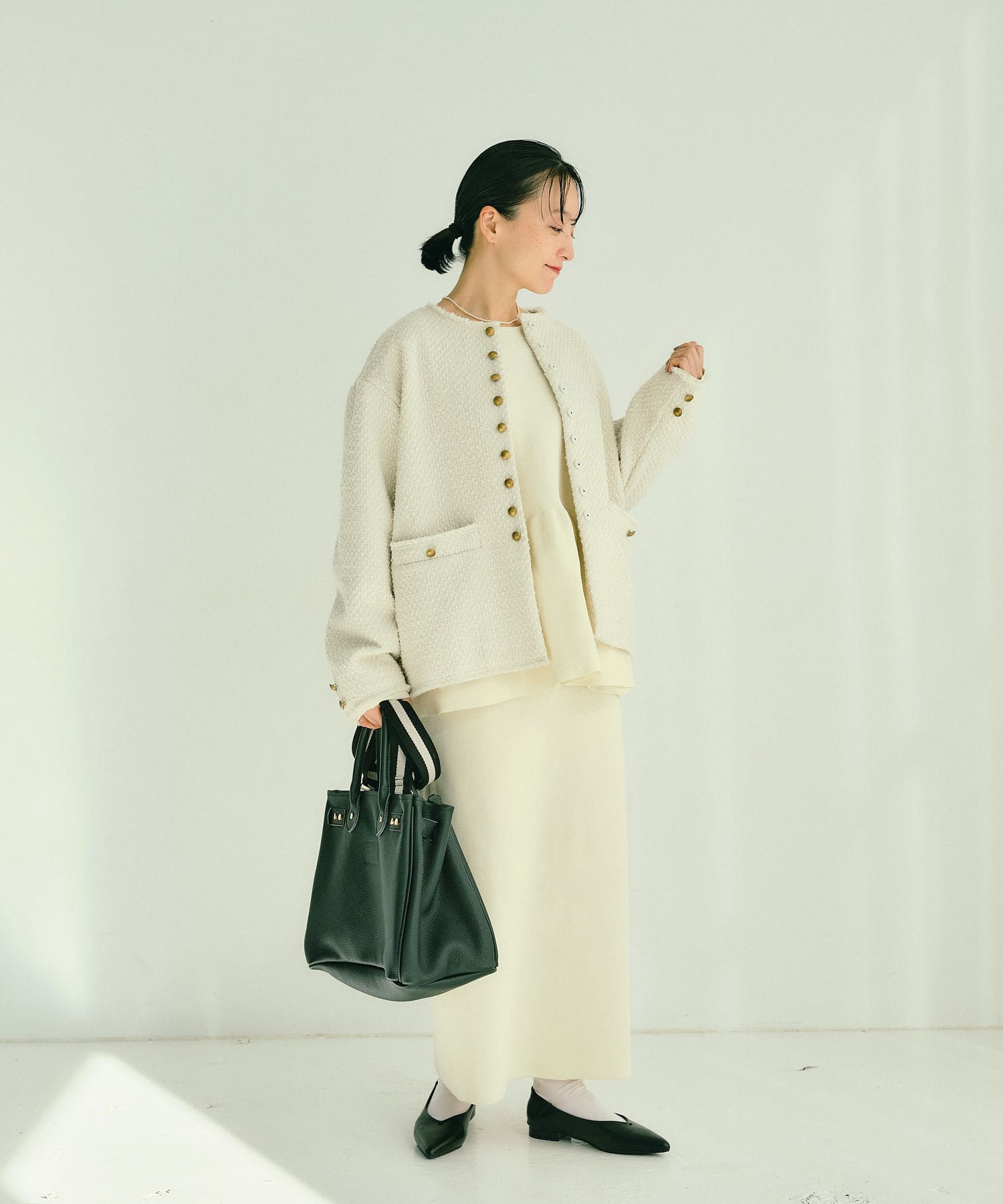 バックのパールボタンが、さり気なくアクセントを添えます。