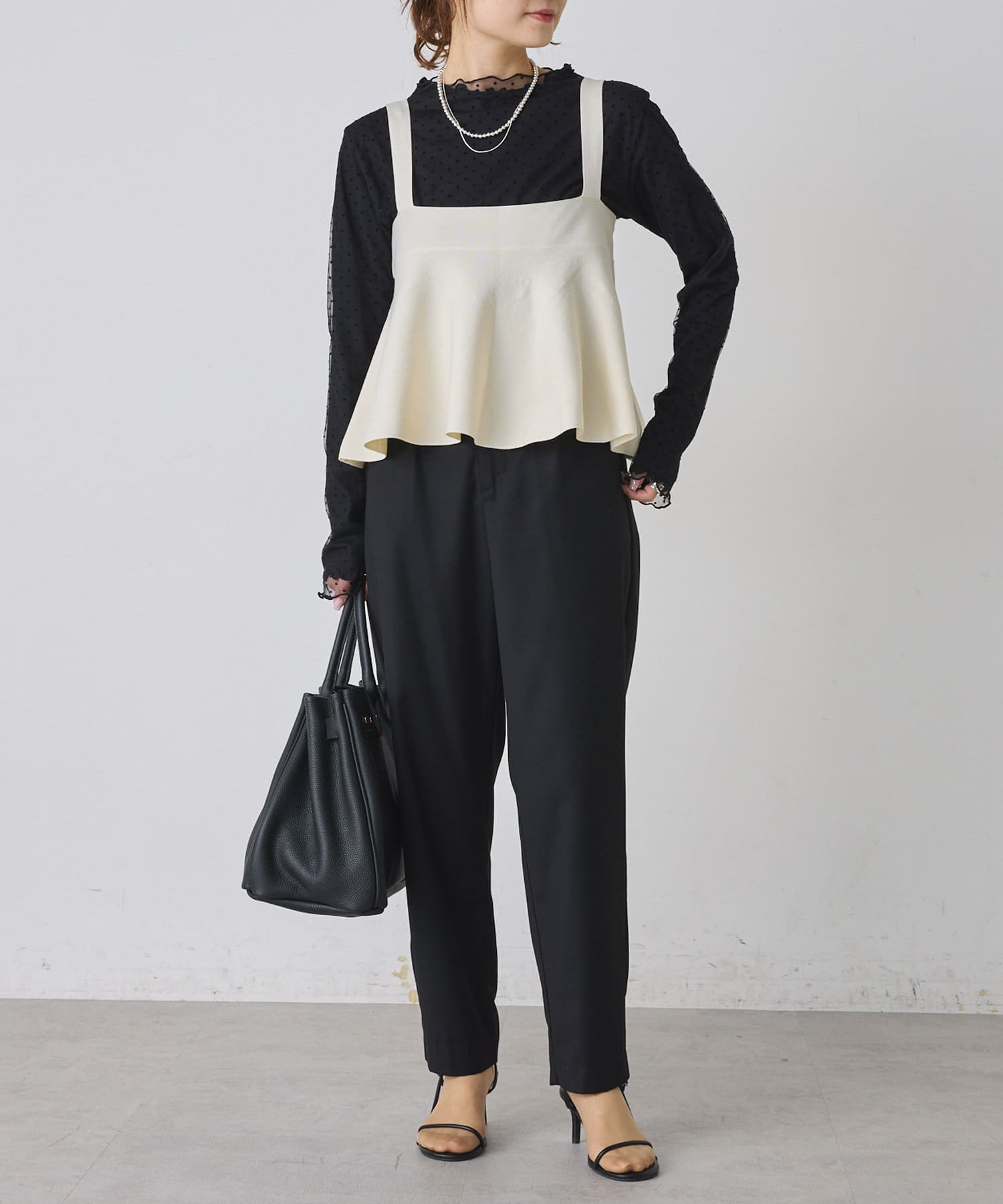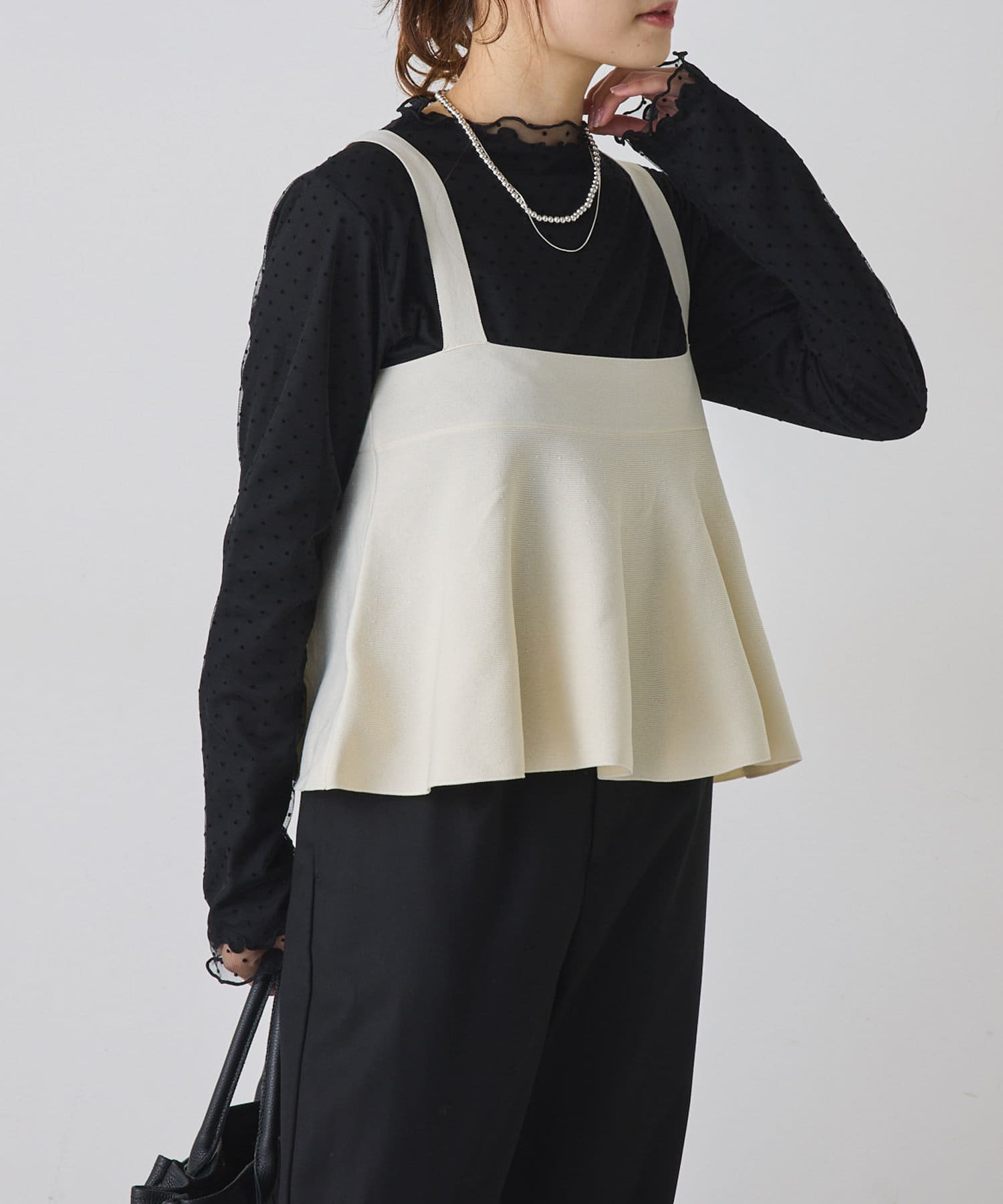 Tシャツやブラウスはもちろん、タートルトップスなどを組み合わせることでシーズン問わず長くご着用いただけます。