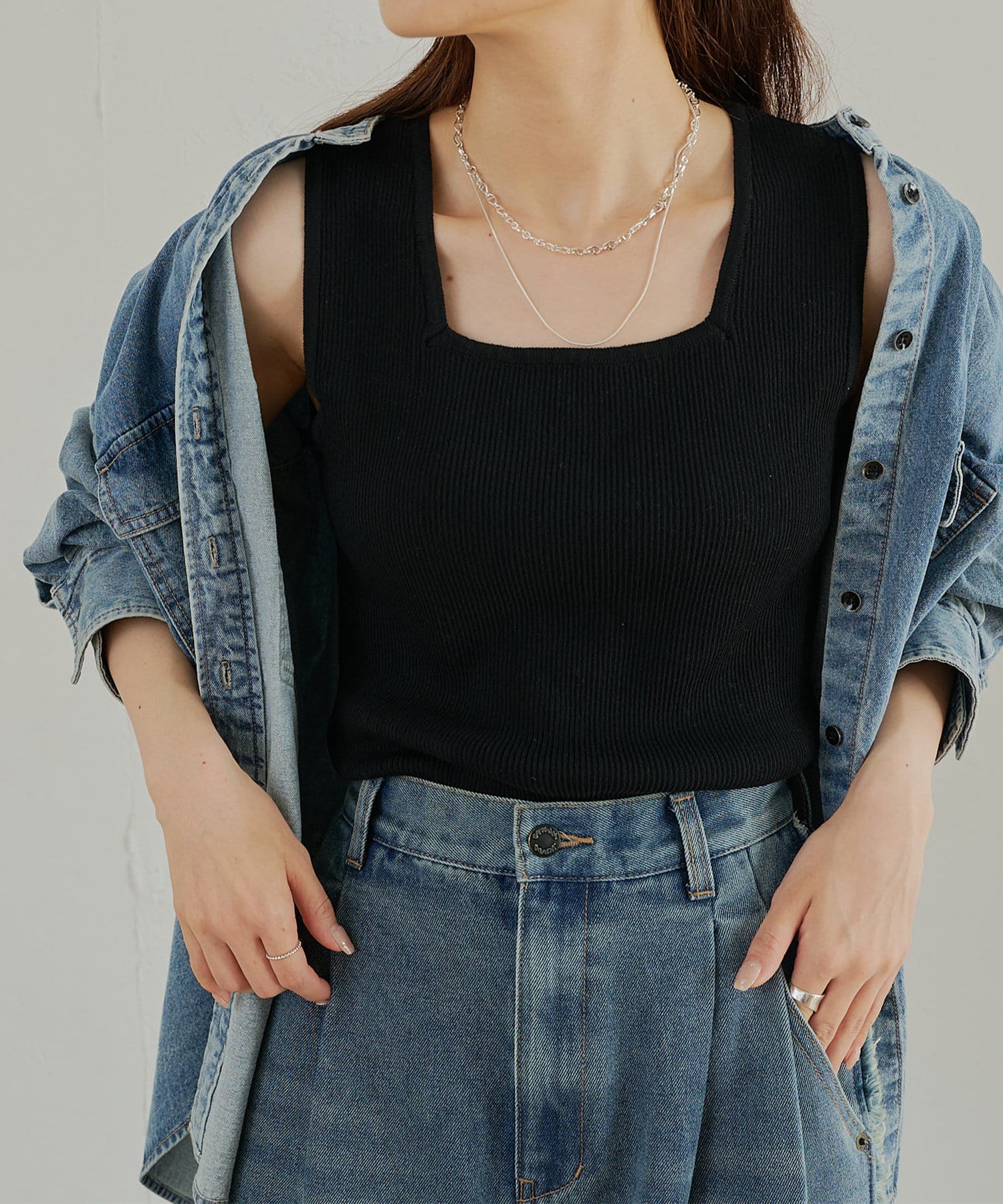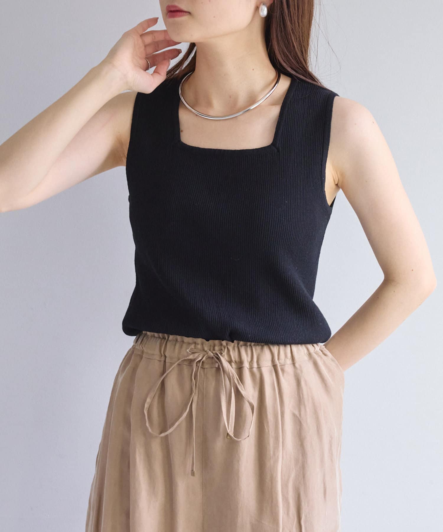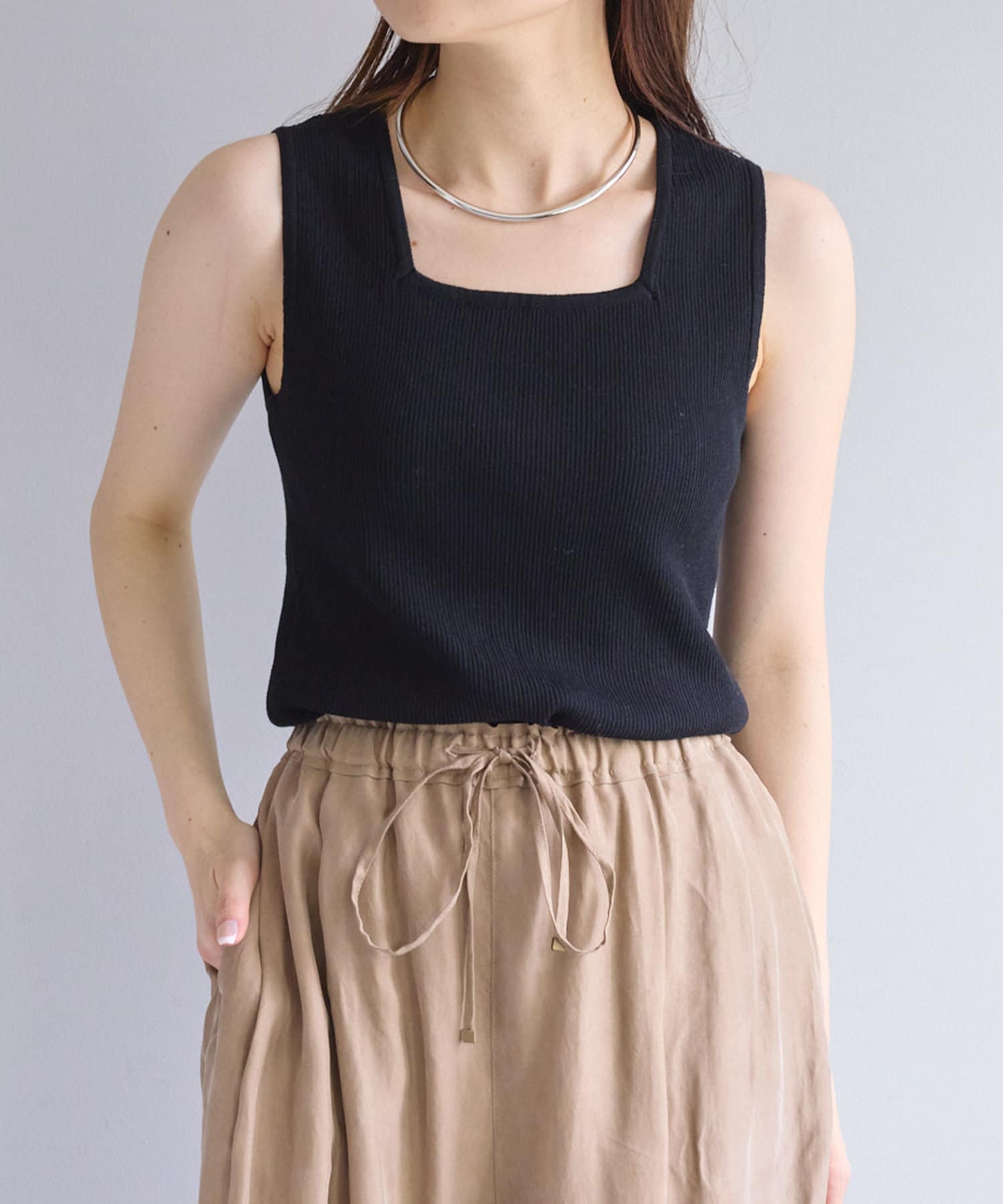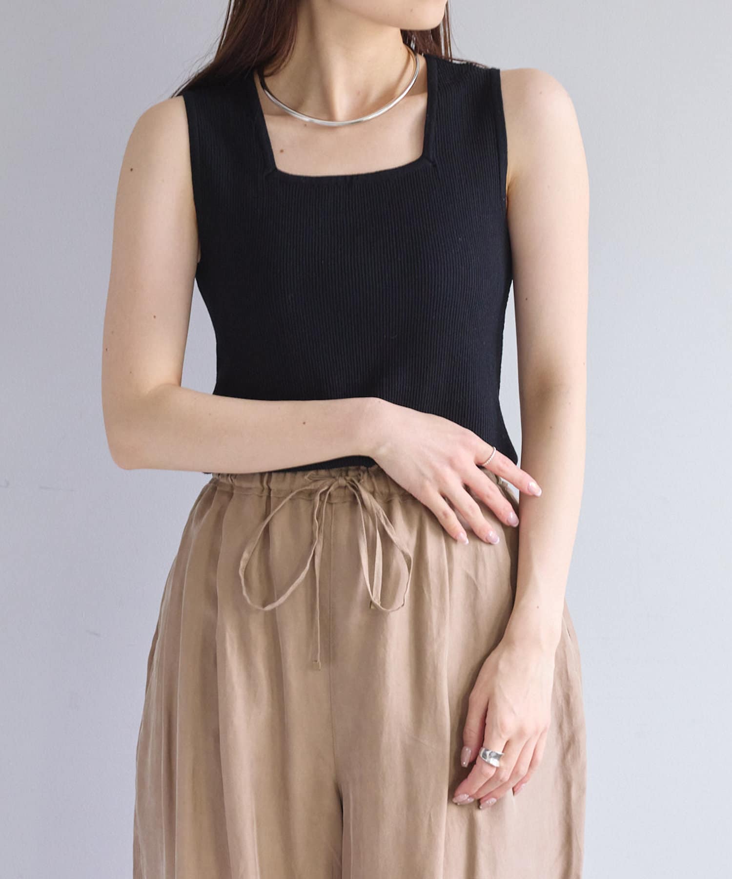 【Du noir】リネンタッチスクエアネックタンクトップ