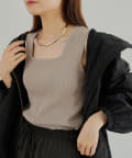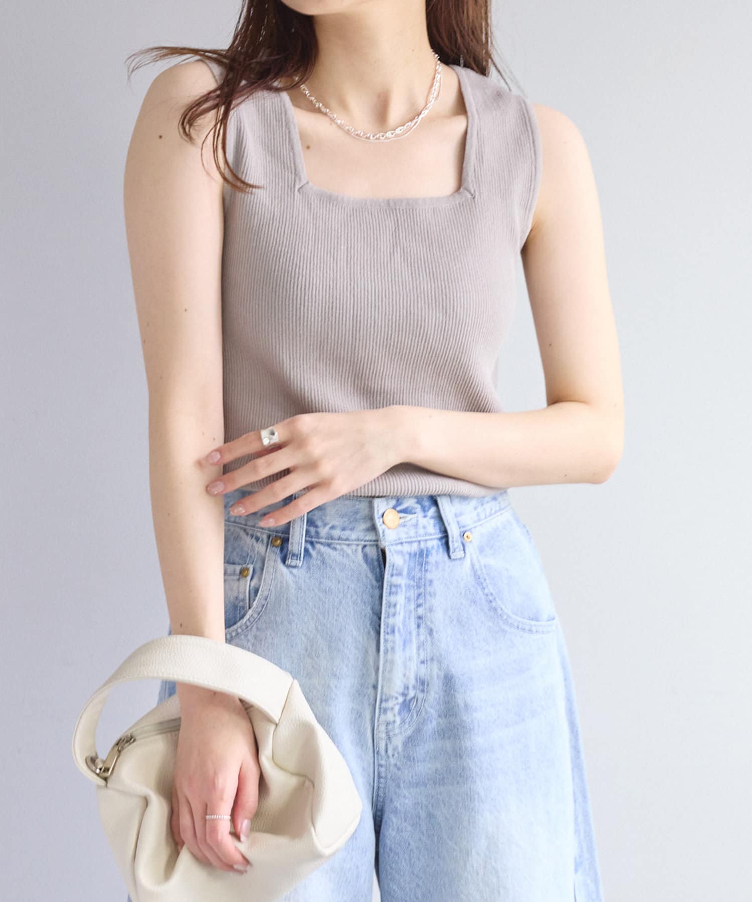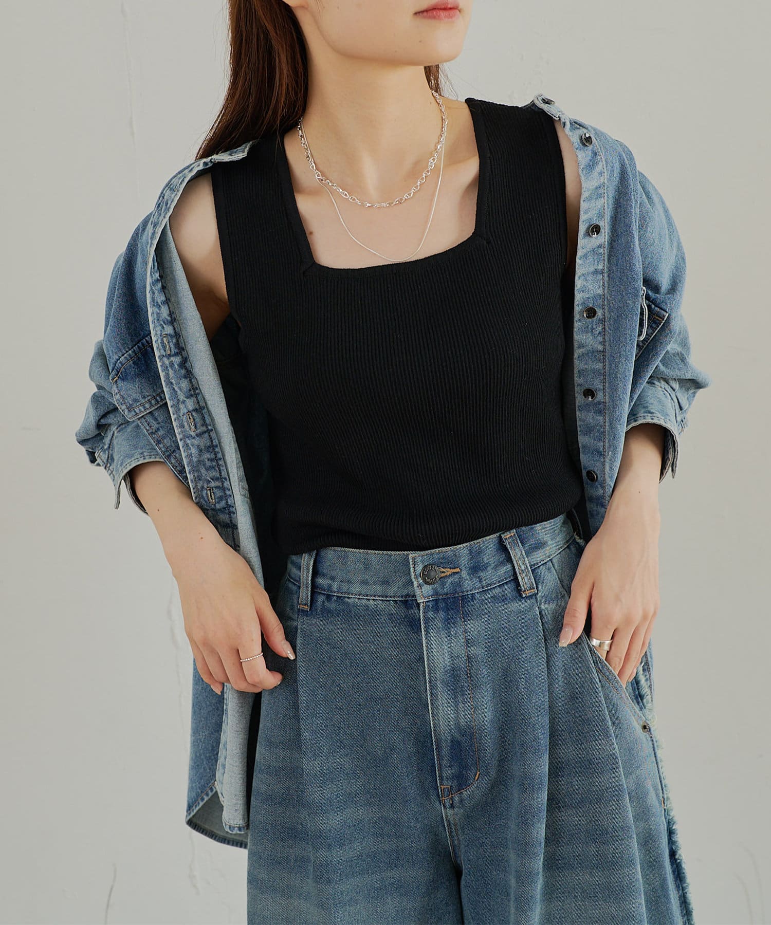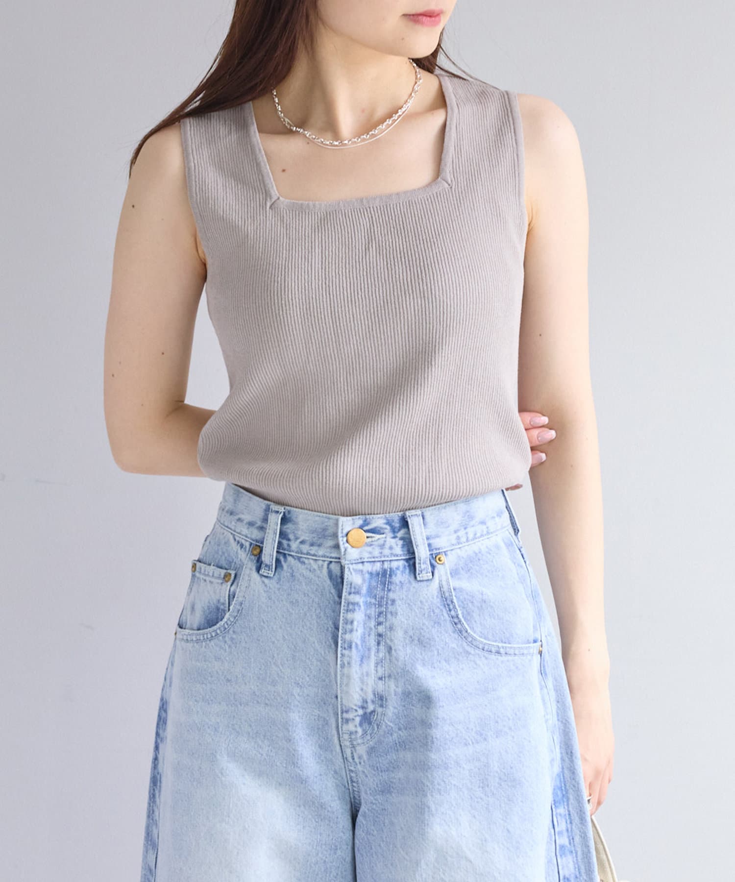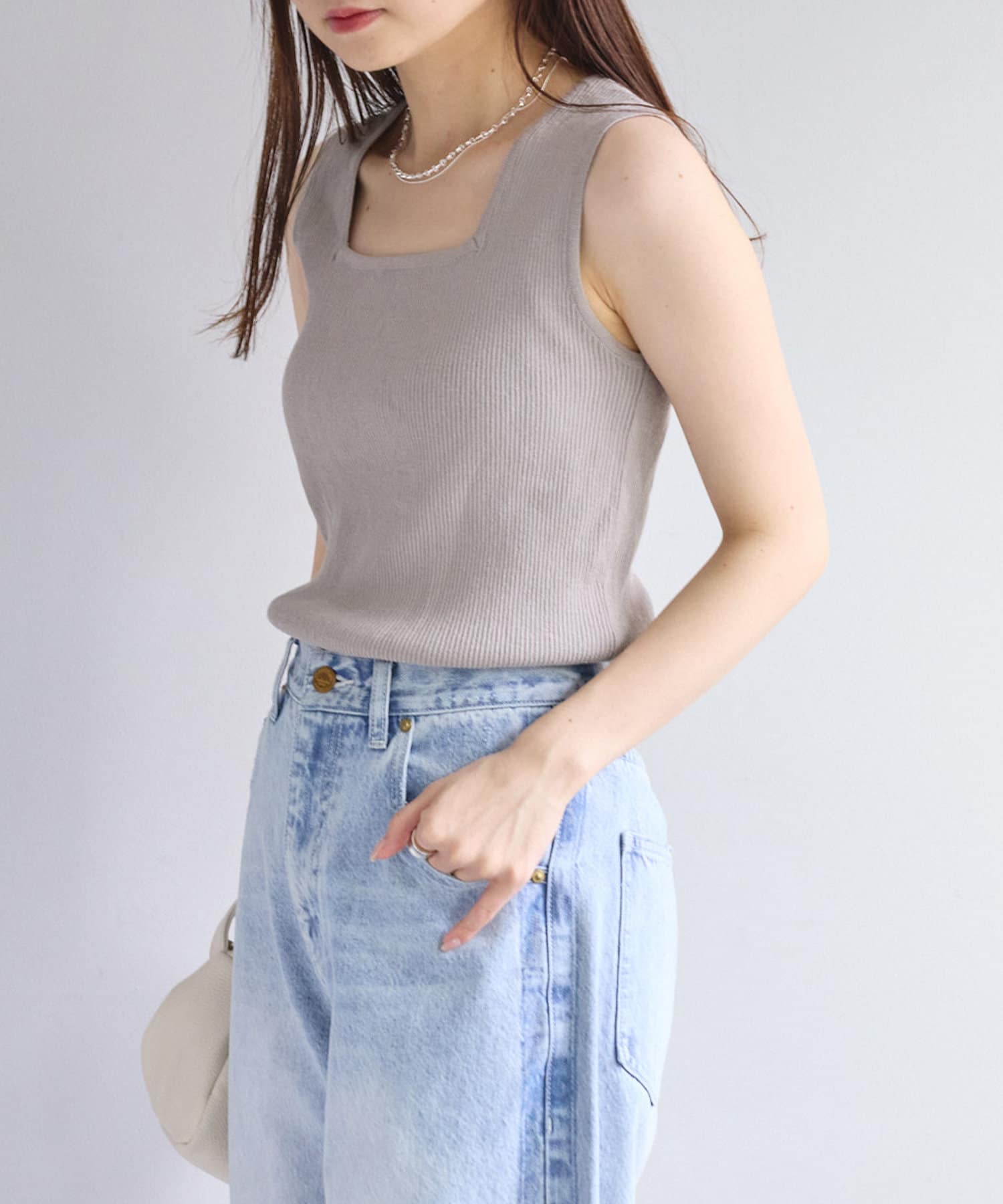 【Du noir】リネンタッチスクエアネックタンクトップ