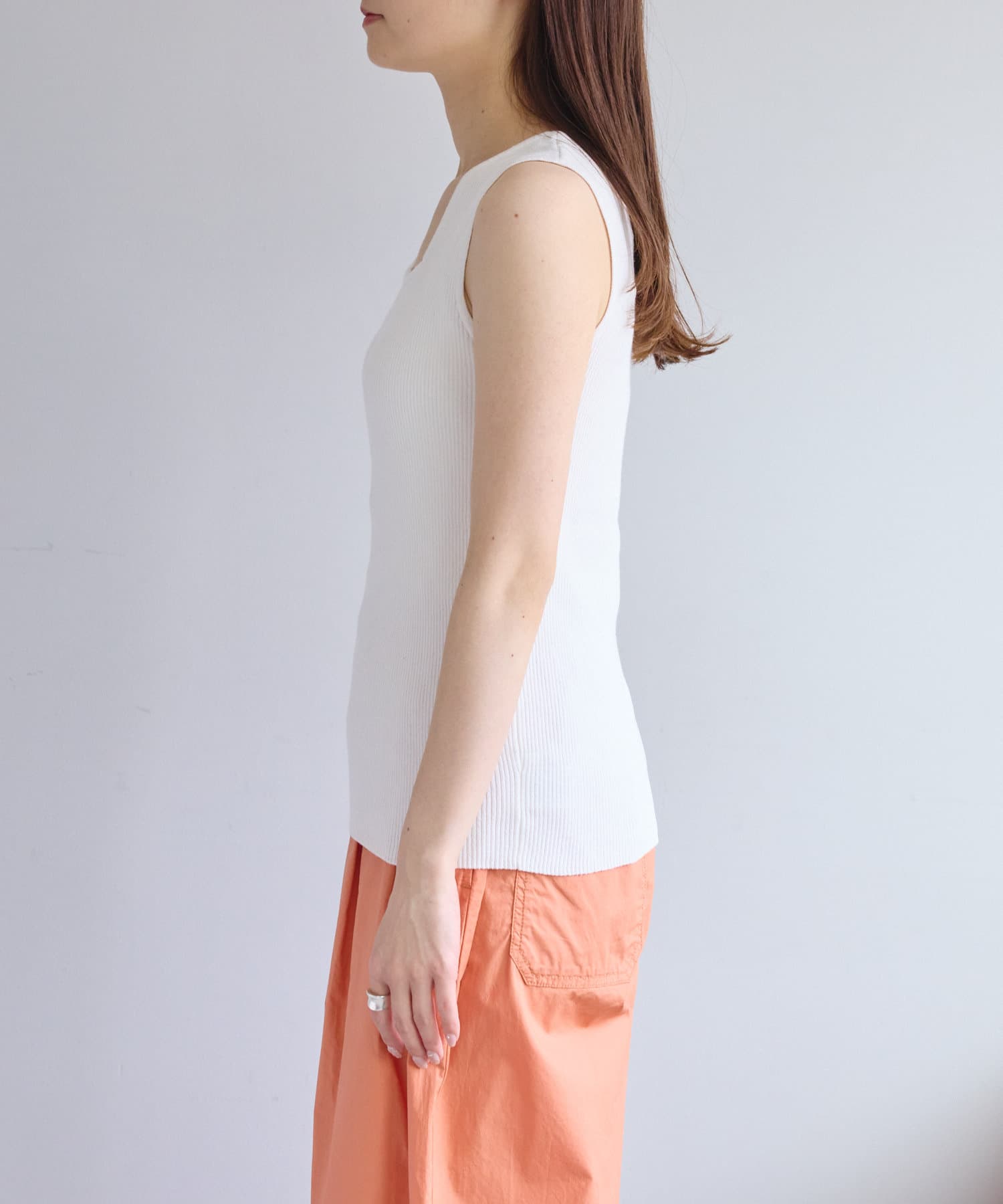 Du noir定番のストレッチが効いたリブ素材で着やすさが魅力のタンクトップ。