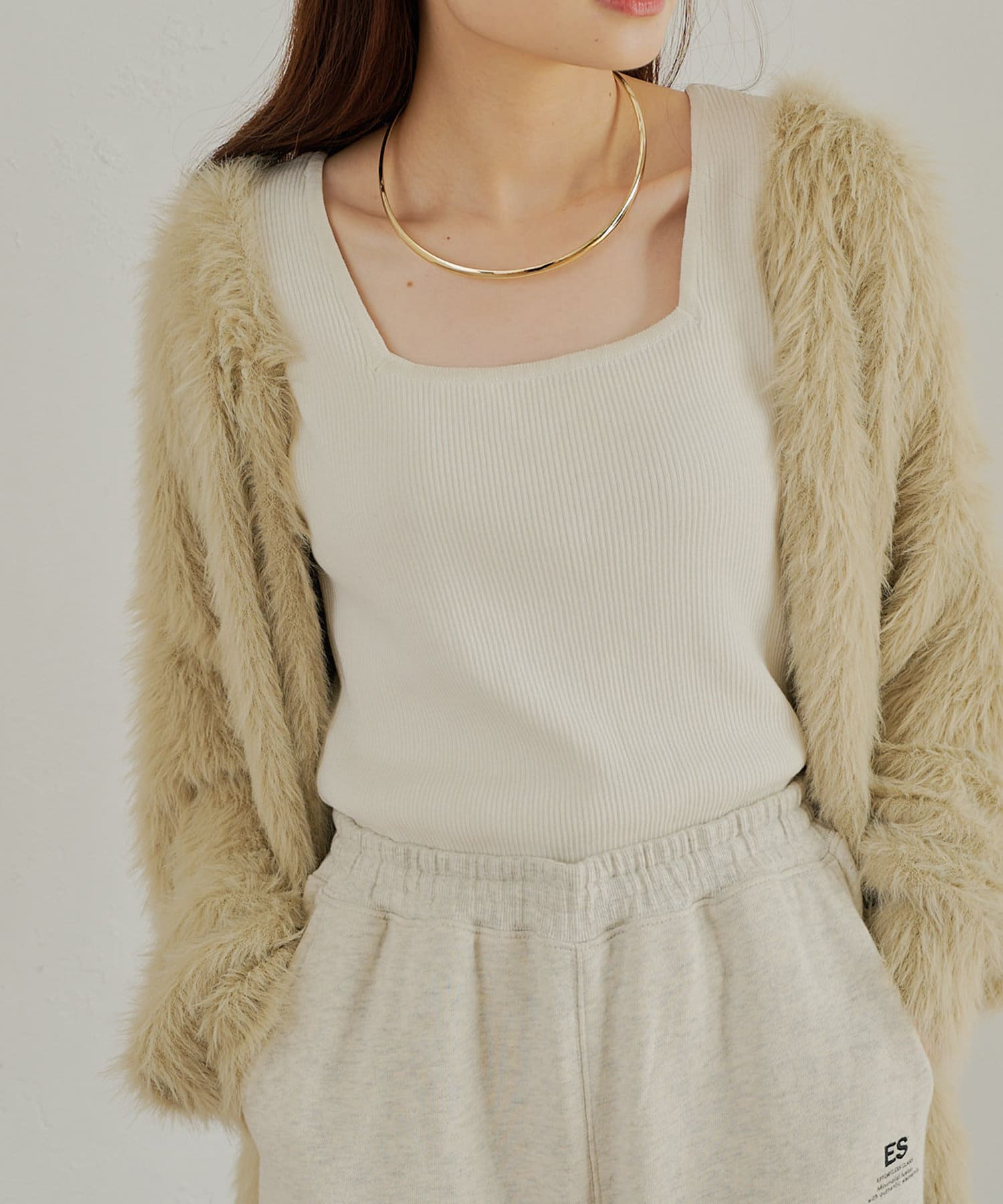 スクエアネックが上品さを惹き立て、デコルテラインを美しくみせてくれます。