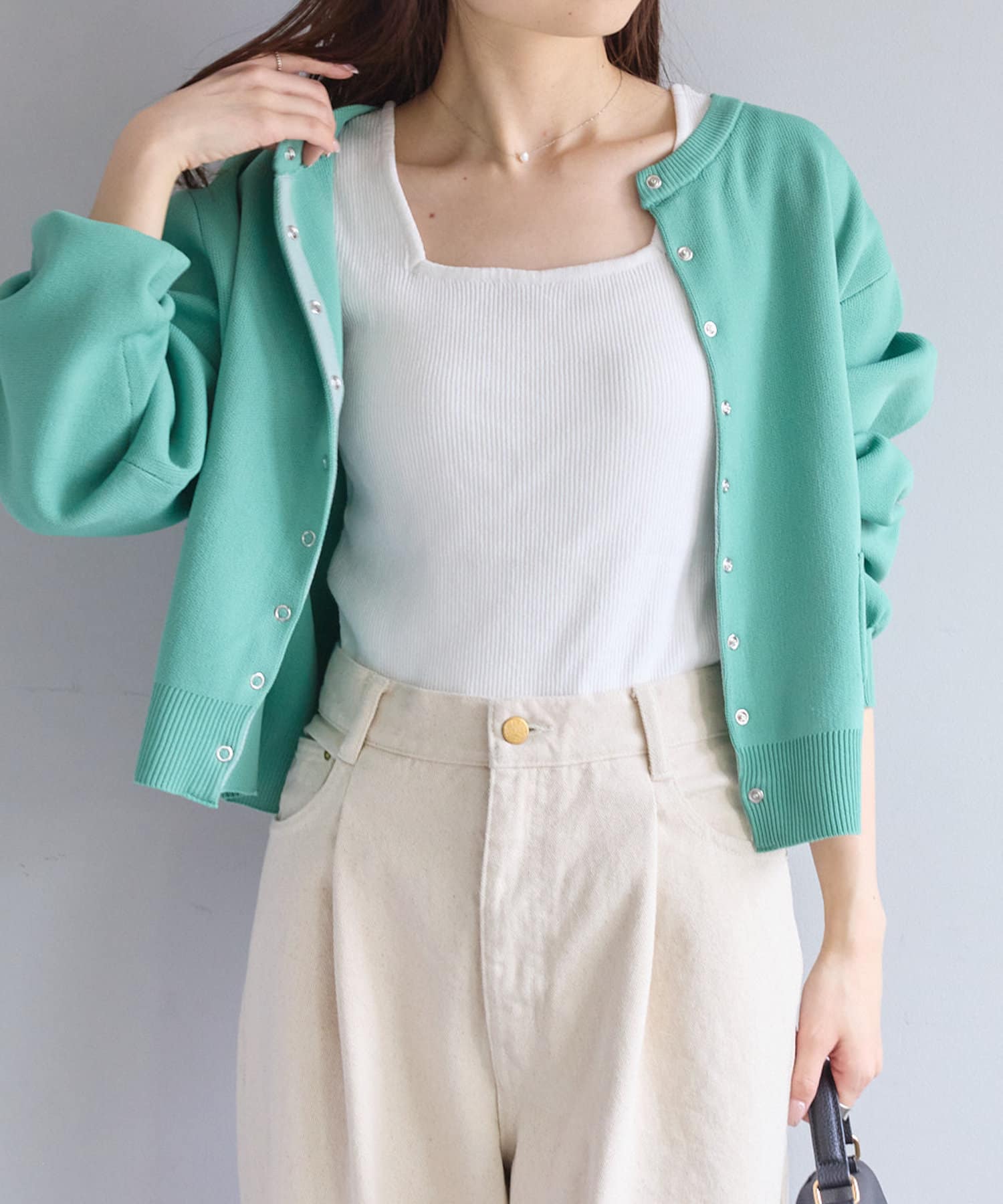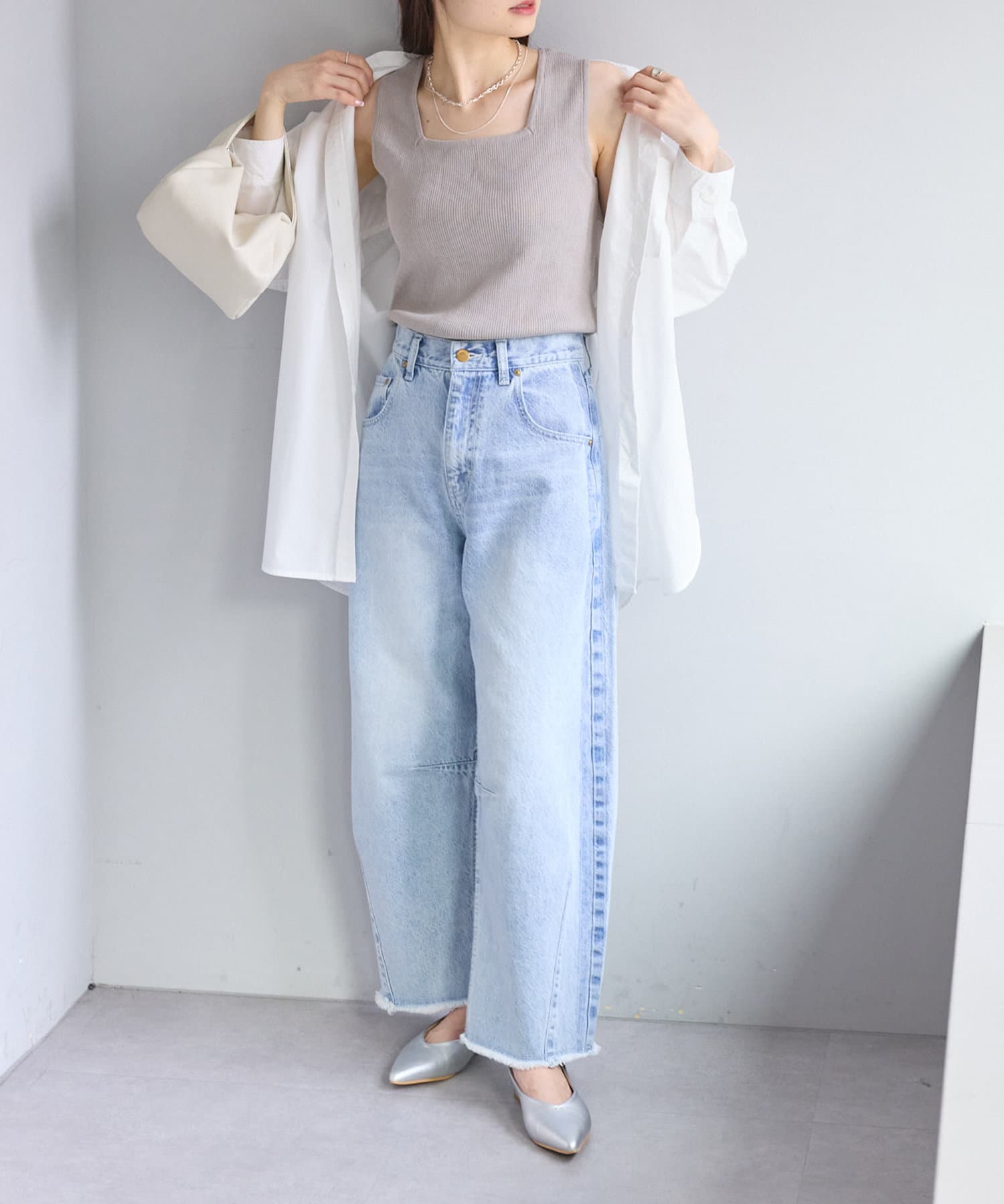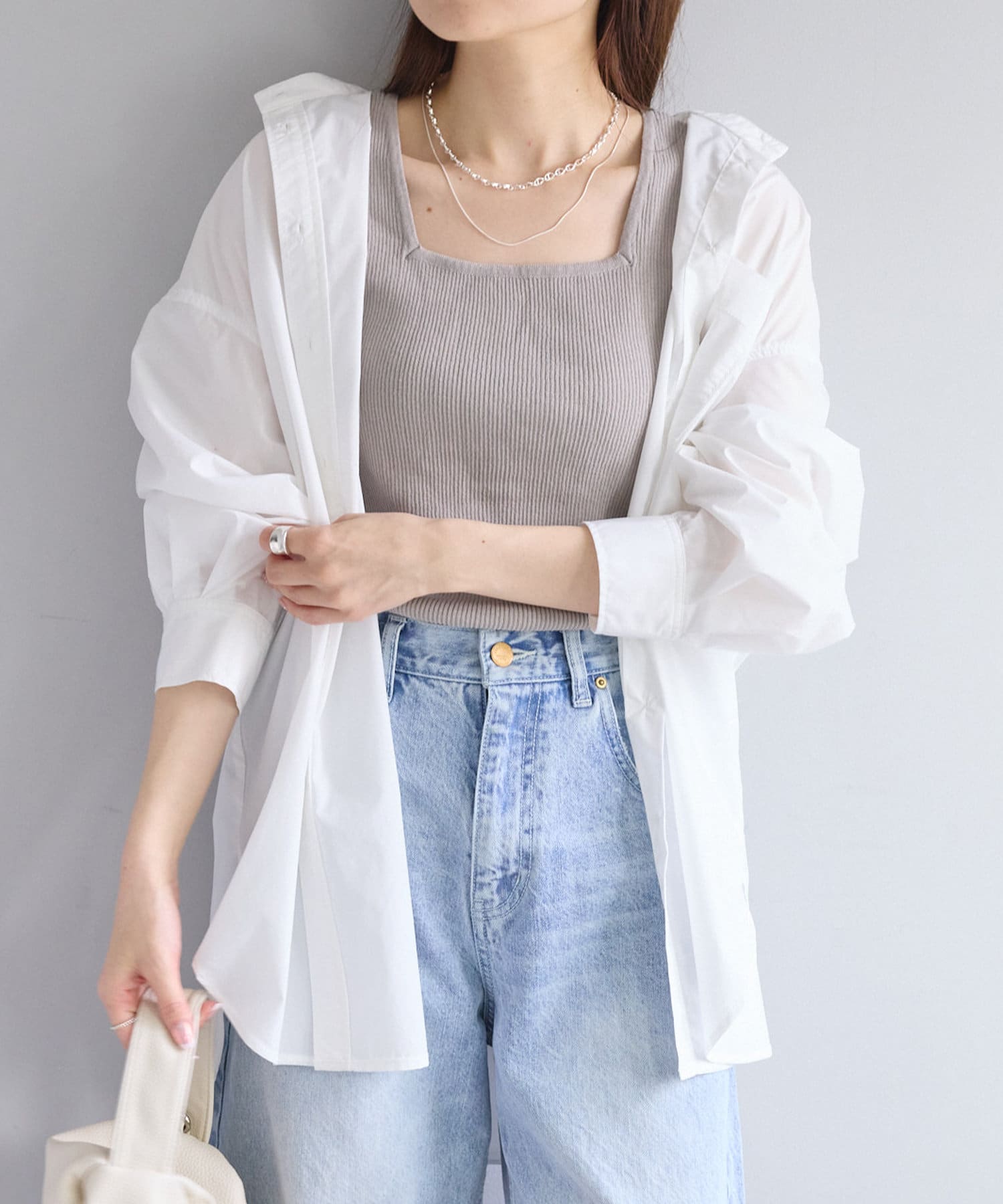 カーディガンやシアーシャツのレイヤードスタイルはもちろん、サロペットやキャミワンピースに合わせてヘルシーなスタイリングもオススメ◎