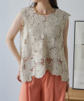 【人気素材】フラワーモチーフレース編みベスト