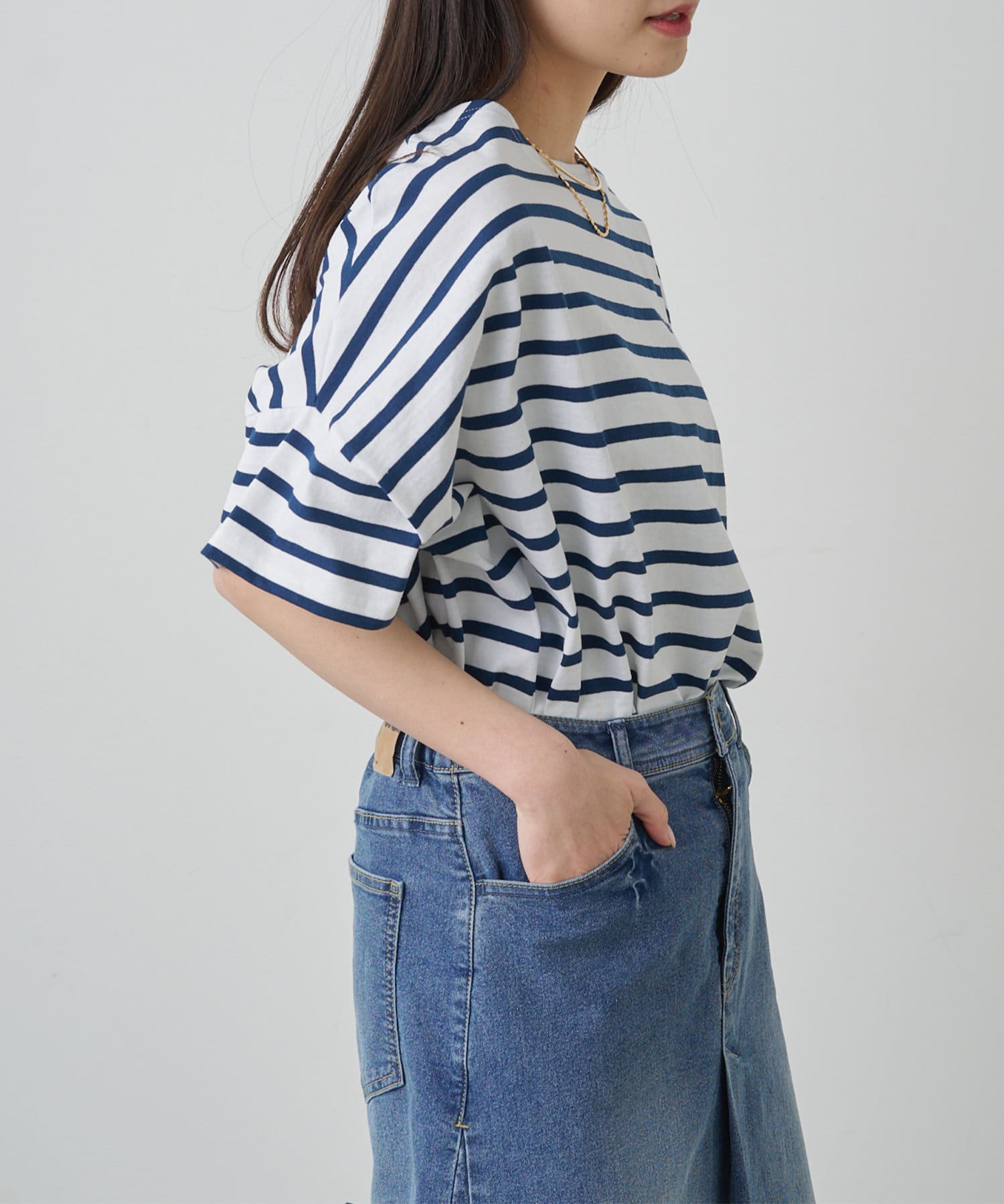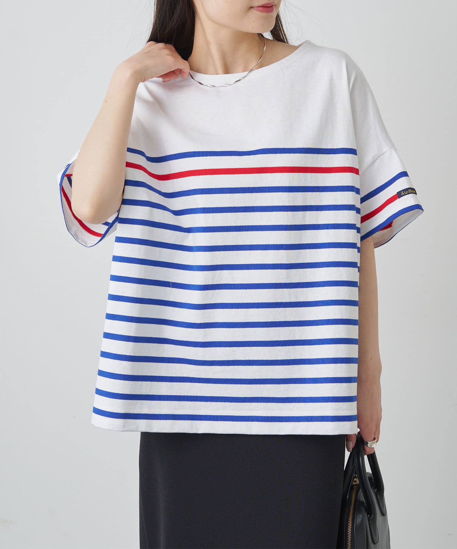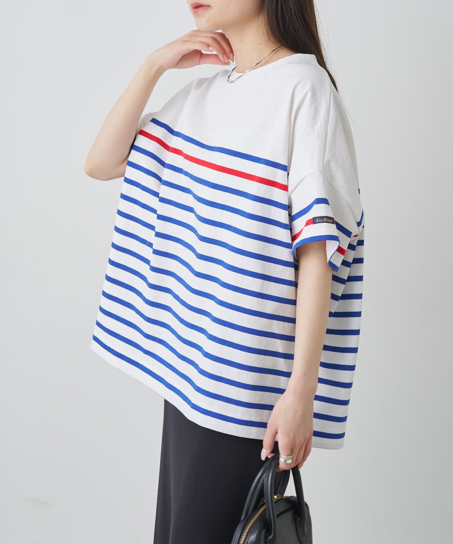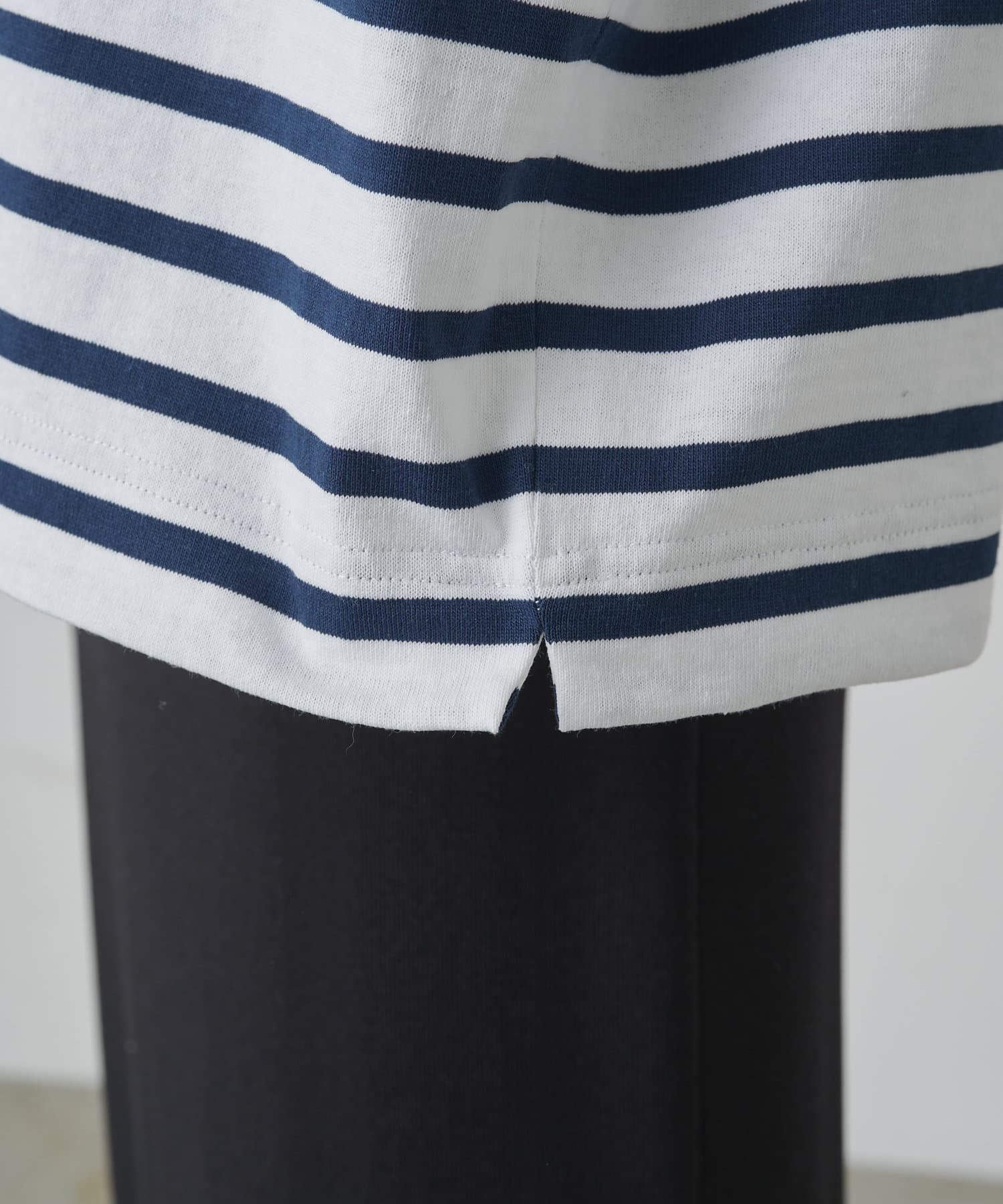 フランスブルーターニュの自社工場で生地から生産しているLe minorのボーダーカットソー。
