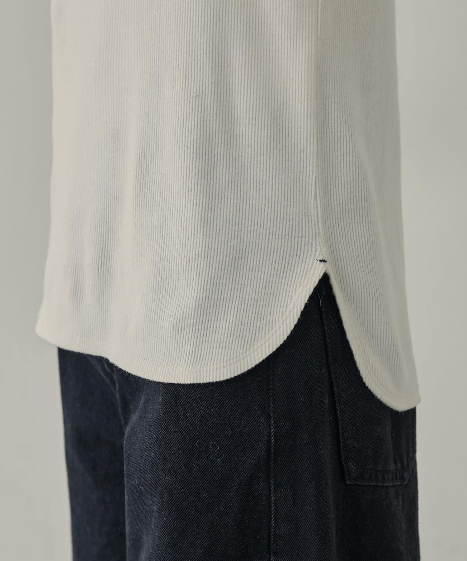 長めの着丈でメインとしてはもちろん、ラウンドしたヘムラインデザインは重ね着にも便利で、季節に合わせた着こなしが可能。
