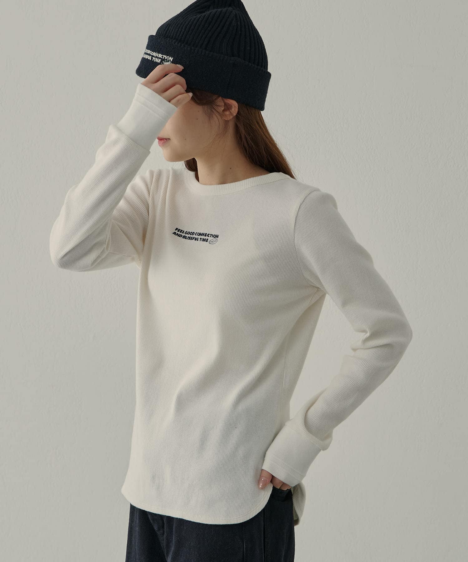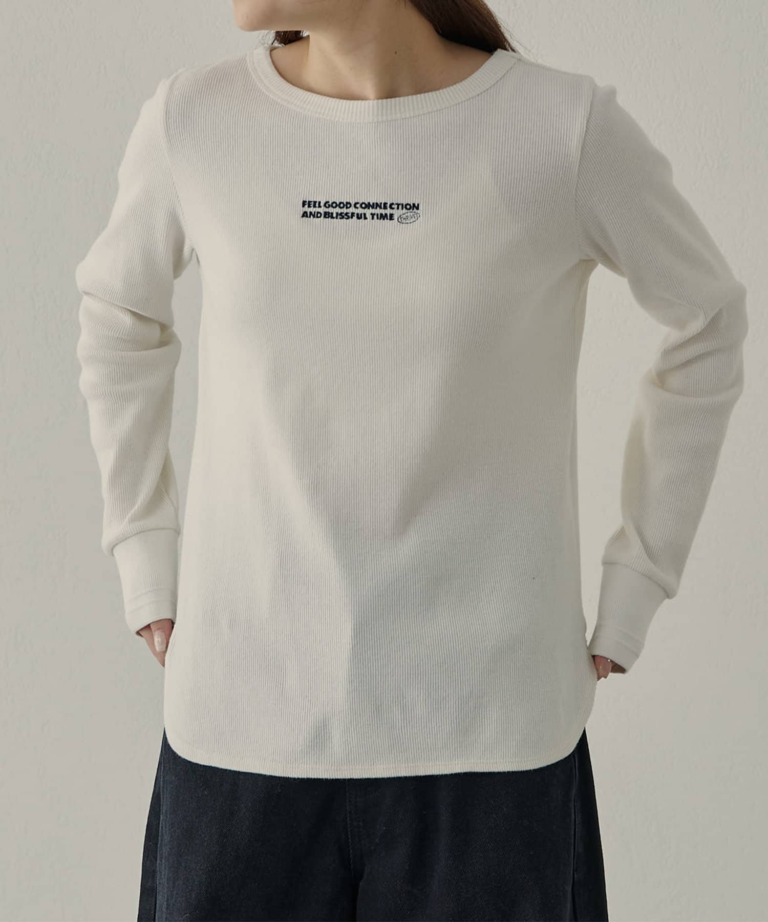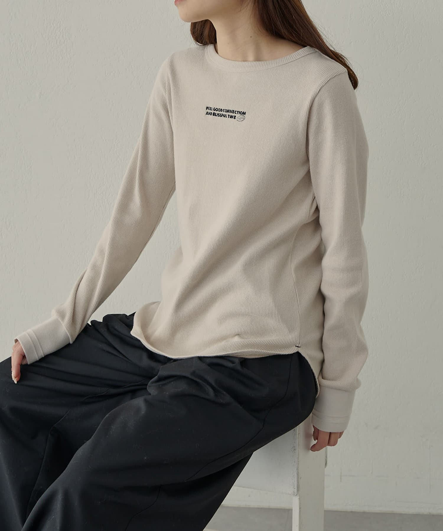 ◇ロゴ刺繍がアクセントになった万能テレコトップス◇
