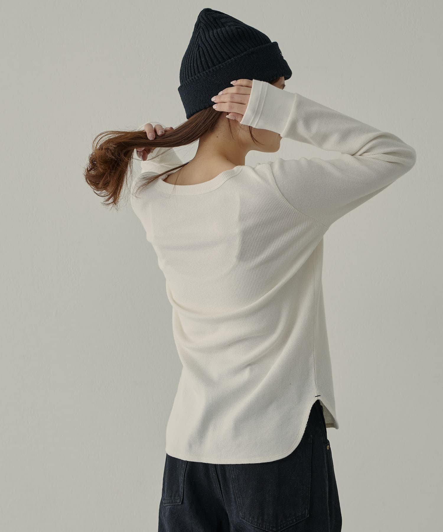 ラウンドヘムデザインを施し、ボトムにインしなくてもオシャレに着こなせます。