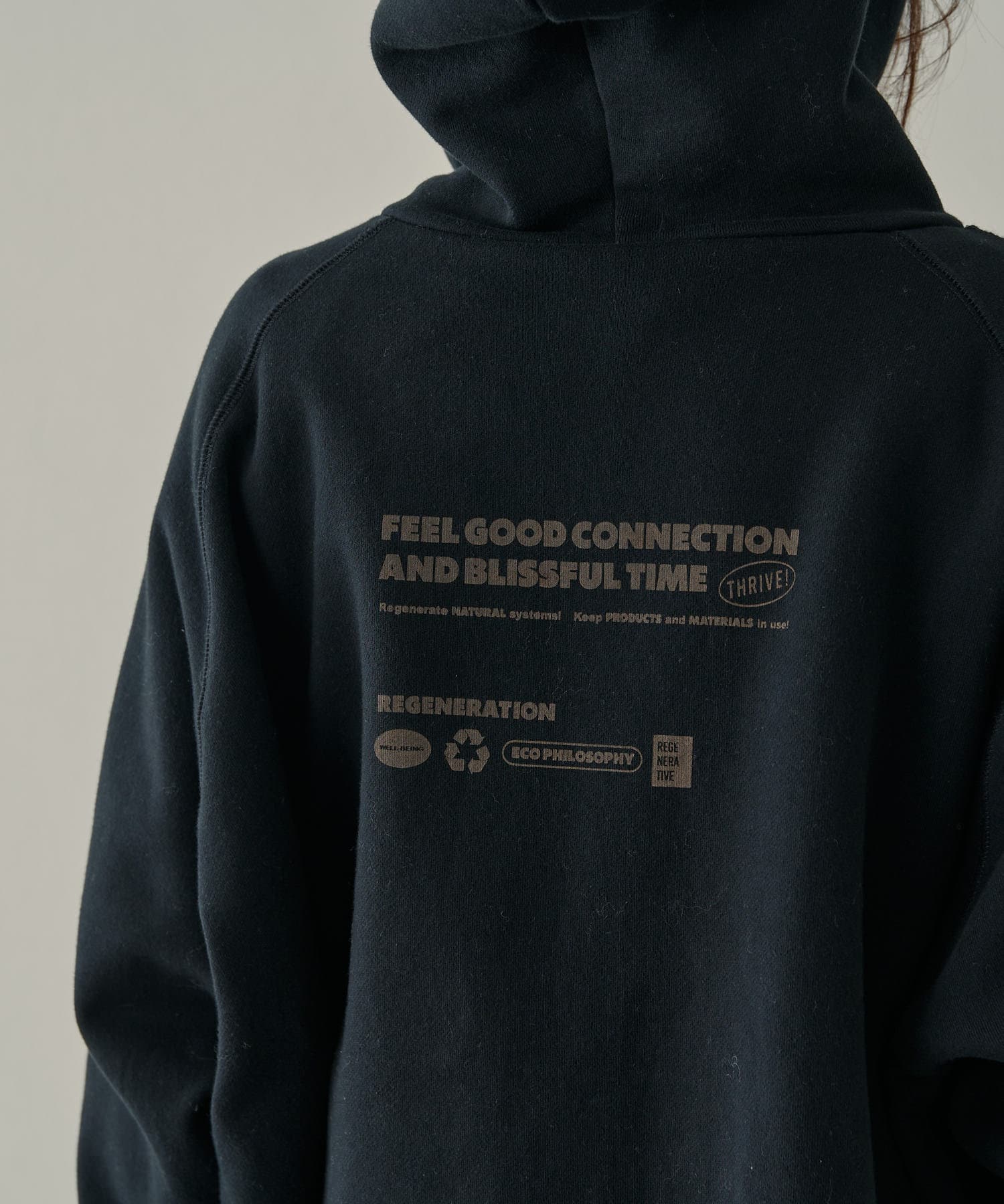 フロントにはワンポイントの刺繍、後ろにはロゴプリントを配し存在感のある1着。