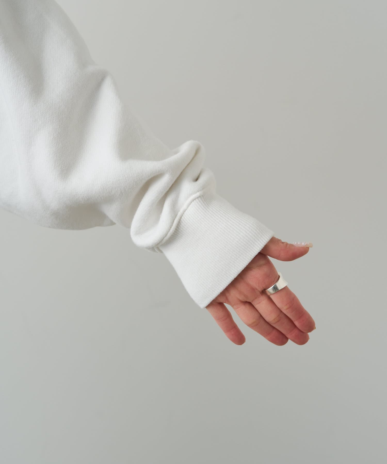ゆったりめのシルエットに裾や袖元のリブで程よいボリューム感をプラス。