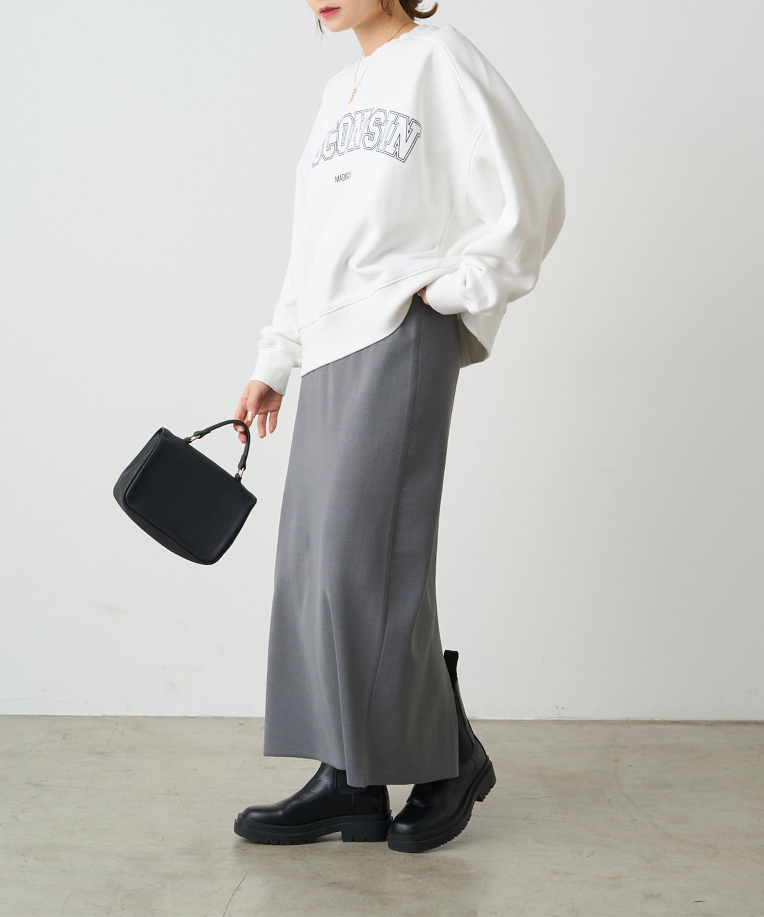 スウェットのラフ感と相まってバランスのとれたこなれた装いに◎