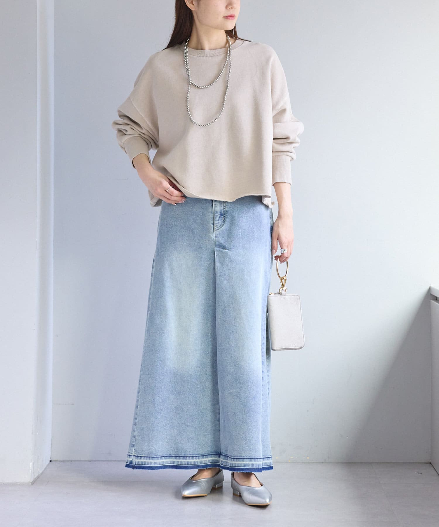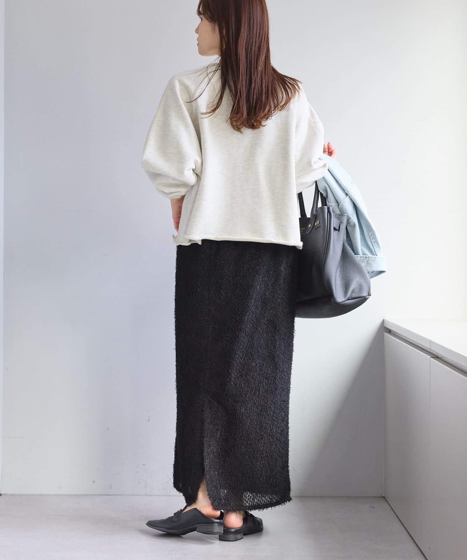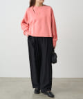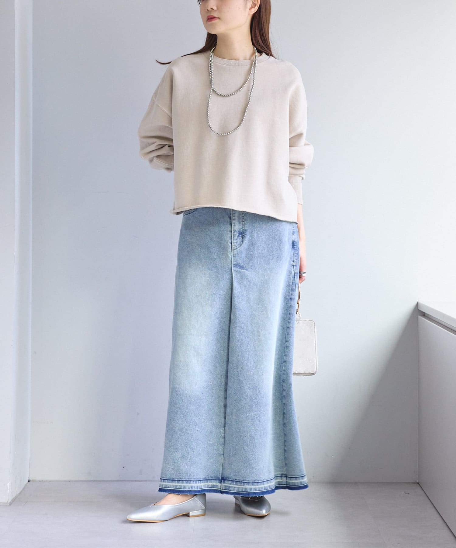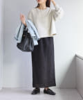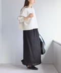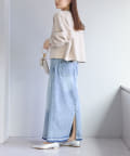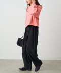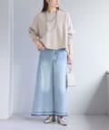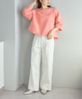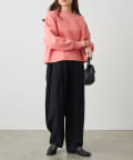 ショート丈なのでハイウエストのボトムと相性抜群。スラックスやスカートなどカジュアル過ぎないボトムを合わせると一層こなれ感のあるスタイルに。